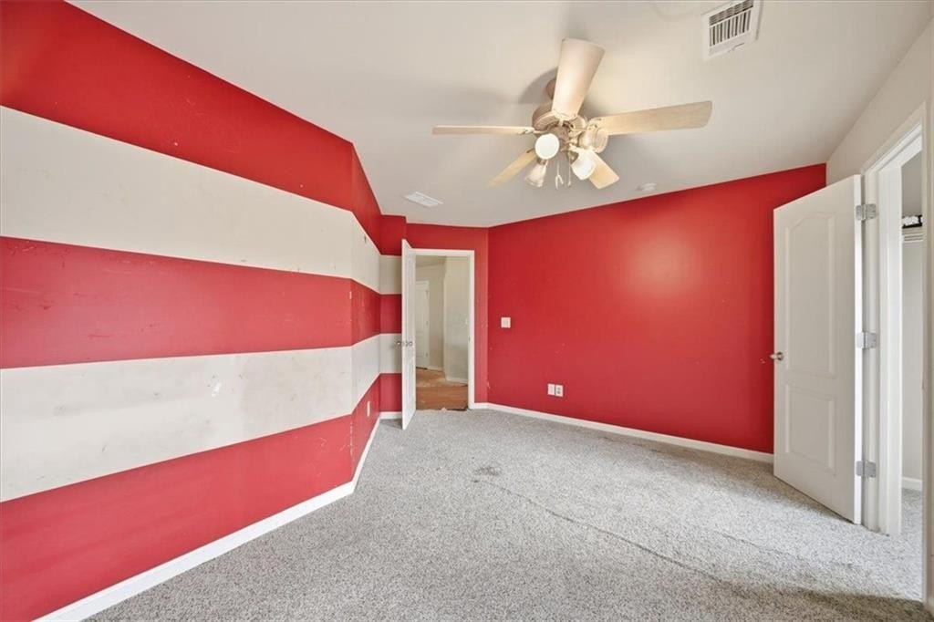 Upstairs, the oversized primary suite includes a walk-in closet and a private en-suite bath. Additional secondary bedrooms are well-sized with great closet space and a shared full bath.