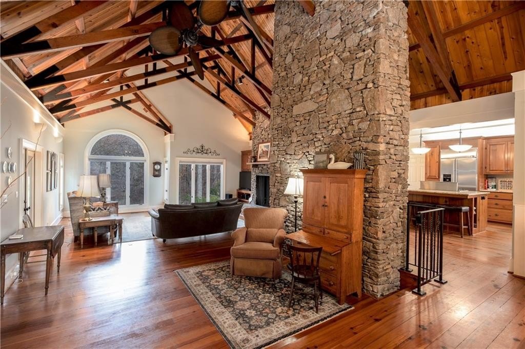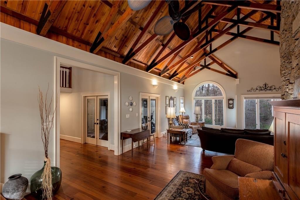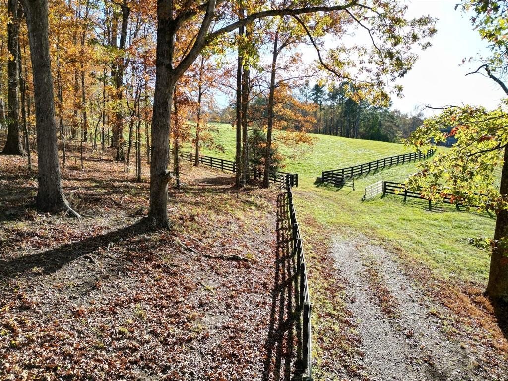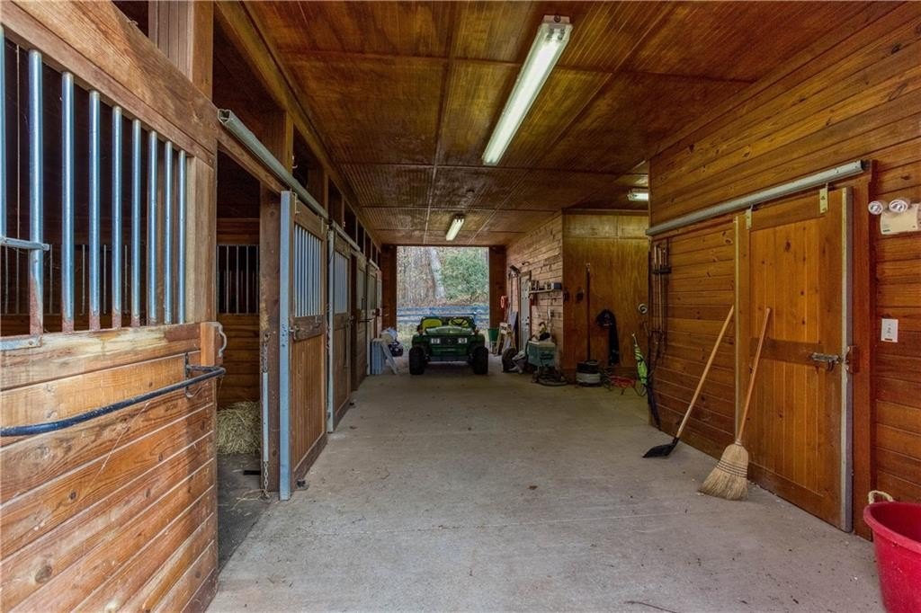 Amazing opportunity to own a 27+ acre equestrian/gentleman farm in the heart of SE Cherokee County mere minutes from Milton. This estate presents lush fenced pasture, rolling mature hardwoods and a spring fed pond. The equestrian amenities provide; a fenced riding arena and a cypress barn with three stalls and a 12’x14’ shavings room that can be converted to an additional stall. The house is wrapped in cypress and fieldstone and provides a whole house generator as well as a geothermal HVAC system to keep utility costs down. The property has two drilled wells; one for the house and another at the barn. Step inside of the home to an open concept living/dining/kitchen/breakfast rooms. Bright natural light pours through the expanse of windows and the privacy offered gives no reason to cover them. Heart pine floors below and soaring exposed beams in the 2 story ceilings. Floor to ceiling stacked fieldstone masonry fireplace, wood stove and stove insert in the master allow for natural wood heat if desired. The large mudroom has handsome brick paving for the floors. A partial finished space above the garage provides a great place for a craft room, play space, or extra storage. Step out on the Brazilian hardwood back deck to view a large portion of the property including the private pond that recently had the spillway updated and replaced, landscaping and abundant wildlife. This property is for those that want privacy and a rural feel, yet want to be very close to great shopping, dining, parks and school systems. The property also qualifies for and is currently in conservation with the county for considerable tax benefits.
