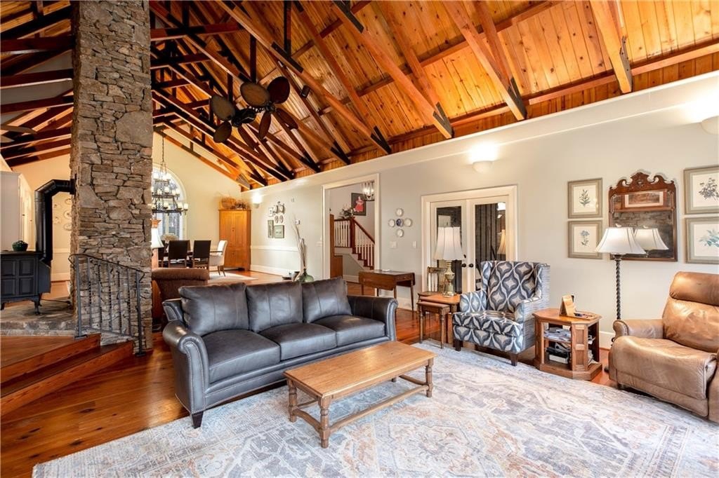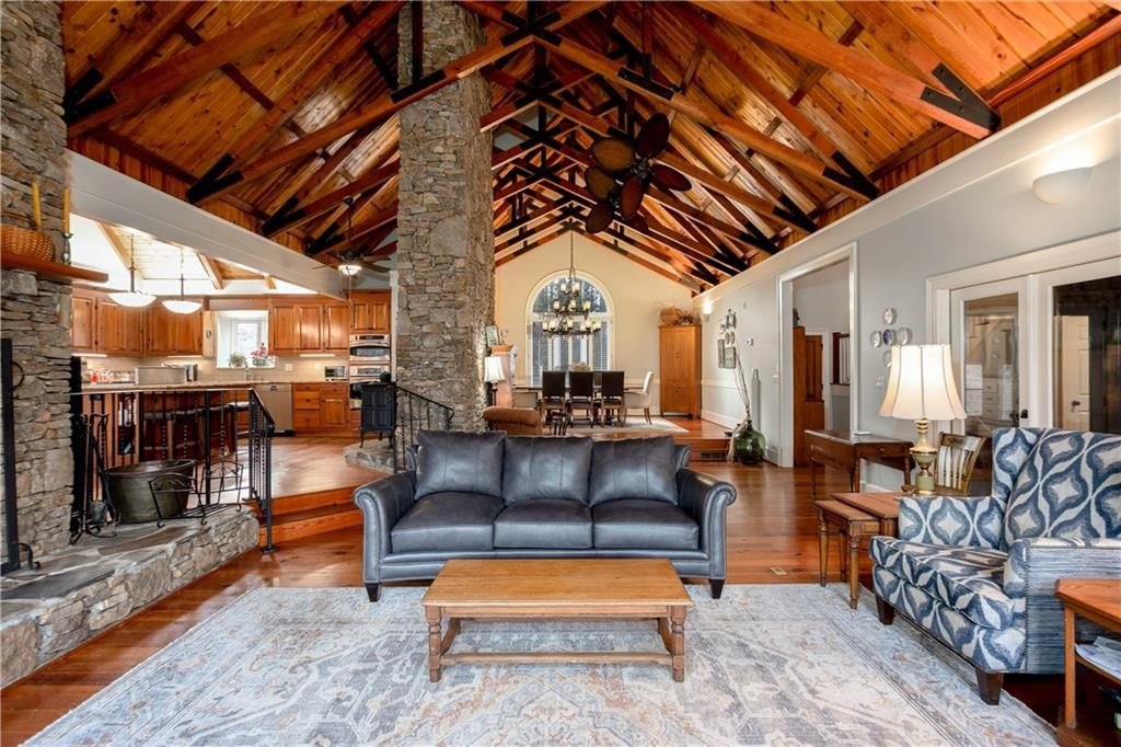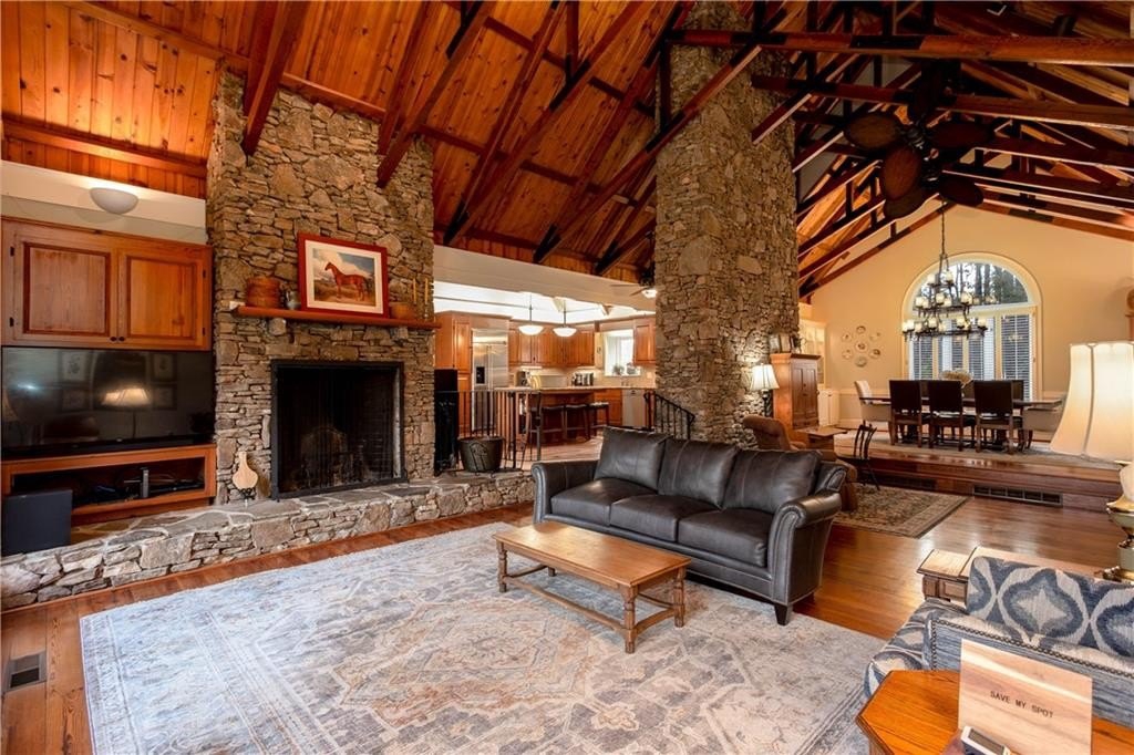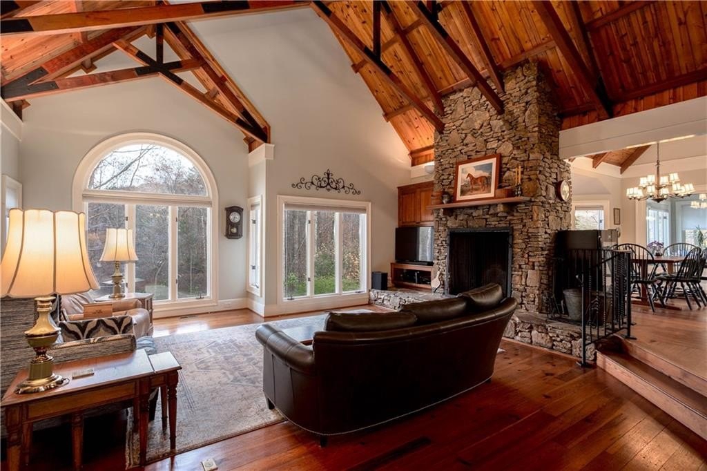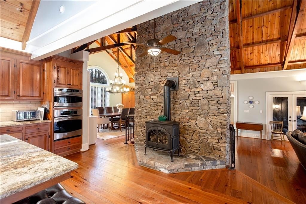 Amazing opportunity to own a 27+ acre equestrian/gentleman farm in the heart of SE Cherokee County mere minutes from Milton. This estate presents lush fenced pasture, rolling mature hardwoods and a spring fed pond. The equestrian amenities provide; a fenced riding arena and a cypress barn with three stalls and a 12’x14’ shavings room that can be converted to an additional stall. The house is wrapped in cypress and fieldstone and provides a whole house generator as well as a geothermal HVAC system to keep utility costs down. The property has two drilled wells; one for the house and another at the barn. Step inside of the home to an open concept living/dining/kitchen/breakfast rooms. Bright natural light pours through the expanse of windows and the privacy offered gives no reason to cover them. Heart pine floors below and soaring exposed beams in the 2 story ceilings. Floor to ceiling stacked fieldstone masonry fireplace, wood stove and stove insert in the master allow for natural wood heat if desired. The large mudroom has handsome brick paving for the floors. A partial finished space above the garage provides a great place for a craft room, play space, or extra storage. Step out on the Brazilian hardwood back deck to view a large portion of the property including the private pond that recently had the spillway updated and replaced, landscaping and abundant wildlife. This property is for those that want privacy and a rural feel, yet want to be very close to great shopping, dining, parks and school systems. The property also qualifies for and is currently in conservation with the county for considerable tax benefits.