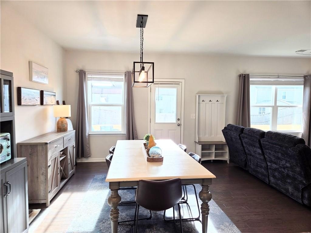 Built in 2021, this stunning 5-bedroom, 3-bathroom home offers 2,956 square feet of bright, open, and thoughtfully designed living space, flooded with natural light. It features beautiful hardwood floors and a modern open-concept kitchen, living, and dining area, plus a flexible space that can serve as a formal dining room or secondary living room. The kitchen features a huge island, granite countertops, and stainless steel appliances - perfect for cooking and entertaining. The upper level features four spacious bedrooms, including an expansive primary suite designed for rest and relaxation, plus a versatile loft perfect for a media/game room, play area, or study. On the main level, an additional bedroom offers flexible space for a guest suite, home office, or hobby room. Step outside to a spacious, level backyard enclosed by a privacy fence - perfect for barbecues, playtime, or relaxing evenings - while the inviting front porch, roomy enough for rocking chairs, offers a charming spot to enjoy the neighborhood and unwind. This thoughtfully designed home blends style, functionality, and comfort for today's lifestyle.