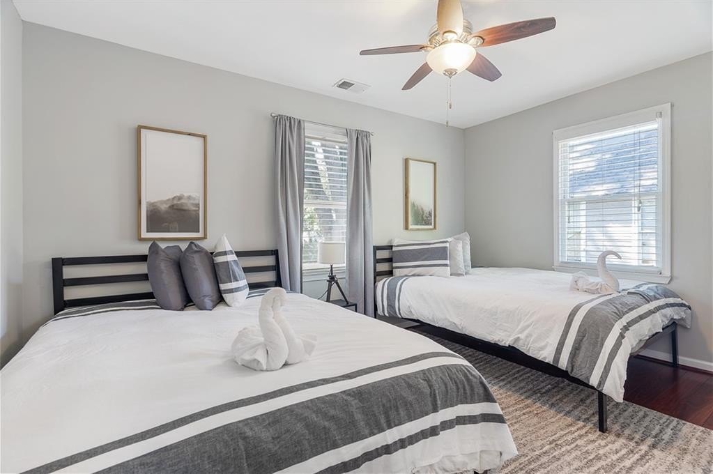 Both levels are thoughtfully laid out with 2 bedrooms, 1 full bath, stylish décor, and inviting outdoor living spaces. Guests and tenants alike will appreciate the ample parking and easy access to neighborhood favorites like Tuza Taco, The Daily, Monday Night Brewing ,The Works and more.
