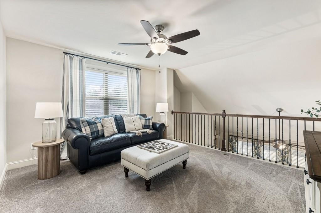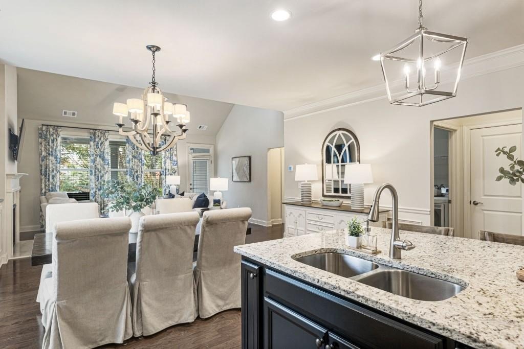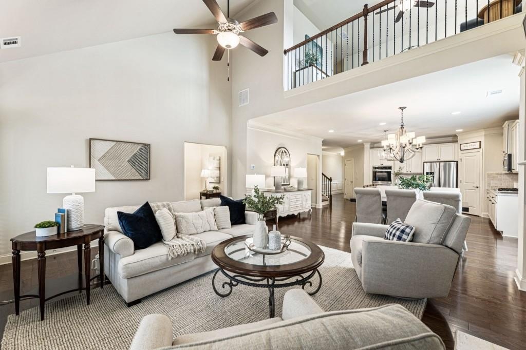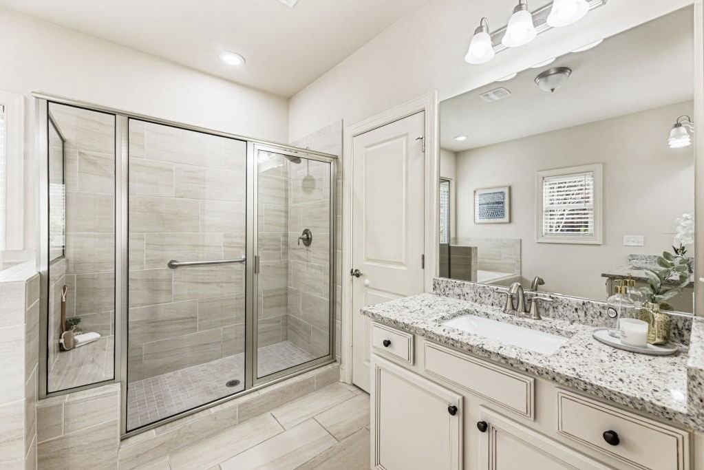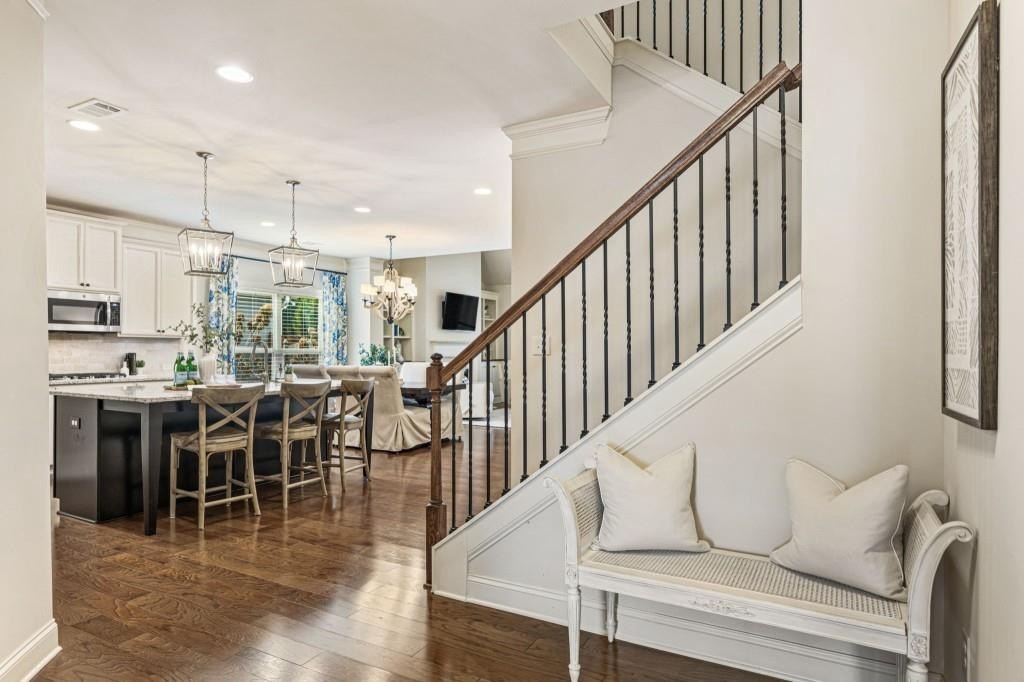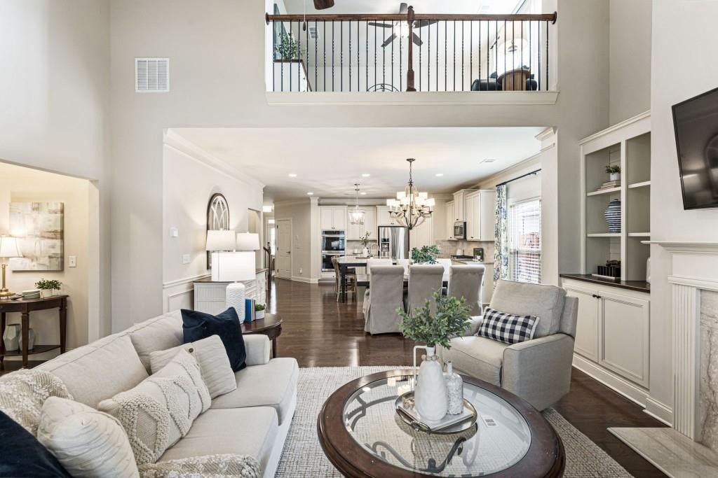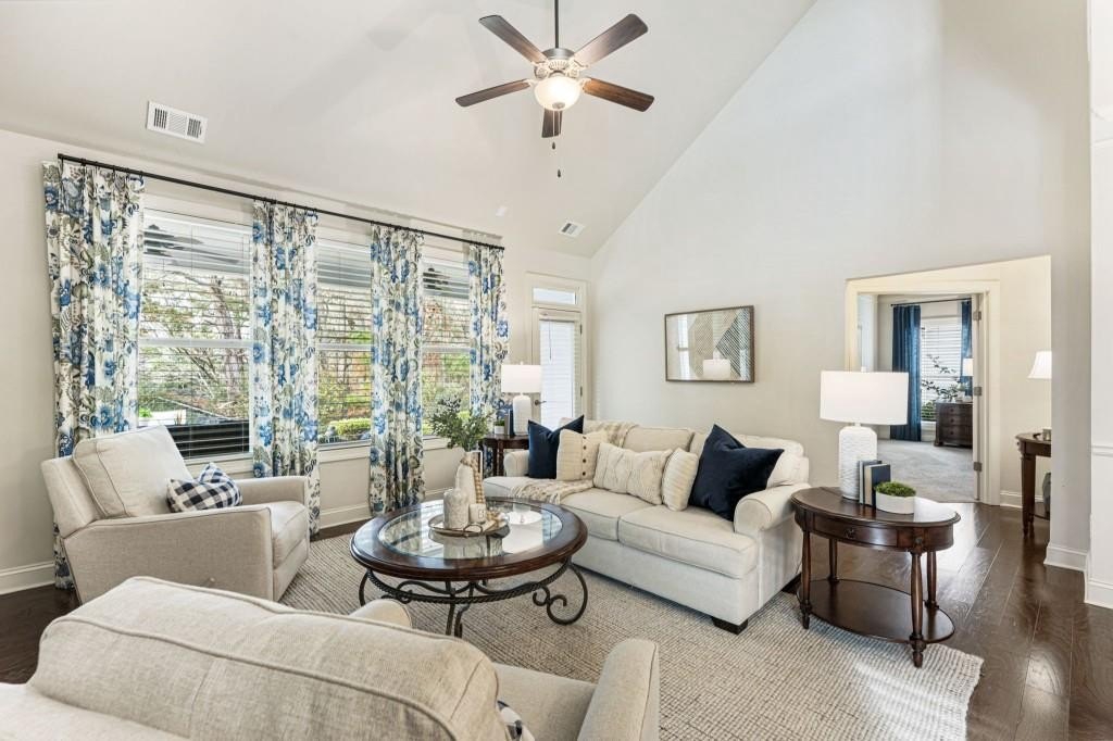 Beautifully designed and perfectly maintained, this home offers easy living with a primary on main and open concept with a back wall of windows overlooking the private backyard. The walkout backyard and huge covered patio space with upgraded stone is the ideal place for enjoying quiet mornings and evenings. The open, light-filled main floor plan creates a warm and inviting feel from the moment you enter. The large gourmet kitchen opens to the breakfast area and then the living room with the fireplace anchored by custom built-in bookcases with ship lap details. The convenient main-level laundry room and clever storage under the stairs keep everyday life organized and clutter-free. The chef's kitchen is upgraded with granite countertops, a large island for prep and gathering, a generous pantry, and upgraded appliances, including new LG double ovens, a KitchenAid dishwasher, and a KitchenAid gas cooktop. The main-level primary suite is a relaxing retreat with its own sitting room, an expansive shower, dual vanities, and a custom closet with built-in cabinetry. A second bedroom and full bath on the main level provide ideal flexibility for guests, an office, or everyday living. Upstairs, you'll find a third bedroom, full bath, spacious bonus room, and an abundance of storage floored and ready for your items. The exterior is just as inviting. The covered back patio has been upgraded with beautiful pavers, creating a comfortable outdoor living space that overlooks peaceful views of the neighboring farm where horses add charm and character to your day. Additional highlights include new gutters with a guard system and professionally maintained front and back landscaping covered by the HOA. This friendly community also offers a pool and guest house, making it easy to relax, entertain, and enjoy low-maintenance living. Schedule your tour today!