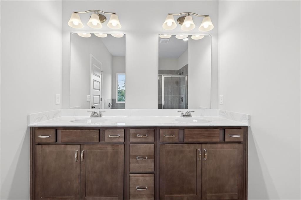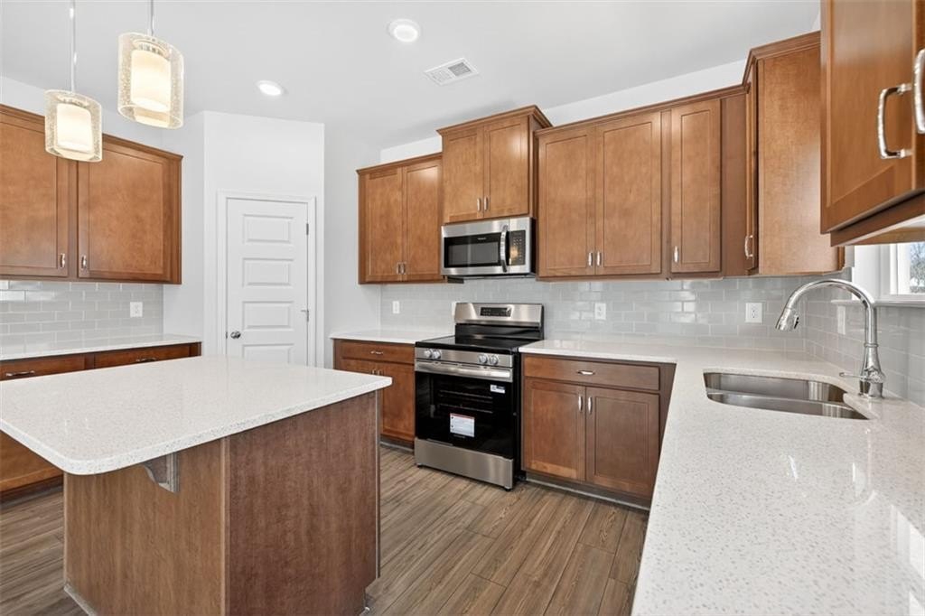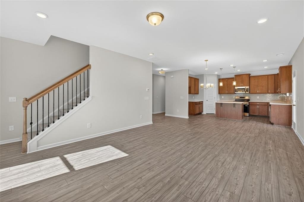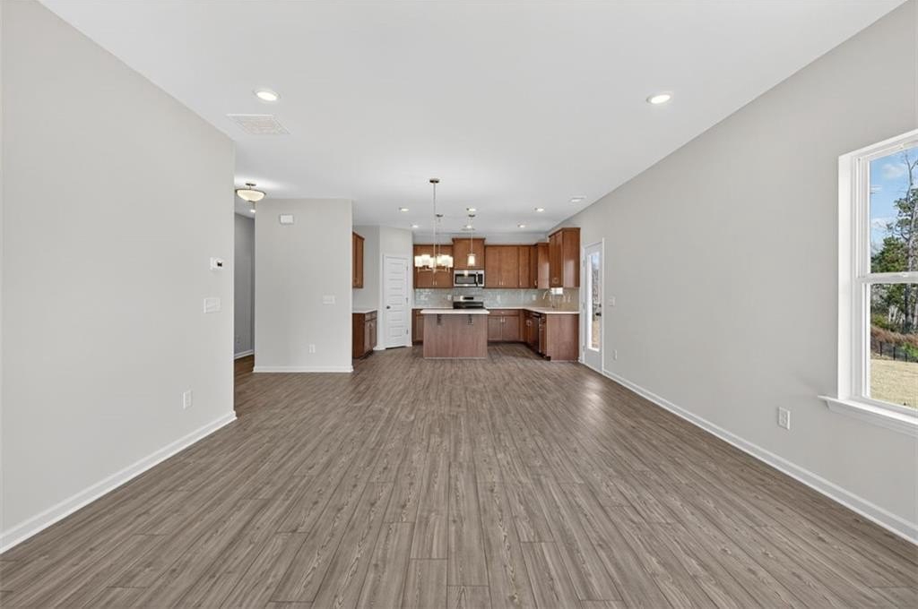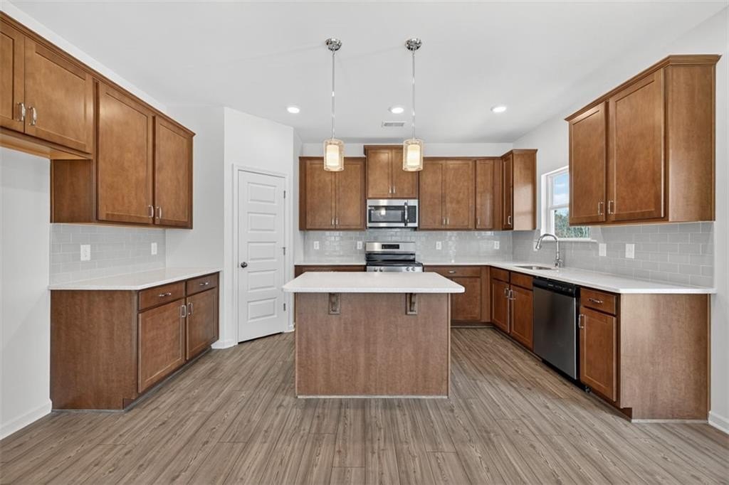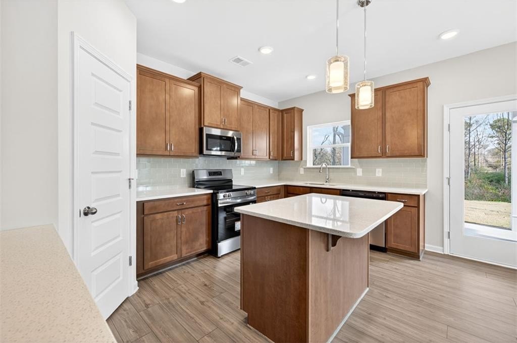 Move in Ready! The McGinnis plan built by Smith Douglas Homes in the Garrett Preserve community! This two-story home has a welcoming wide entry foyer that leads to a traditional dining room that is perfect for entertaining. Both the kitchen and family room with a fireplace, live to the rear of the home and provide access to the rear covered patio for seamless indoor outdoor entertaining. Vinyl plank flooring throughout the main living areas on the main floor. The kitchen has upgraded 42" upper cabinets and granite countertops. Upstairs the Owner's suite with a VERY large walk-in closet with a door leading to the laundry room spans to the rear of the home. The Owner's bath impresses with a Garden tub with a picture window and separate shower. Three secondary bedrooms, each with a walk-in closet and a large secondary bathroom are all located off the open loft, ideal for a workspace, playroom or hobby area. The laundry room is convenient to all bedrooms and can be accessed through the owners closet too! Both stories have Smith Douglas Homes signature 9ft ceiling heights. Photos of actual home. Seller incentives with the use of preferred lender!!!
