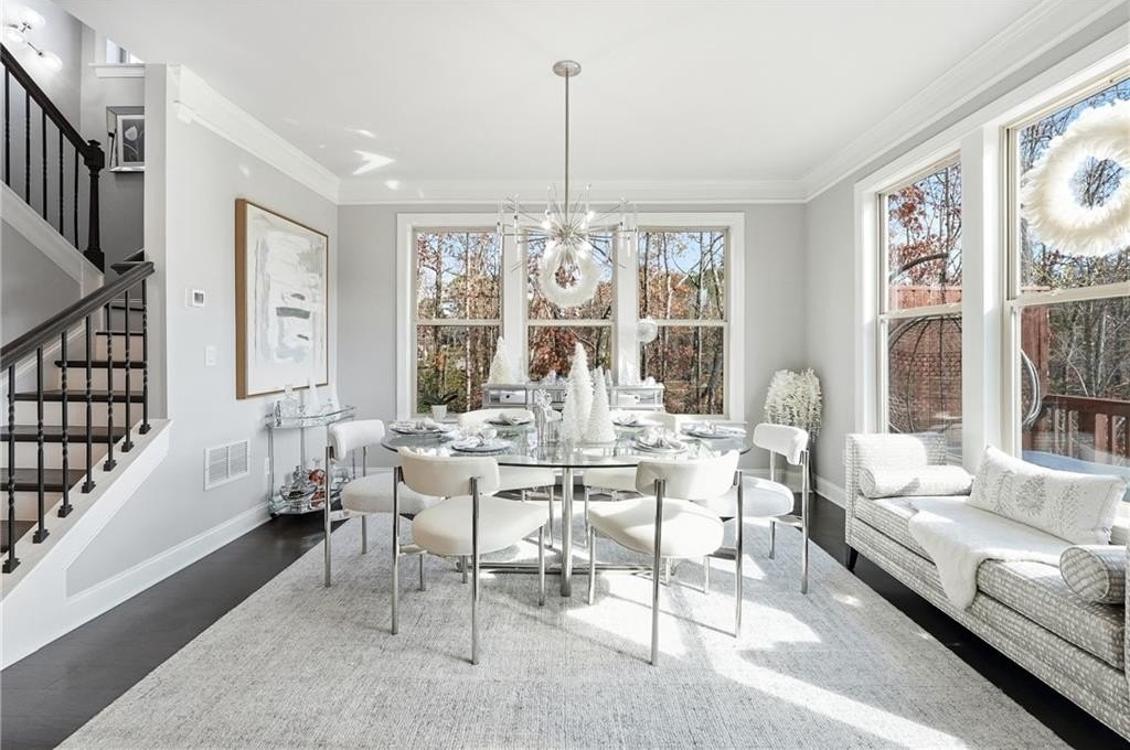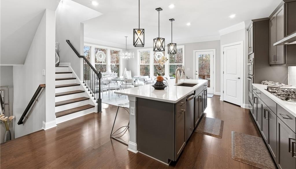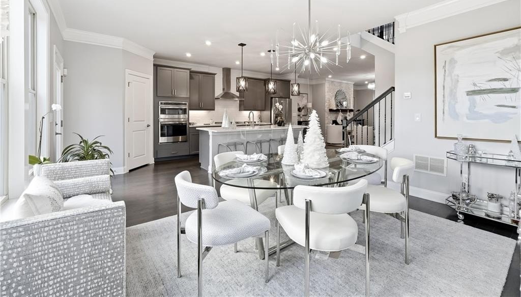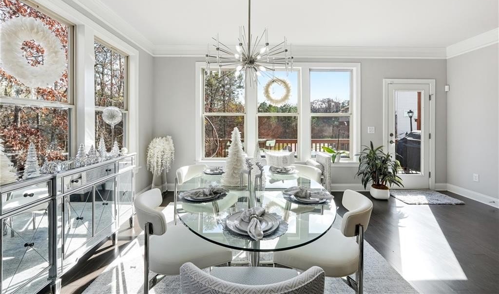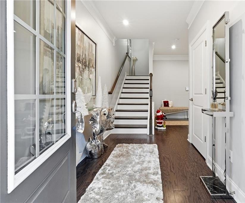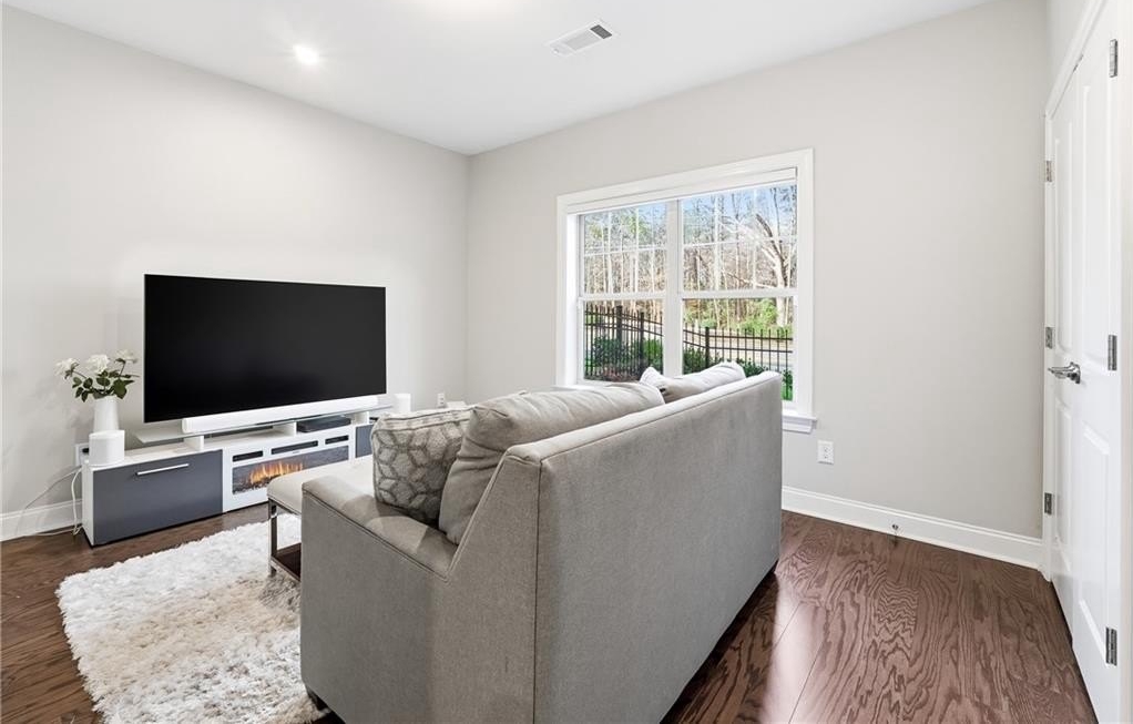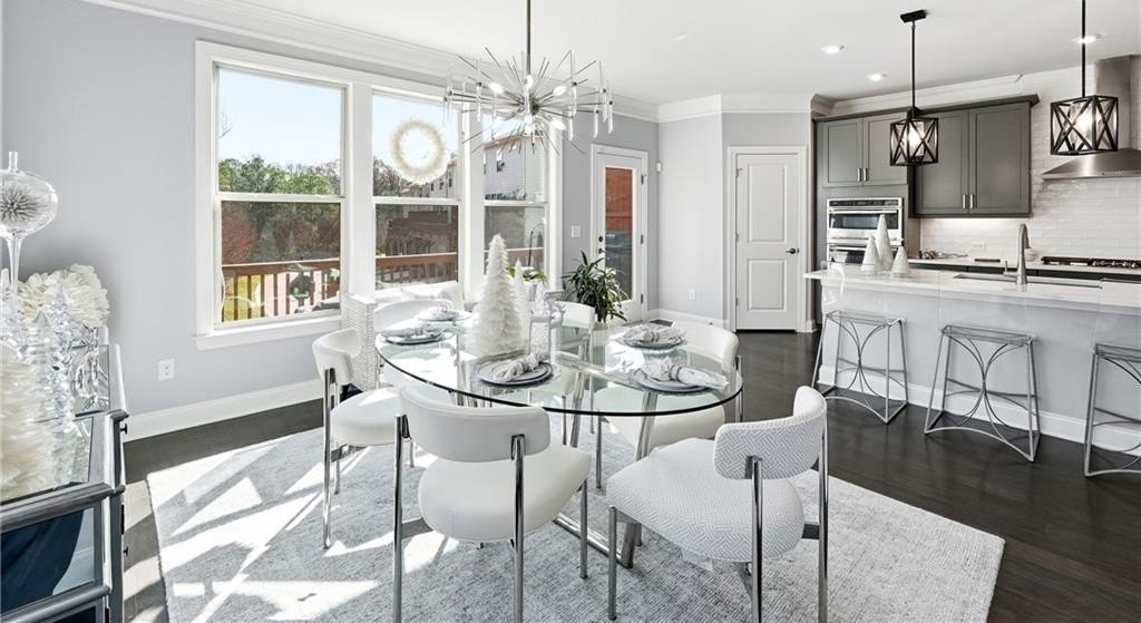 Upgraded corner unit townhome situated in one of Roswell’s most desirable areas. Just minutes from Historic Downtown Roswell, filled with dining, shopping, and local events. Enjoy nearby access to Avalon, Big Creek Park trails, and Roswell Area Park for outdoor recreation. Inside, you’ll immediately notice the upgraded hardwood floors throughout. Kitchen is a chef's dream offering sleek quartz countertops, stainless steel appliances, a large central island, and a generous walk-in pantry. Open-concept dining area flows seamlessly into the great room, where a cozy fireplace sets the tone for warm gatherings and relaxed evenings. Primary suite boasts a spacious walk-in closet and a spa-like ensuite bathroom with a dual vanity and an oversized glass double shower enhanced by sleek, modern tilework. Terrace level adds valuable flexibility, featuring a fourth bedroom and a full bathroom with a beautifully tiled tub surround and tile flooring ideal for guests, a home office, or a private suite. Step outside to your private outdoor deck, perfect for morning coffee, evening unwinding, or outdoor dining. Schedule your showing today!