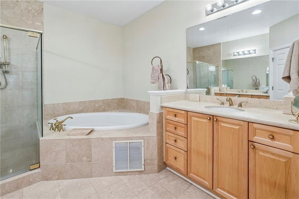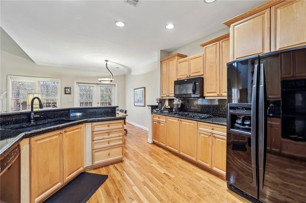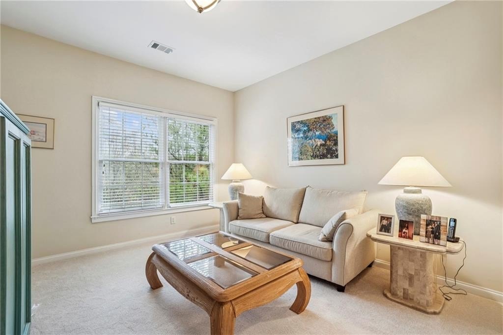 Don't miss out on this incredible offering in sought-after Brickstone Heights. This wonderful gated community offers the best of all worlds... enjoy living in this gated neighborhood which offers easy access to great shopping, interstates, top-ranked public and private schools and near by walking trails at the Chattahoochee River. An opportunity like this is rare... this wonderful townhome features the PRIMARTY SUITE ON THE MAIN LEVEL. The two car garage has a stepless entry into the home. This incredibly open, light and bright floor plan features hardwood floors throughout most of the main level. The main floor is open and inviting with a spacious formal dining room which is adjacent to the kitchen for easy entertaining. The gourmet kitchen features granite countertops, custom 'roll out' shelves in many of the cabinets and pantry, double ovens and a microwave. The laundry room is conveniently located off the kitchen which is the perfect location with the primary suite being on the main level. The kitchen also features a 'breakfast room' area with plenty of space for a very large breakfast table. The breakfast area offers easy access to the deck area for outdooring grilling. The deck is the perfect place to relax in the spring and fall and enjoy the peaceful setting. Open to the kitchen area is the two story great room featuring a fireplace with gas logs. This room just like all the rooms in this home features lots of windows offering a very light, bright and open feeling. There is no shortage of storage including space in the two car garage as well as ample closet space throughout both the main floor and second floor. The second floor offers great versatility with two secondary bedrooms which share a 'Jack and Jill' shower/tub area but each bedroom has its own vanity area. The bedrooms are quite spacious. At the landing area at the top of the stairs is an area that offers the space for an additional sitting area just outside the secondary bedrooms. The true flexibility is found in what is often referred to as the third bedroom option on the second floor... this space in this townhouse has been nicely finished to serve as an upstairs den/TV room as well as a perfect office space with storage galore. This is one of those truly rare opportunities that simply does not present itself very often. Not only is Brickstone Heights such a popular community but the easy life-style is what is so sought-after with the exterior maintenance covered by your HOA dues as well as the professional grounds care of your home as well as all the common areas throughout the community. 404 Brookview Circle is also located in a prime location within the gated community as it offers very easy access to additional guest parking and the neighborhood pool. If you are looking for a place to call home where living as close to maintenance free as possible is offered and all within such a close-in location yet 'tucked away' in a gated community where when you arrive home you feel as though you are in an oasis far removed from the hustle and bustle of the city. This is one of those rare offerings where you can move right in, not have to worry about doing anything and start enjoying your new home and neighborhood and all it has to offer.