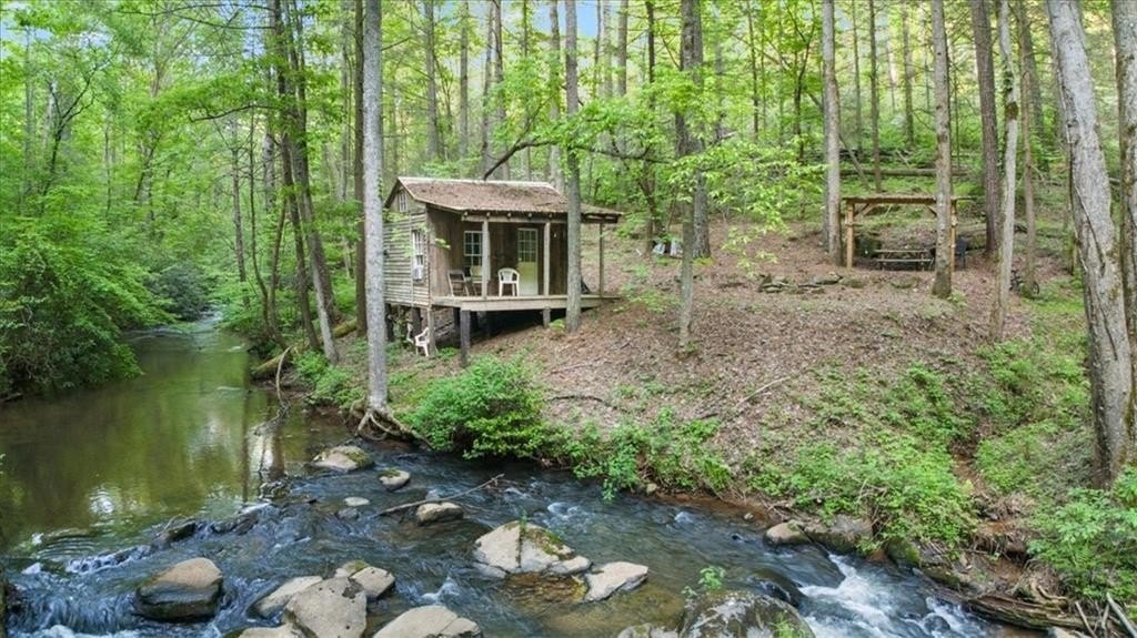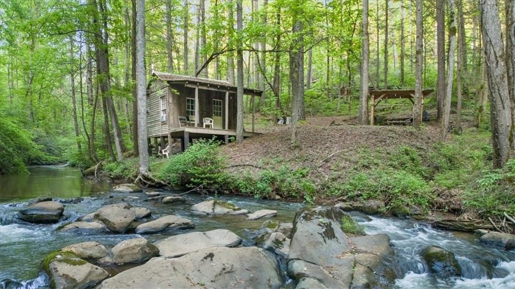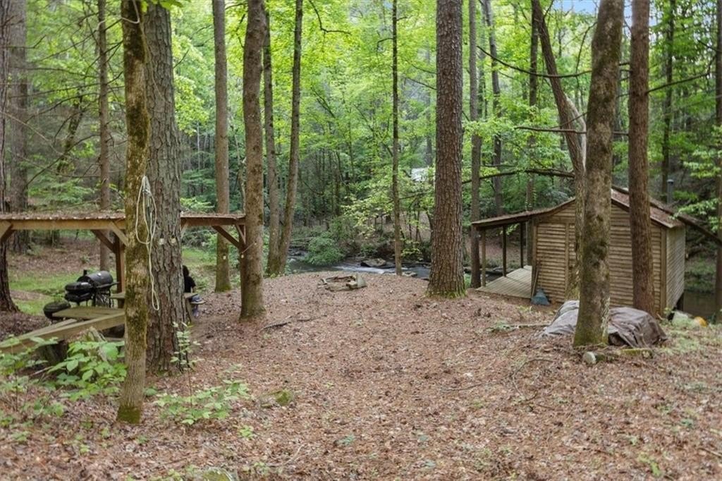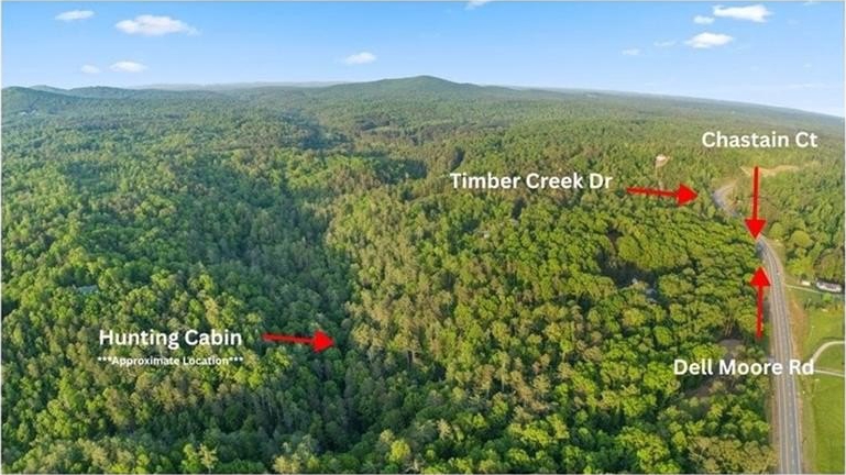 Access is easy and convenient with three separate entry points via Chastain Ct., Timber Creek, and Delmore Rd. The property features a cozy rustic cabin/shed, an outhouse, a designated picnic area, and a firepit—perfect for weekend getaways or hosting gatherings right by the creek.