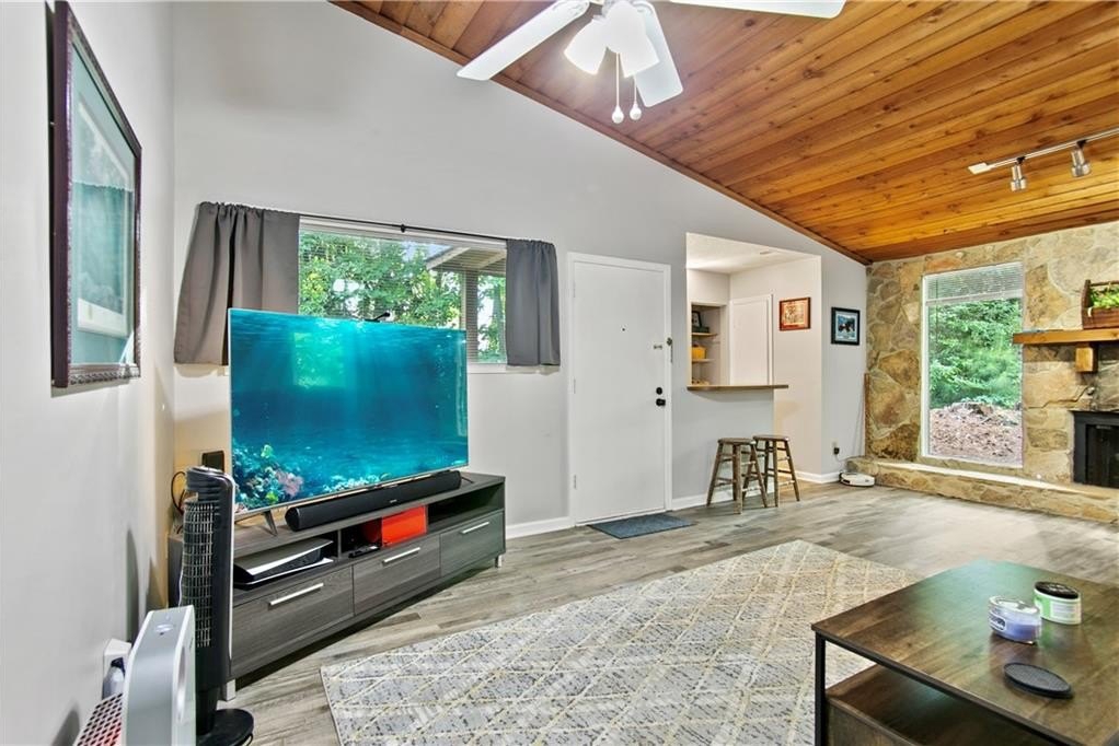 End Unit Townhome in the Heart of East Cobb. Open Concept Floor Plan with a Huge Primary Suite, Full Bath and Half Bath. Soft Neutral Colors, Updated Fixtures and All LVP/Tile Flooring. The Kitchen has been Recently Remodeled to create a Modern and Vibrant Living Space. It features Granite Counters, New White Shaker Cabinets & Tile Backsplash. Separate Dining Area. Spacious Family Room with a Vaulted Tongue in Groove Wood Ceiling, Great Natural Light and Fireplace. There is a Separate Wet Bar for Entertaining Guests. Spacious Primary Suite including Walkout Access to Patio and Large Master Closet. Dedicated Master Bath boasts Oversized Vanity and Tub/Shower Combo. Half Bath for Guest Access. Covered Front Porch and Private Back Patio for Quiet Evenings & Saturday Morning coffee. Bonnie Glen is a Shaded, Walkable Community with a Beautiful Pool and Plenty of Parking. HOA covers All Exterior including Roof, Gutters, Paint, etc. Great Marietta Location. Convenient to I-75 and Express Lane.