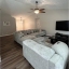 throughout all main living spaces, carpeted bedrooms and tiled bathroom