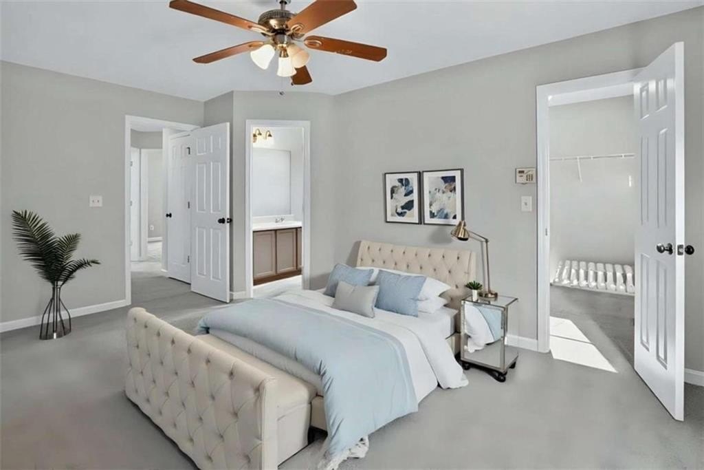 This traditional 3-bedroom, 3-full-bath home sits in a quiet, established neighborhood with easy access to shopping, schools, public transportation, and major highways. Thoughtful updates throughout combine comfort, value, and sustainability, making this home truly move-in ready. Step inside to find a well-appointed, functional floor plan-perfect for both relaxing and entertaining. The main level offers a spacious family room with a cozy fireplace, an eat-in kitchen with ample cabinet space, a dedicated dining and living area, and a flex room with a full bath that can serve as an office, guest suite, or entertainment space. Upstairs, the owner's suite features a large closet and a private en-suite bath with a soaking tub and shower. Two additional bedrooms provide generous space and share a full hall bath. This home has been beautifully refreshed with brand-new carpet, brand-new interior paint, brand-new landscaping, and brand-new toilets. Even more, it boasts a brand-new roof! With no HOA fees and a seller who is highly motivated, this property offers incredible value. Don't miss this opportunity!