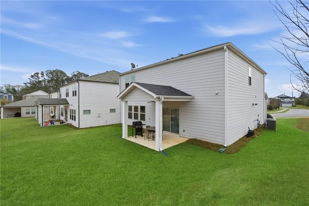 Discover a home that blends modern style, thoughtful upgrades, and effortless everyday living. This beautifully finished residence features an open, inviting layout with designer touches throughout — from striking black-and-gold kitchen accents to custom details that elevate every space. The chef’s kitchen is an entertainer’s dream with double ovens, gas cook top and upgraded fixtures. Just off the main living area, a private office with custom barn doors provides the perfect work-from-home retreat. Step outside and enjoy one of the home’s biggest highlights — a spacious, beautifully maintained backyard that offers endless possibilities. Whether you envision a play area, gardening, or simply relaxing under the covered patio, the yard provides the privacy and room to create your outdoor retreat. A ceiling fan on the patio and a Rainbird irrigation system add both comfort and convenience. Smart-home features include a doorbell camera, garage and backyard cameras, and a tankless water heater for endless hot water and long-term efficiency. Meticulously maintained and designed for both style and function, this home offers the best of modern living — inside and out.
