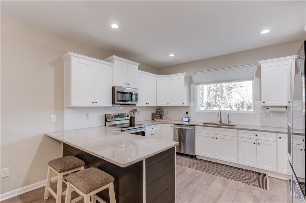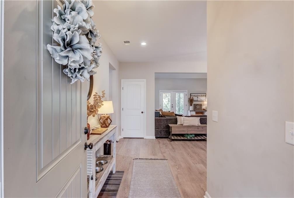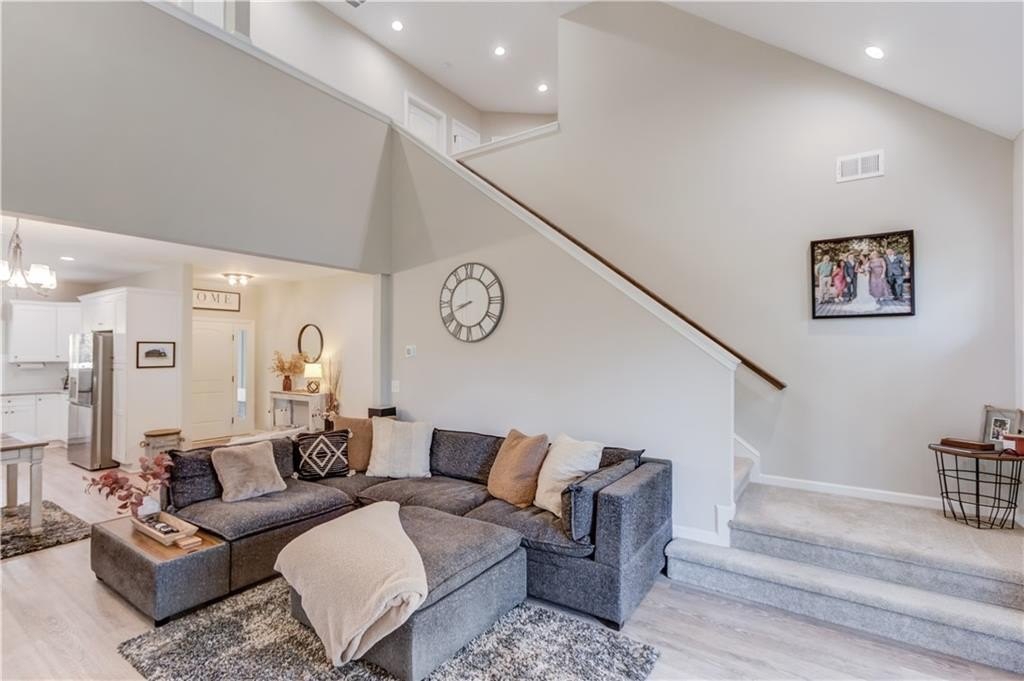 Lake Lanier living at its best in this lakeside community, Timberidge Estates on Lake Lanier. Built in 2021, this nearly new 3 bedroom, 2.5 bath home offers a bright and open layout with a vaulted living room that fills the main living area with natural light. The kitchen features white cabinetry, granite countertops, stainless steel appliances, and a large island that opens to the dining area, creating an easy flow for everyday living and entertaining. The primary suite is conveniently located on the main floor and includes a walk-in closet and a spa-like bath with double vanities and a tiled shower.