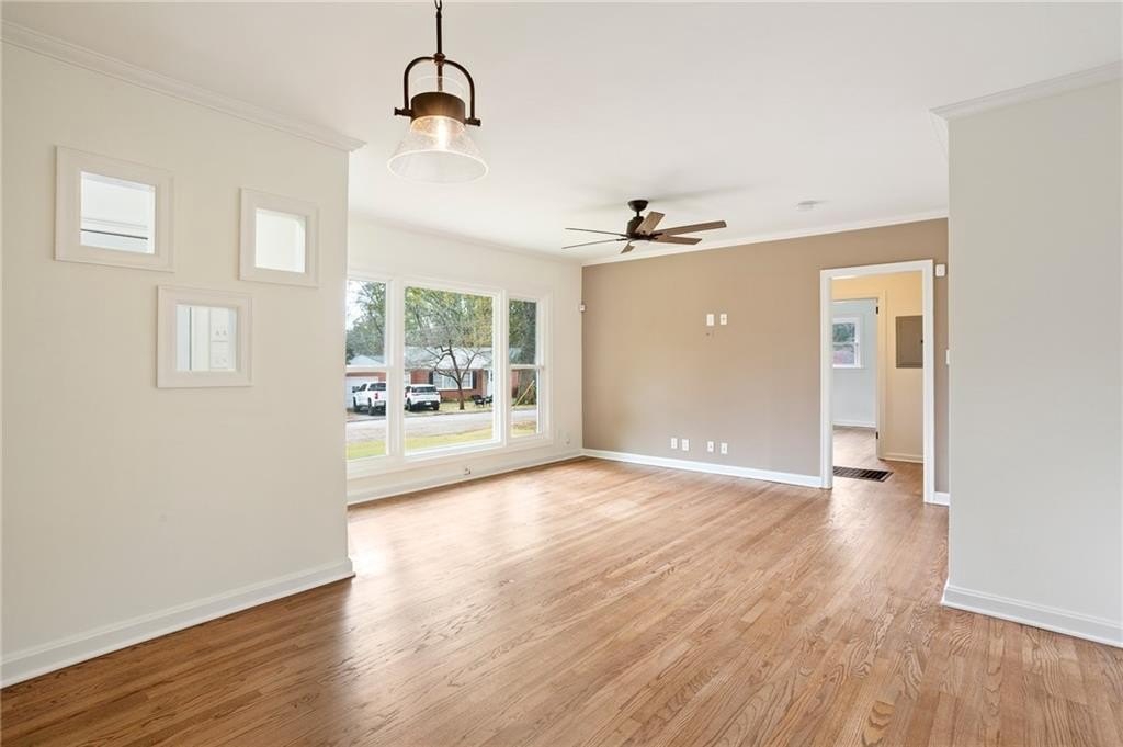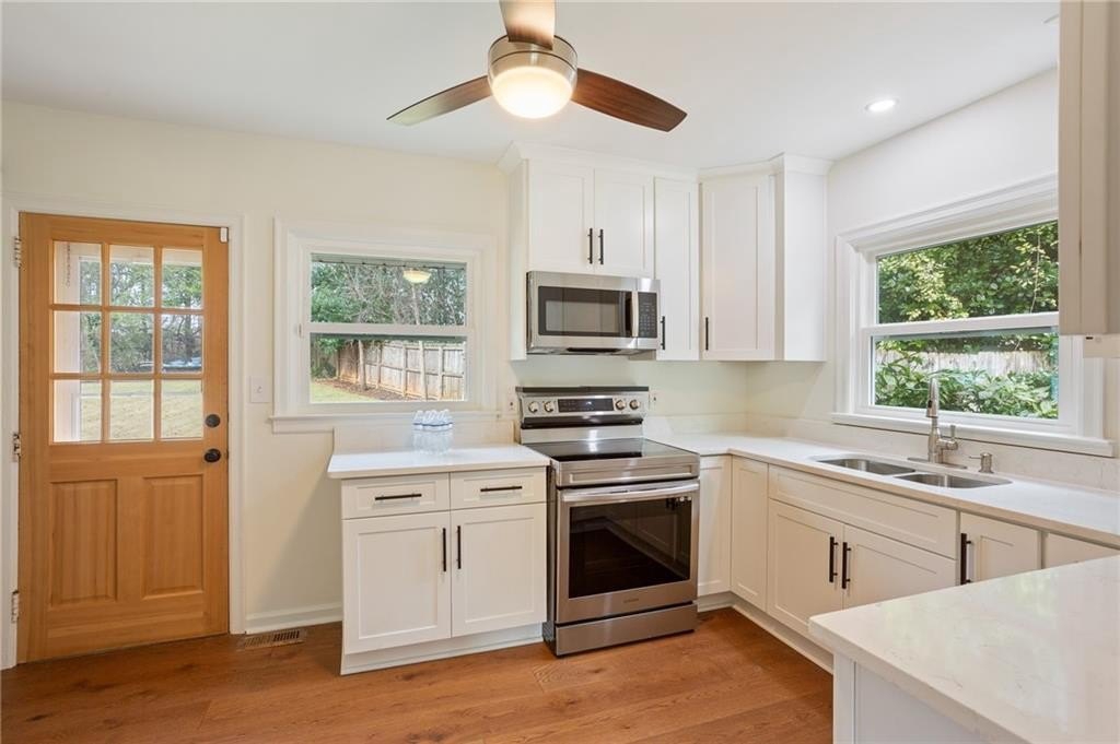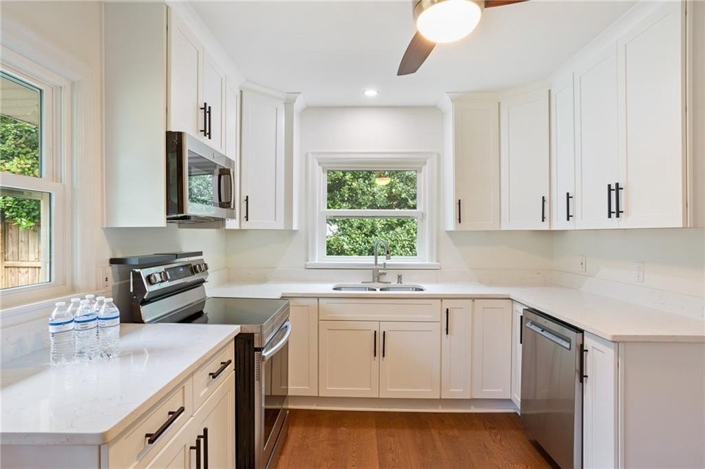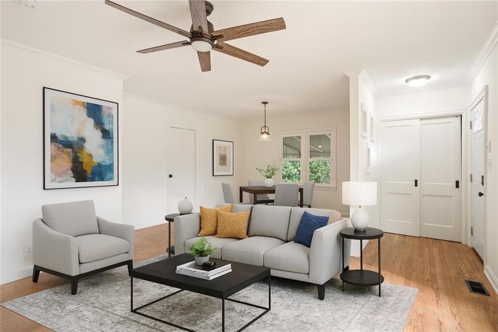 Welcome home to this beautifully updated 4-sided brick ranch in one of Smyrna’s most desirable, walkable locations! Just steps from Smyrna Market Village on one side and Taylor-Brawner Park on the other, you’ll love living in the heart of it all — from Food Truck Tuesdays and events at The Community Center and Village Green to shopping, dining, and green space right outside your door. Inside, this home shines with newly refinished hardwood floors throughout and a completely renovated kitchen featuring crisp shaker cabinetry, quartz countertops, and stainless steel appliances — the perfect combination of style and function. The spacious living area is open to a sizable dining area right off of the kitchen. With three spacious bedrooms and a full bathroom, this home lives comfortably and efficiently. And unlike many older homes, the big stuff is already done for you — all major systems, the roof, and windows have been replaced within the last five years. Even the crawl space has been fully encapsulated for added peace of mind. Don't feel like walking over to the Village Green for a concert? Not to worry - you can enjoy the music right from your own backyard! The large backyard gives plenty of space for outdoor living and features a sprinkler system that was put in only a few years ago. This truly feels like buying a new home wrapped inside charming, classic brick ranch — all in a location that rarely becomes available.