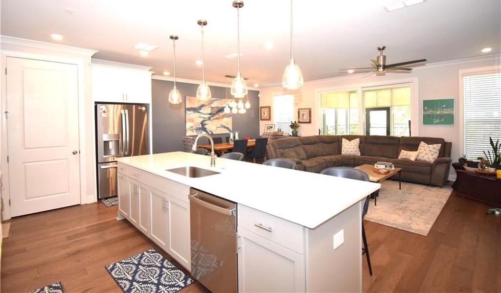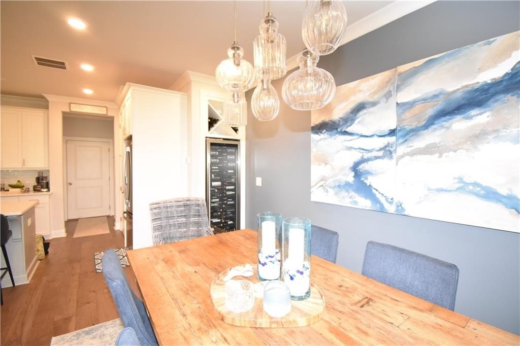 Price improvement for quick sell! Act now! This beautiful townhome features the Ellington plan, boasting a main level entry and a driveway. Key features of this property include: a 2-car garage with additional parking in the driveway, linear fireplace, built-in wine fridge with a 155-bottle capacity, custom pantry, two custom closets, screened-in porch with sliders, shiplap entry foyer, window screens, epoxy garage floor, kitchen cabinet pullouts, built-in family room cabinets and shelving, separate tub and shower with bench in the primary suite, hardwood floors throughout, fenced-in yard, and preparation for a future elevator. The amenities package in the neighborhood is the best Peachtree Corners has to offer with 4 large green spaces, pool that backs to the river walk, pavilion that overlooks the river walk, pickleball courts, clubhouse and much more!! Walk along the river walk to the Chattahoochee! Gated community!! Here today and gone tomorrow, don't miss it!!