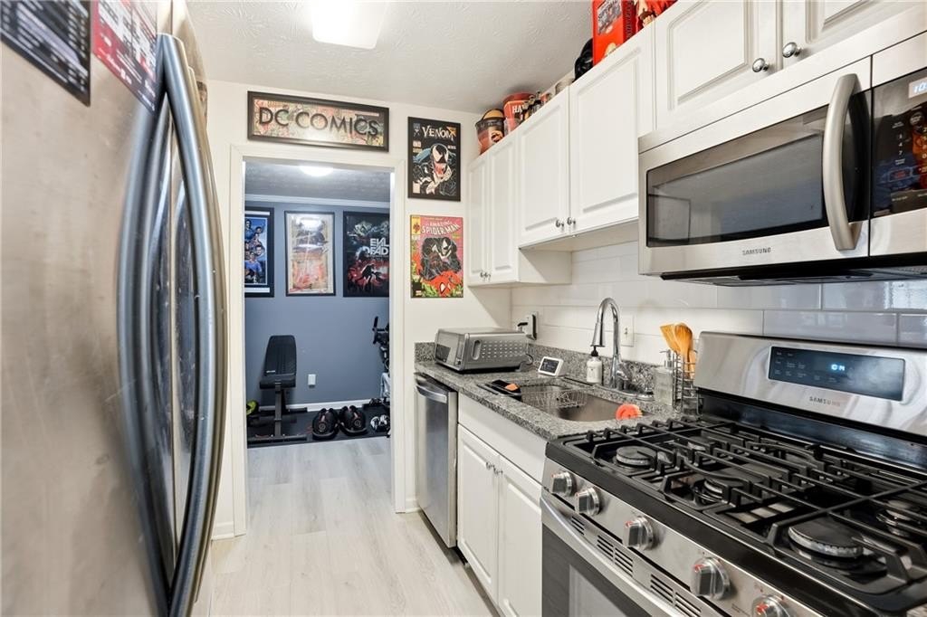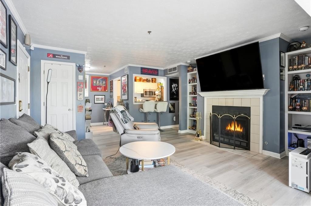 Discover a true treasure in the heart of coveted Smyrna! This spacious 1 bed, 1 bath condo will delight you with an expansive floor plan. Showcasing a cozy fireplace, built-in bookcases, and a bright sunroom featuring large windows and access to a private patio as you enter, it creates a positively chic space perfect for lively gatherings or quiet evenings at home. The updated kitchen shines with sleek granite counters, stainless steel appliances, and bar seating, ideal for whipping up your favorite meals or hosting intimate get-togethers. The spacious bedroom offers a serene retreat with an ensuite bathroom and a large walk-in closet. The Vinings Central community perfectly complements your lifestyle with a sparkling pool, tennis courts, a welcoming club house, and public grills for endless enjoyment. You’ll find idyllic suburban living just minutes from the vibrant energy of The Battery and Cumberland Mall, with easy access to I-285, nearby shopping, dining, local parks, and the scenic Chattahoochee River, plus a quick 20-minute drive to downtown Atlanta. Schedule your showing today and discover the life within Smyrna you’ve been dreaming of! Gate Code is 9990