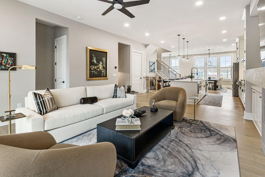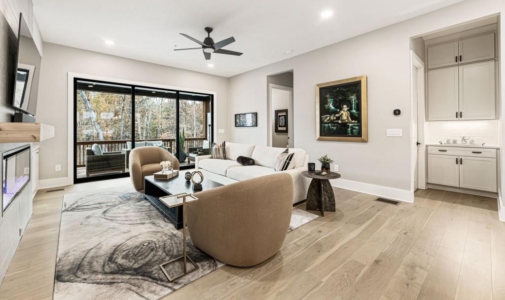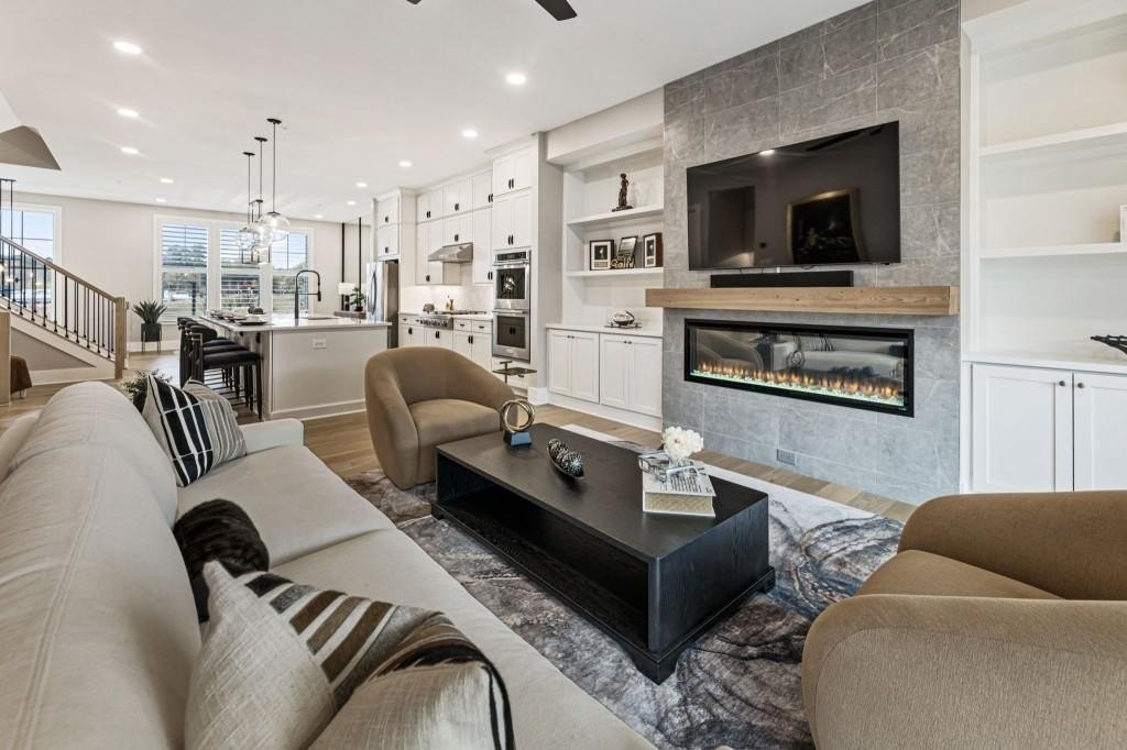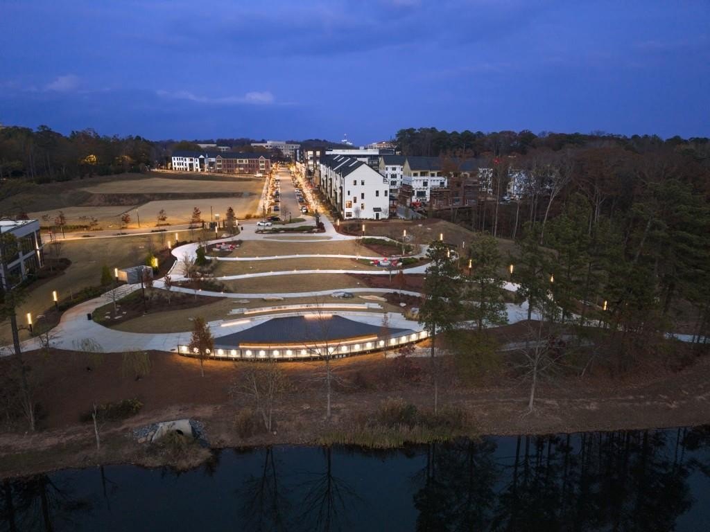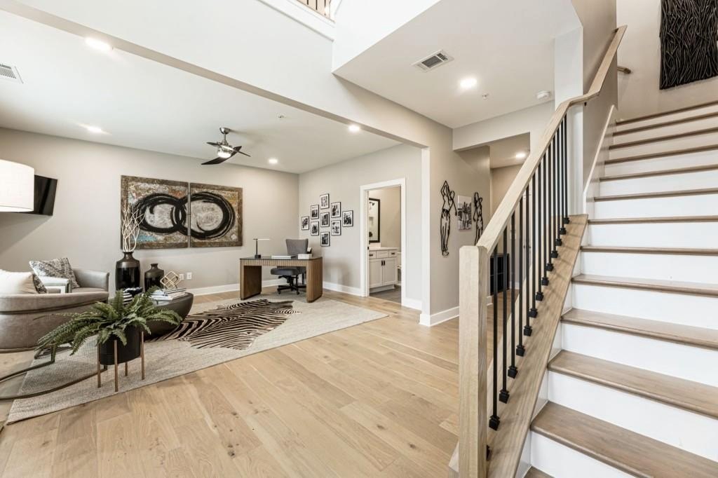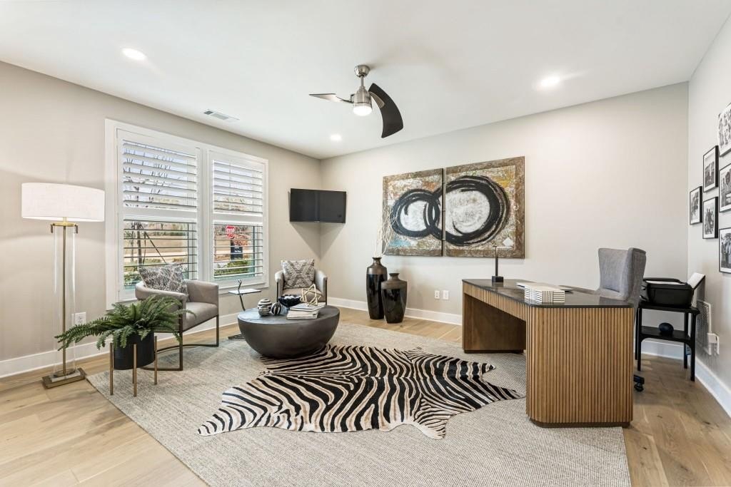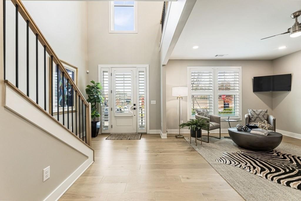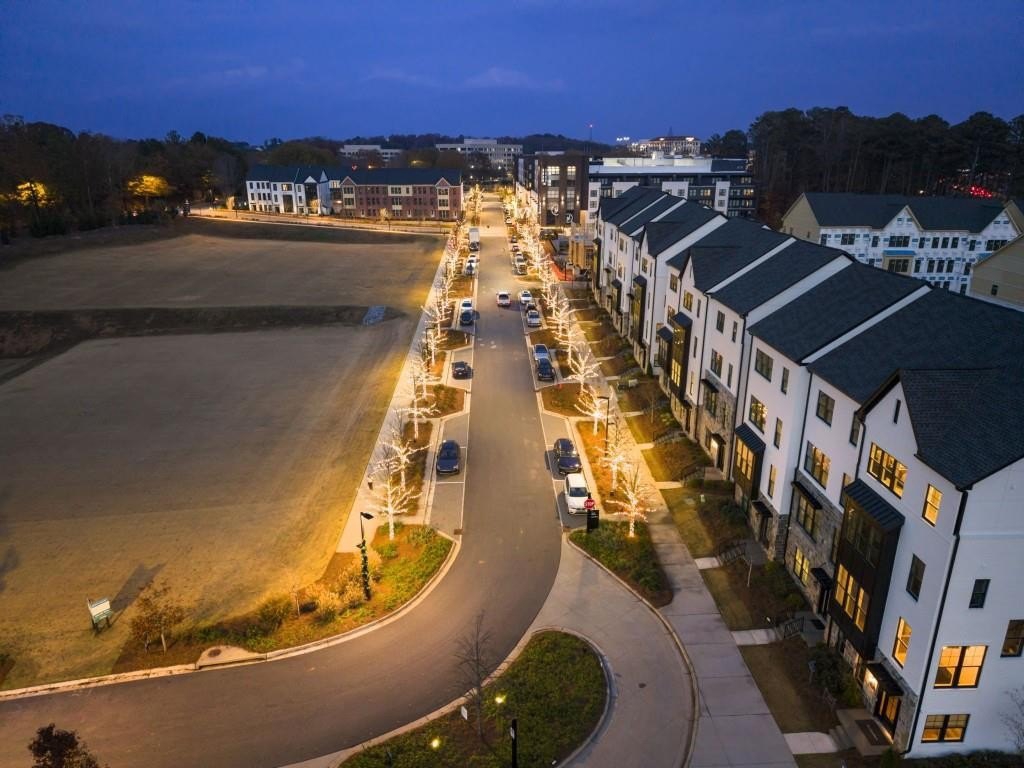 Experience the unrivaled height of luxury living in this better-than-new, designer-finished townhome - an extraordinary residence that surpasses even the most premium new construction offerings. Nestled within the prestigious Lakeview community in the heart of Alpharetta, this nearly new masterpiece blends timeless elegance, custom enhancements, and an unmatched location to offer a lifestyle of pure luxury and effortless convenience. A dramatic, sun-filled two-story foyer introduces the home's refined style, along with a versatile office and full bath that can be easily converted into a private guest suite or optional fourth bedroom if needed. A state-of-the-art elevator offers effortless access to all four impeccably crafted levels. The second floor showcases an impressive open living and entertaining space. A chic formal dining area with mirrored feature wall leads into a breathtaking chef's kitchen with quartz countertops, oversized island, top-tier appliances, walk-in pantry, and butler's pantry. The great room seamlessly extends to a covered outdoor deck through expansive sliding doors, creating a luxurious indoor-outdoor flow. Positioned on one of the community's most coveted lots, the home enjoys rare, unobstructed views of lush trees in the back and serene green space in the front - privacy and beauty unmatched by any surrounding homes. The third floor is reserved for the lavish primary suite - a peaceful sanctuary featuring a boutique-style walk-in new custom closet and a spa-inspired bath with dual vanities, oversized shower, freestanding soaking tub, and private water closet. A laundry room and an additional ensuite bedroom with a walk-in closet complete this level. The fourth floor redefines leisure and luxury. A newly reimagined media and game room boast custom cabinetry, sleek fireplace, wet bar, beverage coolers, and storage built-ins - perfect for hosting and entertaining. An additional bedroom and full bath provide flexibility for guests or extended family. Step right out to the expansive fourth-level covered porch, ideal for unforgettable gatherings under the open sky. This residence truly stands in a category of its own, offering luxuries no new build can rival. Premium upgrades include whole-home high-end interior paint, custom California Closets cabinetry in primary closet, contemporary custom plantation shutters, upgraded lighting throughout, EV Charger in garage, Ring security system, new kitchen refrigerator, upgraded ceiling fans and fixtures, and a jaw-dropping designer-built 4th level wall installation with refrigerated wine storage, dual refrigerated drawers, electric fireplace, liquor cabinets, and modern LED display lighting. With unmatched proximity to Avalon, Downtown Alpharetta, the Alpha Loop, GA-400, premier dining, shopping, and entertainment, this exceptional home delivers effortless elegance, unrivaled convenience, and a lifestyle reserved for the fortunate few. Simply put, there is nothing else like it.