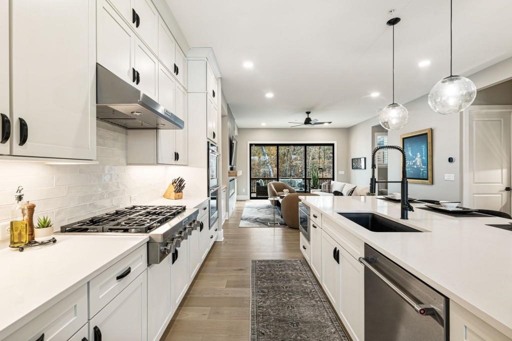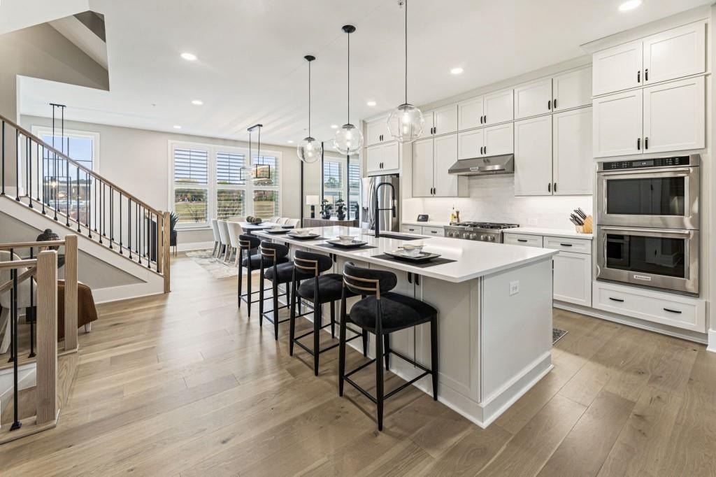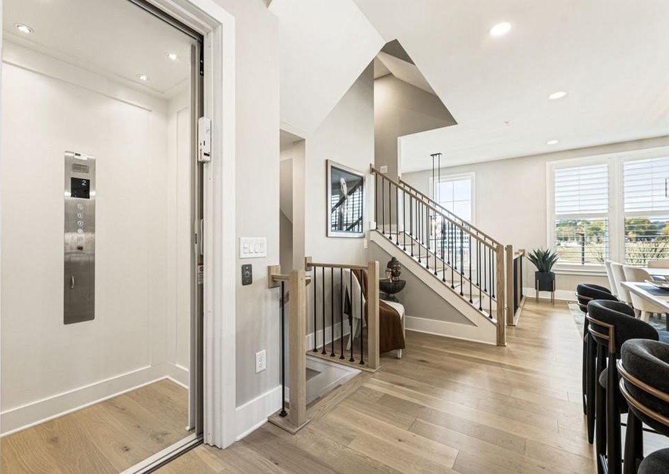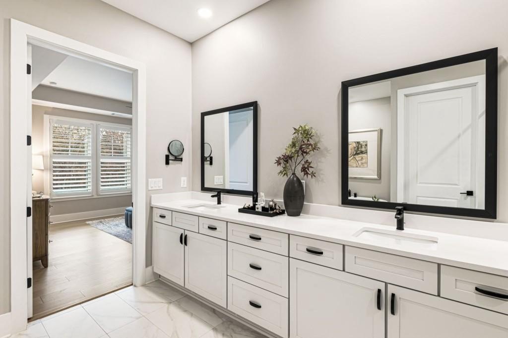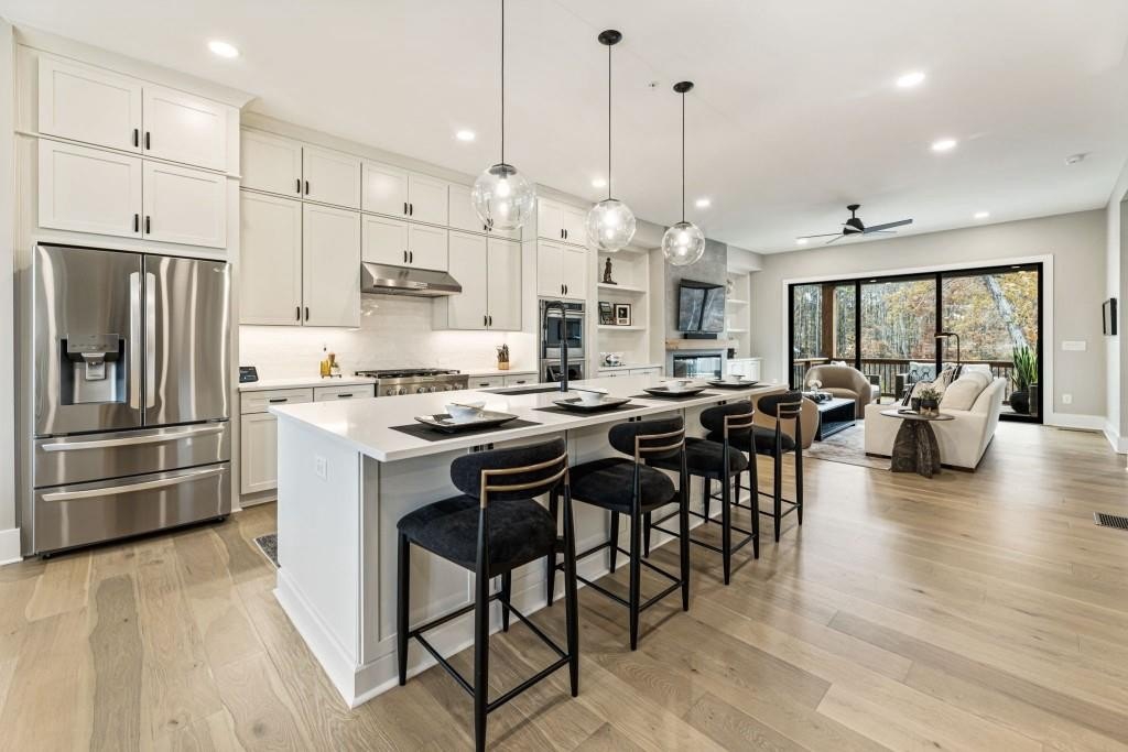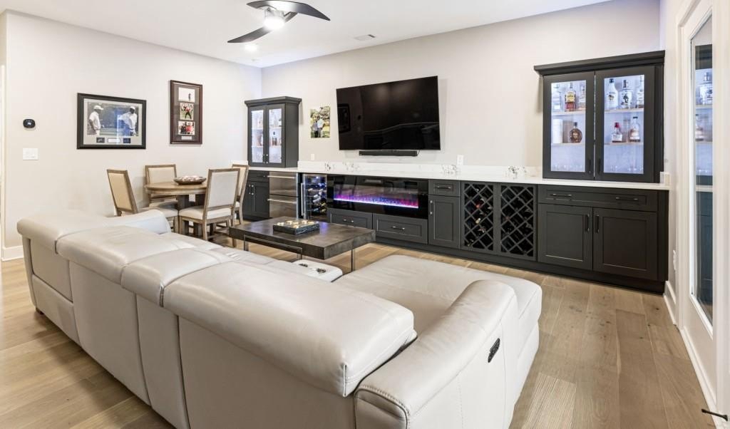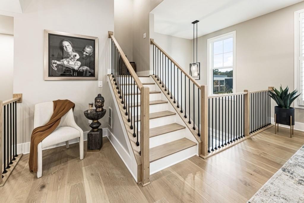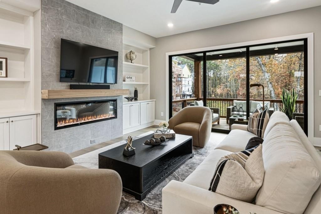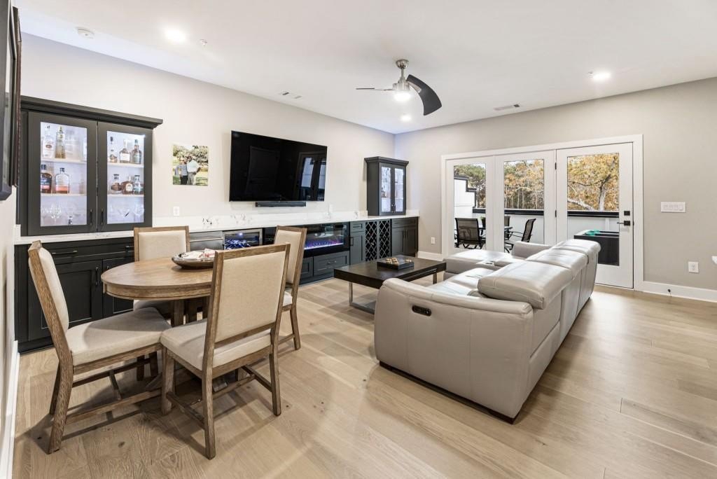Experience the unrivaled height of luxury living in this better-than-new, designer-finished townhome - an extraordinary residence that surpasses even the most premium new construction offerings. Nestled within the prestigious Lakeview community in the heart of Alpharetta, this nearly new masterpiece blends timeless elegance, custom enhancements, and an unmatched location to offer a lifestyle of pure luxury and effortless convenience. A dramatic, sun-filled two-story foyer introduces the home's refined style, along with a versatile office and full bath that can be easily converted into a private guest suite or optional fourth bedroom if needed. A state-of-the-art elevator offers effortless access to all four impeccably crafted levels. The second floor showcases an impressive open living and entertaining space. A chic formal dining area with mirrored feature wall leads into a breathtaking chef's kitchen with quartz countertops, oversized island, top-tier appliances, walk-in pantry, and butler's pantry. The great room seamlessly extends to a covered outdoor deck through expansive sliding doors, creating a luxurious indoor-outdoor flow. Positioned on one of the community's most coveted lots, the home enjoys rare, unobstructed views of lush trees in the back and serene green space in the front - privacy and beauty unmatched by any surrounding homes. The third floor is reserved for the lavish primary suite - a peaceful sanctuary featuring a boutique-style walk-in new custom closet and a spa-inspired bath with dual vanities, oversized shower, freestanding soaking tub, and private water closet. A laundry room and an additional ensuite bedroom with a walk-in closet complete this level. The fourth floor redefines leisure and luxury. A newly reimagined media and game room boast custom cabinetry, sleek fireplace, wet bar, beverage coolers, and storage built-ins - perfect for hosting and entertaining. An additional bedroom and full bath provide flexibility for guests or extended family. Step right out to the expansive fourth-level covered porch, ideal for unforgettable gatherings under the open sky. This residence truly stands in a category of its own, offering luxuries no new build can rival. Premium upgrades include whole-home high-end interior paint, custom California Closets cabinetry in primary closet, contemporary custom plantation shutters, upgraded lighting throughout, EV Charger in garage, Ring security system, new kitchen refrigerator, upgraded ceiling fans and fixtures, and a jaw-dropping designer-built 4th level wall installation with refrigerated wine storage, dual refrigerated drawers, electric fireplace, liquor cabinets, and modern LED display lighting. With unmatched proximity to Avalon, Downtown Alpharetta, the Alpha Loop, GA-400, premier dining, shopping, and entertainment, this exceptional home delivers effortless elegance, unrivaled convenience, and a lifestyle reserved for the fortunate few. Simply put, there is nothing else like it.