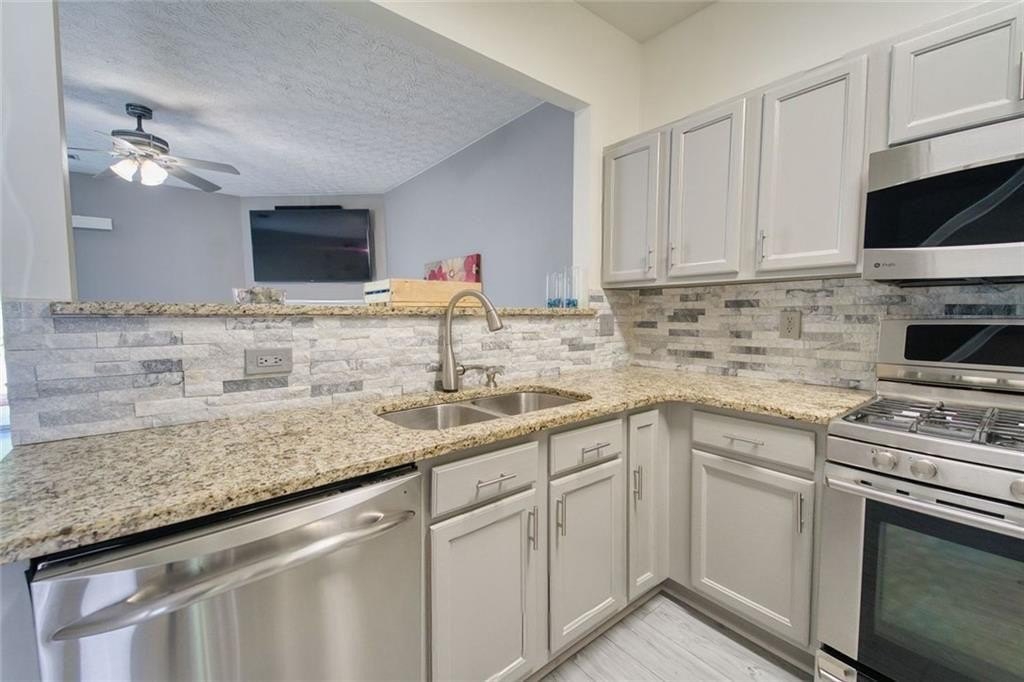 This move in ready 2 bedroom 2.5 bath townhouse located near I-85 close to Gas South and in the Peachtree Ridge school district is definitely a must see! Once you enter you will see a spacious formal dining area and a decor nook. The hallway leads you to a nicely updated kitchen with granite countertops and stainless steal appliances and plenty of cabinet space. From the kitchen you enter a cozy livingroom space with fireplace. Upstairs you'll find a lovely master bedroom and master bath with large vanity. There is also a second bedroom that has its own bathroom. There are 2 parking spaces available for this unit. Community has a pool, clubhouse, and fitness center for your recreational needs. Not to mention this home is located near lots of restaurants, shopping, and plenty of entertainment.