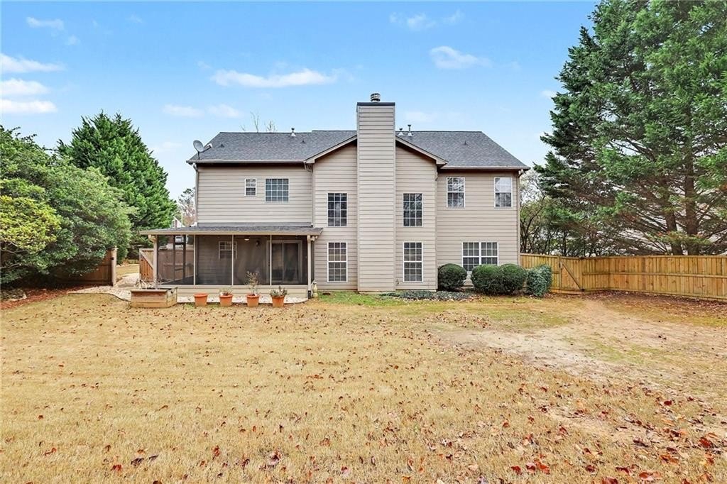 The heart of the home is the dramatic two-story family room, showcasing a cozy fireplace and a stunning wall of windows that bathe the space in sunlight. This airy room seamlessly connects to the well-appointed kitchen, offering a welcoming layout for everyday living and entertaining. The kitchen features an island for extra prep space, abundant cabinetry, and stainless-steel appliances, including a gas range—perfect for those who love to cook. Whether you're hosting family gatherings or casual dinners, this open flow makes it easy to stay connected. Need a quiet spot to focus or work from home? The dedicated office with French doors provides privacy, convenience, and style—ideal for remote work, studying, or managing the household. Upstairs, retreat to the oversized primary suite, a serene haven featuring a beautiful tray ceiling, generous natural light, and a custom walk-in closet designed to keep everything neatly organized. The ensuite bath offers a spa-like experience with its double vanity, jetted soaking tub, and separate glass-enclosed shower. Three additional secondary bedrooms share a full bath, giving everyone space to spread out. Outside, enjoy year-round outdoor living on the covered and screened-in back patio—the perfect spot for morning coffee, evening dinners, or simply unwinding while enjoying views of the fenced-in backyard. With plenty of room for play, gardening, or pets, this backyard is both private and versatile. All of this is located just minutes from everyday conveniences, including shopping, dining, I-575, and the vibrant boutiques, restaurants, and events of Downtown Woodstock. You'll love being close to everything while still enjoying the peaceful feel of this established, sought-after neighborhood. This beautifully maintained home truly offers the best of comfort, functionality, and location—don’t miss your chance to make it yours!