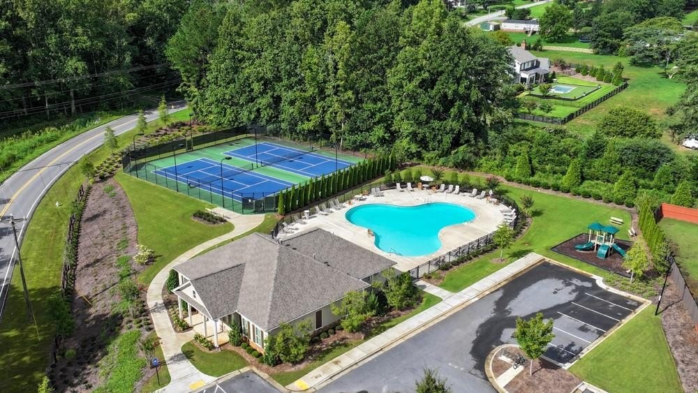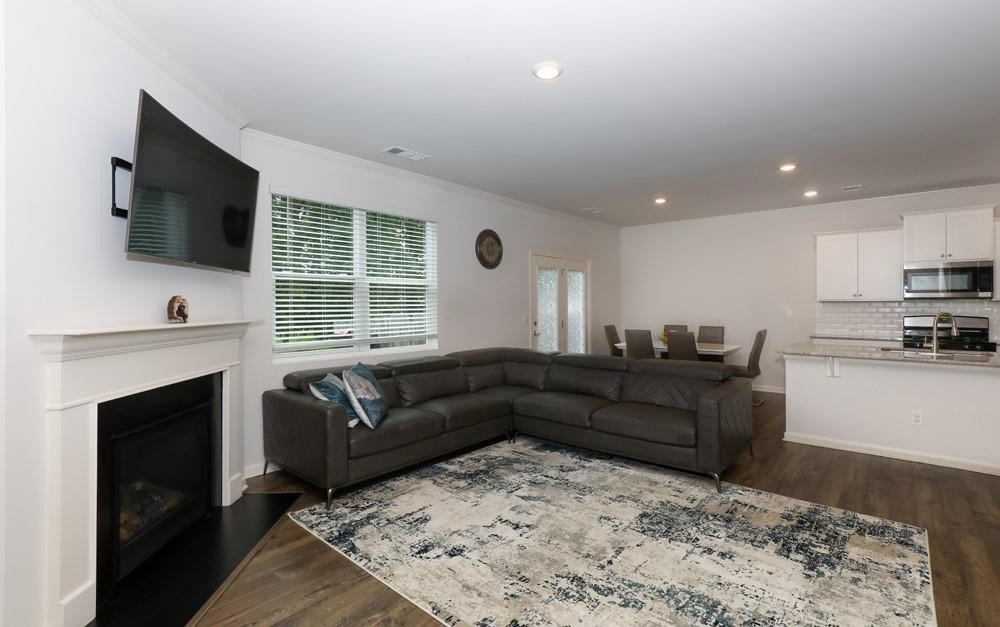 Welcome to this spacious home in a beautiful community with a pool, tennis courts, playground, and clubhouse! The main level offers a welcoming foyer, a flexible room for dining or an office, a modern kitchen with white cabinets, stainless steel appliances, and a large island, plus an open family room with a cozy fireplace. A bedroom with a full bath on the main floor is perfect for guests or multi-generational living. Upstairs you’ll find a large owner’s suite with a spa-like bath, three more bedrooms, a full bath, and a roomy loft for a media or play area. Outside, enjoy a private backyard ideal for kids, pets, or entertaining, along with a two-car garage and extended driveway for extra parking.