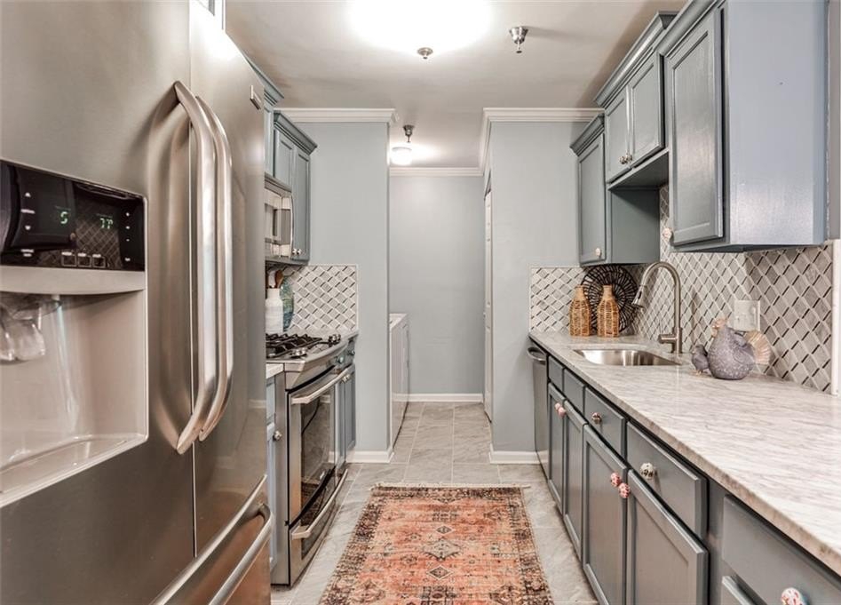 AFFORDABLE entry point into award-winning City Schools of Decatur school district! This must-see renovated end unit in a quiet, secure, and super friendly and close knit community in prime City of Decatur location is walkable to downtown Decatur and schools and is easily accessible to Emory University, CDC, and downtown Atlanta as well as to all major Atlanta highways, MARTA, and the airport. Featuring two true primary suites, separated by the living room and kitchen/dining, this is the ideal roommate setup. No expense was spared in this gorgeous two bed/two bath renovation that features marble countertops in kitchen, beautiful designer tile backsplash, new stainless appliances, marble countertops in both bathrooms, and updated lighting. Fridge, washer/dryer all convey with sale. Gas burning fireplace keeps it cozy in the spacious living room that is open to the kitchen breakfast bar and dining room. In unit full size laundry, pantry, abundant closet storage. HOA fees cover internet and cable tv! Best location at the quiet side of the complex, nestled in the mature trees, so utility costs are minimal. The private balcony off the living room is a peaceful place to enjoy the sounds of nature. All this plus assigned secure garage parking, storage unit, community room with kitchen, garden paths, and a lovely private pool set amidst beautiful landscaped grounds.