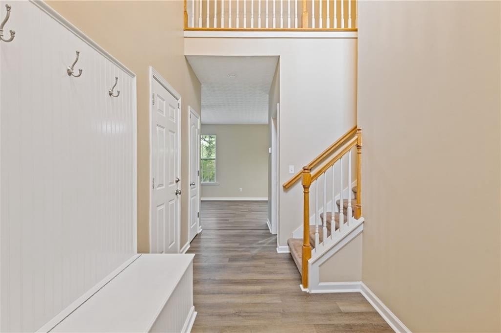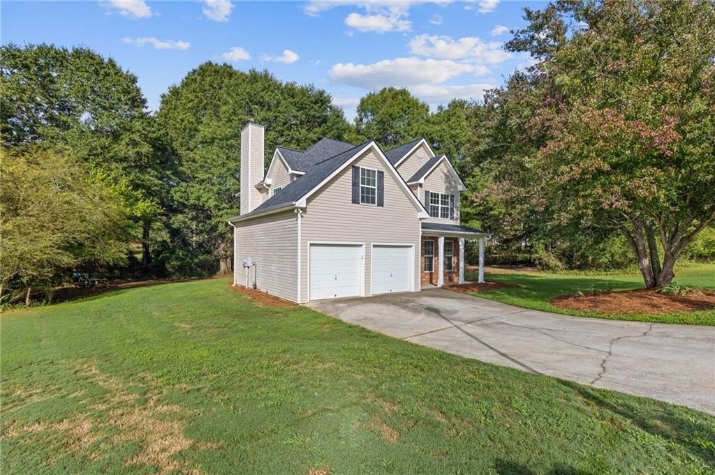 Nestled on a generous 0.69-acre lot (extremely private being the first home in the neighborhood and surrounded by trees) in Monroe, this 2006-built two-story home blends curb appeal with modern updates. The exterior showcases vinyl siding, a welcoming covered front porch, and a new roof installed in June of 2025, while a charming front yard and mature trees create a serene setting. Inside, a two-story foyer opens to freshly painted walls and durable LVP flooring (BRAND NEW) that flows through the main level. The flexible office space tucked around the corner from the kitchen offers a convenient work-from-home option without sacrificing a dedicated bedroom. Truly you can use this space for anything! An open-concept dining and living area centers around a cozy fireplace, framed by large windows that fill the space with natural light and wooded views. The kitchen features warm wood cabinetry, solid-surface counters, a central island, and a suite of black appliances for a cohesive look. Upstairs, the primary bedroom is a true retreat with a tray ceiling, adjoining sitting area, expansive walk-in closet, and en-suite bath with dual vanities, soaking tub, and separate shower. Two additional bedrooms share a full bath, and all baths feature neutral tile and updated fixtures. The home’s mechanicals have been thoughtfully maintained, with a new HVAC system and water heater installed in November of 2024 for added peace of mind. Outside, enjoy a sprawling backyard perfect for gardening or play, as well as a sizable outbuilding that provides ample storage for tools and equipment. The attached two-car garage includes built-in shelving and room for extra storage. Located just minutes from downtown Monroe, schools, and shopping, this move-in-ready property delivers space, comfort, and updates in a tranquil setting.