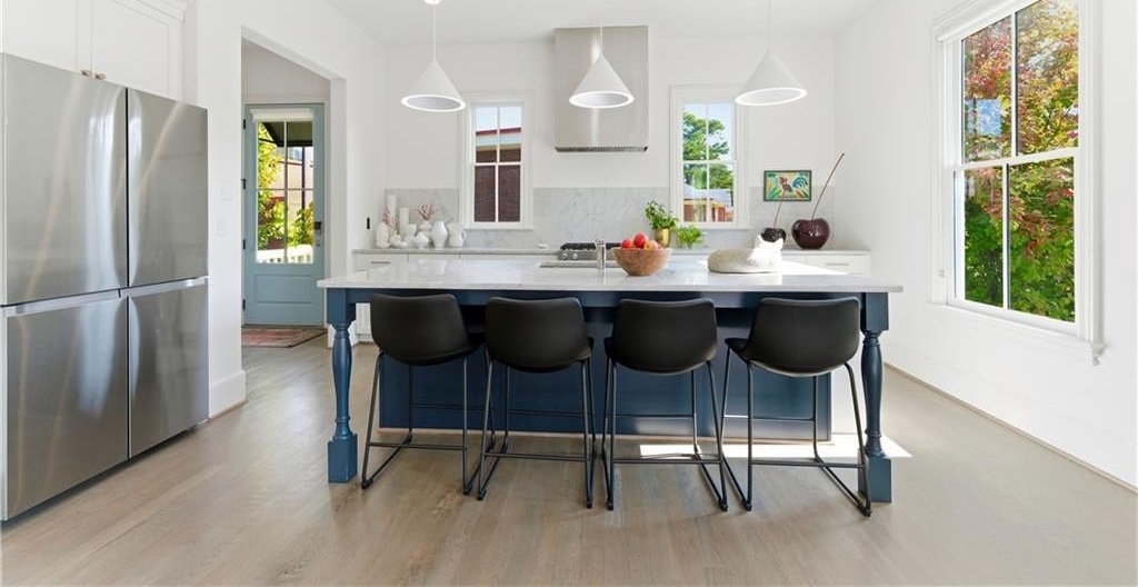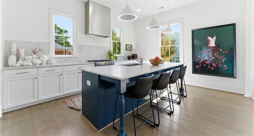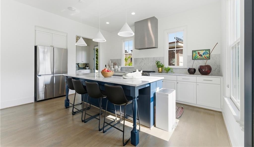 A luxury, custom-built Hedgewood home in one of the best intown locations in Atlanta. Situated on a coveted corner lot just steps from the community saltwater pool, this Manchester home lives beautifully inside and out. The charming courtyard entry sets the tone, and once inside, natural light pours in through floor-to-ceiling windows across the open main level. The sleek kitchen features an oversized marble island with breakfast bar seating, stainless appliances, beverage bar and mini fridge, and an enviable butler’s pantry with abundant storage. The kitchen flows seamlessly into the dining area and fireside great room — perfect for everyday living and entertaining. A stylish powder room completes the main level.