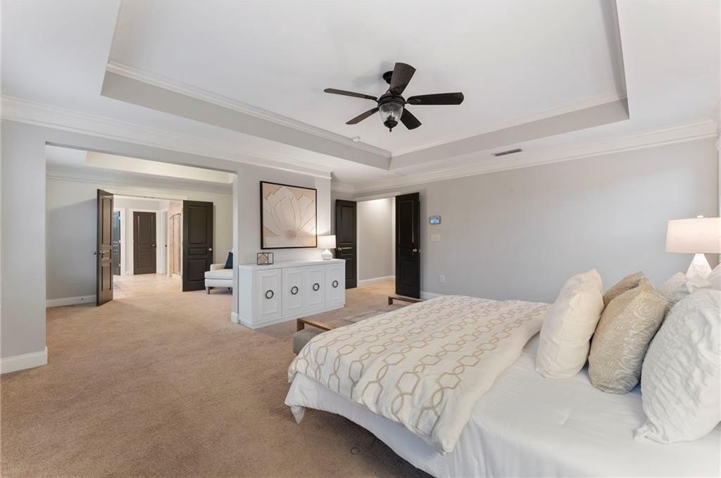 Welcome to this spacious home in popular Hampton Station — a friendly, active swim/tennis community in a super convenient Canton location with top-rated schools and easy access to shopping, dining, and more! The floor plan is both practical and inviting, featuring a bedroom and full bath on the main level, perfect for guests or a home office. Upstairs, you’ll find four more bedrooms and three full baths, including a huge primary suite with a cozy sitting area and two walk-in closets. The exterior has been freshly painted, and the brand-new roof means one less thing to worry about! Inside, the covered front porch opens to a welcoming foyer that flows into a large dining room with wainscoting and a fireside great room — ideal for relaxing or entertaining. The open-concept kitchen is the heart of the home, featuring granite countertops, stainless steel appliances, a gas range, walk-in pantry, and a big island for casual seating. A bright breakfast area overlooks the fenced backyard with easy walk-out access — great for pets or playtime. Upstairs, a loft area makes a perfect hangout or study space. The primary suite is generously sized, with a sitting room, dual closets, and a spa-like bath. One of the secondary bedrooms has its own ensuite, while the other two share a full bath. The laundry room is conveniently located upstairs — even accessible through one of the primary closets for extra ease.