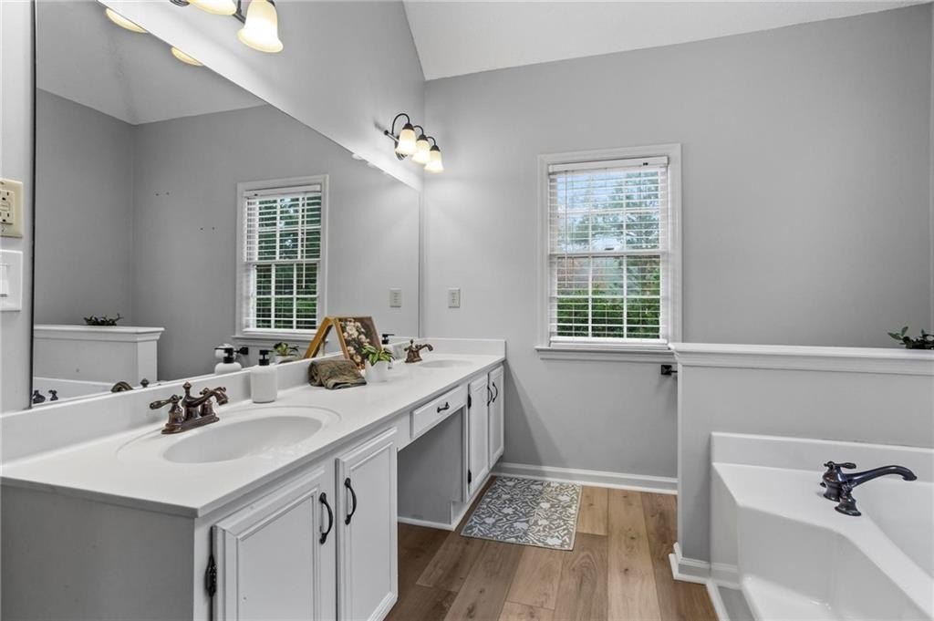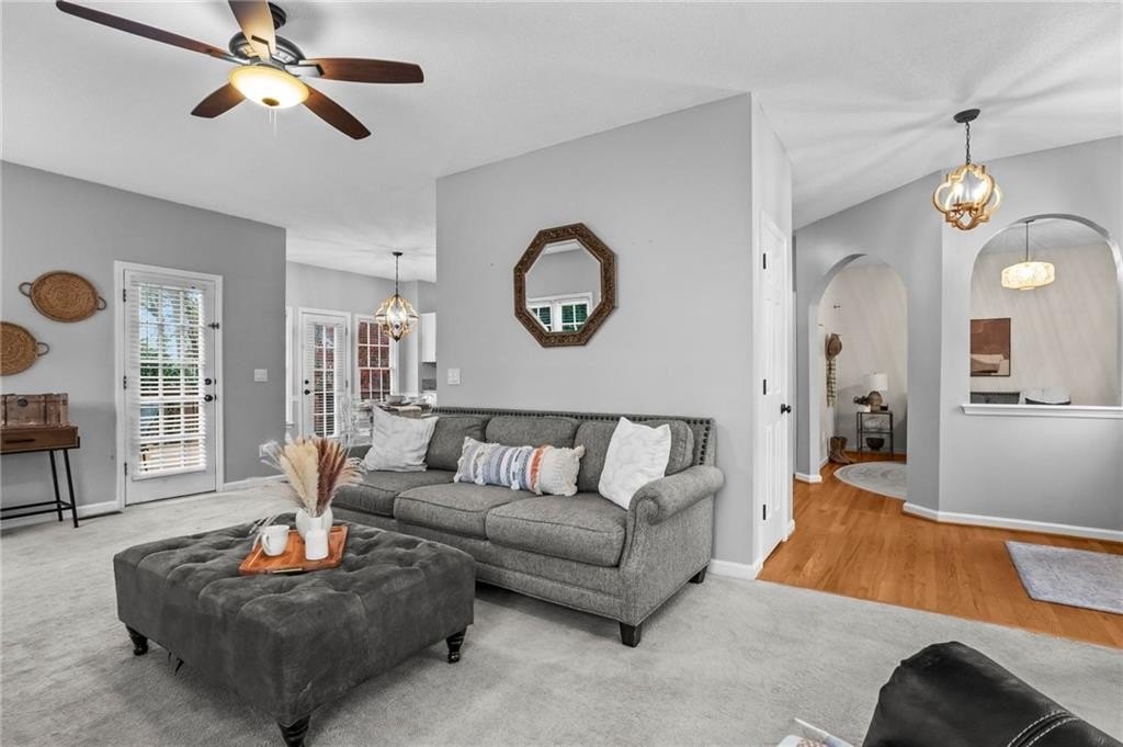 Move-in ready and full of charm, 907 Feather Creek Lane is the home you’ve been waiting for in the highly sought-after Eagle Watch community of Towne Lake—known for its active lifestyle, incredible events, top-tier amenities, golf club, and award-winning schools. This beautifully maintained 4-bedroom, 2.5-bathroom home offers the perfect blend of comfort, space, and everyday convenience. From the moment you arrive, the curb appeal, manicured landscaping, and private lot make a lasting impression. Step inside to a bright and airy main level where abundant natural light and neutral paint tones create a warm, inviting atmosphere. The open-concept layout features a spacious family room and kitchen, both with direct access to the rear deck—ideal for indoor-outdoor living. A separate flex room makes the perfect office, playroom, or additional living space, and an updated half bath completes the main floor. Upstairs, the spacious primary suite offers an en-suite bathroom with a double vanity & separate shower/tub as well as a large walk-in closet. You'll also find two additional bedrooms, a second full bathroom, and a conveniently located laundry closet on the upper level. The lower level includes the home’s fourth bedroom with both interior and exterior access—an excellent option for guests, a teen suite, or a private office—as well as a two-car garage with a dedicated workshop or storage room. Out back, enjoy a large deck spanning the width of the home overlooking a private, tree-lined yard complete with a cozy fire pit, perfect for relaxing evenings or entertaining friends. This is an incredible opportunity to own a truly move-in ready home in one of Woodstock’s most beloved and amenity-rich communities. Don’t miss your chance to make 907 Feather Creek Lane your new home!