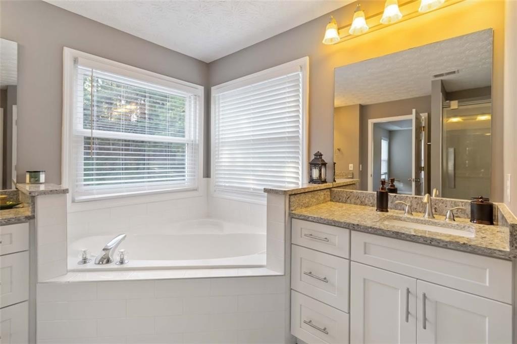 This stunning home in a Swim/Tennis community and is located in between Buford, Sugarhill and Suwanee. Close to many lake Lanier and Sims lake, downtown Suwannee/Sugarhill/Buford, trails/greenways, shopping and 7 minute drive to 85 and 985. Whole house was renovated in 2021 - NEW ROOF, NEW HVAC, Double pane windows, kitchen cabinets/counters/appliances, flooring, vanities. Roof was replaced with 30 year architectural shingles. You’re welcomed with a large driveway, open concept living room and kitchen. Gas stove and stainless steel appliances with laundry room and guest bathroom downstairs. Upstairs features 3 spacious bedrooms and upgraded master bathroom and walk in closet. Also a jack and Jill bathroom, great for families with kids. HUGE leveled backyard. Additional info: Multiple hoa hosted events and parties. Neighborhood includes pool with 1 foot kid zone including mushroom water fountain, basketball court, gated pavilion area, pickleball courts, tennis courts, and dog park. Quick drive to Lake Lanier with access to the beach, and multiple hiking trails around Buford Dam. Access to Sugar Hill Greenway just outside the neighborhood connecting to downtown Sugar Hill and surrounding greenways Less than 5 minutes away is Downtown Sugar Hill which has dining, shopping, and an outdoor amphitheater for concerts and events including ice skating in the winter! Multiple county parks including Sims Lake Park, E.E. Robinson, Settles Bridge, George Pierce and more! Short drive to downtown Suwanee includes access to the Suwanee park area as well as numerous events throughout the year hosted by the City of Suwanee Short drive to downtown Buford that host yearly free concerts and events