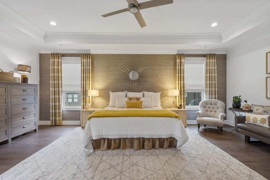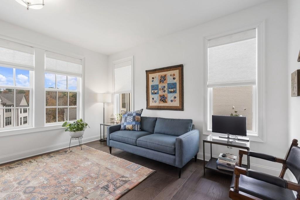 Elegant, designer end unit townhome in desirable Aria in the heart of Sandy Springs - the #1 best place to live by Georgia Trend Magazine in 2024. Discover upscale living in this sought after community with nature trails and pristine grounds just minutes to all Sandy Springs has to offer. This home has a great layout perfect for entertaining and everyday living. Endless windows flood the iving spaces with natural light, highlighting the gorgeous hardwoods throughout and the custom finishes in every corner. The chef's kitchen with gas stove, huge island, and double oven is open to living space and perfect for having friends and family join you for a meal. Retreat to the luxurious primary suite with soaking tub, separate vanities, and a walk in closet custom designed by California Closets. Flow through this townhome with ease by elevator and relax in the warm and inviting fireside family room open to a serene deck perfect for your morning coffee or soaking in the sun. In the secondary bedroom upstairs, you'll see the incredible views of the treetops that make this community so special. You'll feel like you're in a treehouse! Step outside the front door to endless greenspace and sidewalks which lead you to the charming clubhouse and two pools. You'll want to linger here a little longer in the warm weather. With a gym, meeting space, steps from restaurants and prime shopping, you truly cannot get much better! This home shows like a magazine - don't miss it!
