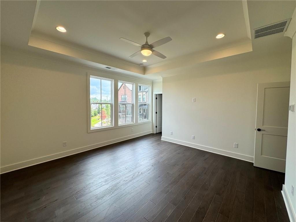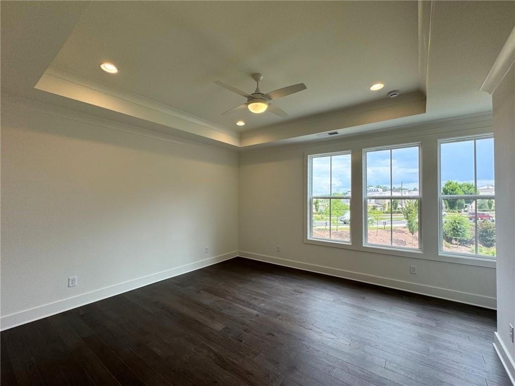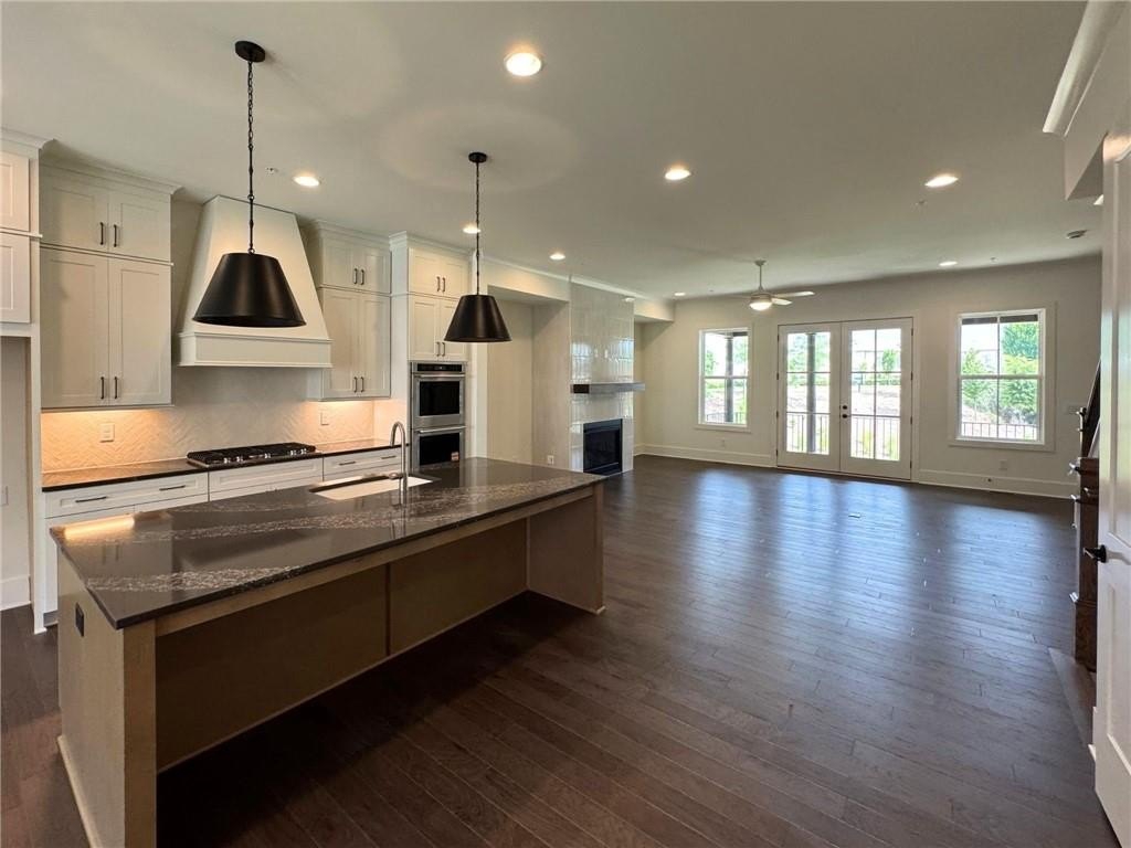 Luxury is in every detail with Empire’s community located in one of downtown Alpharetta’s most prestigious addresses. Just steps from Avalon and a quick walk from the heart of downtown, in connection with the Alpha Loop, Empire Chiswick’s four districts impart an old-world feel and reflect a regal period of classic brick architecture. With shops, restaurants, and entertainment options all at your door, Chiswick is the sweet spot between historic charm and modern living, appealing to everyone no matter what stage of life they’re in. Much like the London district it’s inspired and named after, here is where the tranquility of the suburbs meets the energy of Atlanta’s urban core. Revel in semi-private courtyards and formal gardens when you own one of these 43 luxurious English-style 3- and 4-bedroom townhomes. The Harleigh plan features amazing details with an abundance of space. This ELEVATOR READY home opens its doors for so much creativity! The first floor features a bedroom perfect for an office or in-law suite with a full bath. The main floor features a spacious family room with fireplace opening out to your 2nd floor covered porch overlooking the city lights of Avalon, an oversized island large enough to serve as a buffet, a chef’s kitchen with high end stainless steel appliances, 42” stained/painted cabinets featuring soft close doors/drawers, walk in pantry that’s alongside the butler’s pantry, the dining room is perfect for your oversized dining table, and a tech area perfect for your drop off station. The 3rd floor features a generous Primary Suite with a large walk in custom designed closet, a spacious bathroom with luxury tiles, large walk in shower with bench and a lavish soaking tub. There is a laundry room and 2 secondary bedrooms that share a full bath. READY NOW!