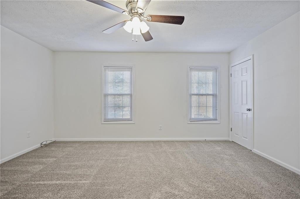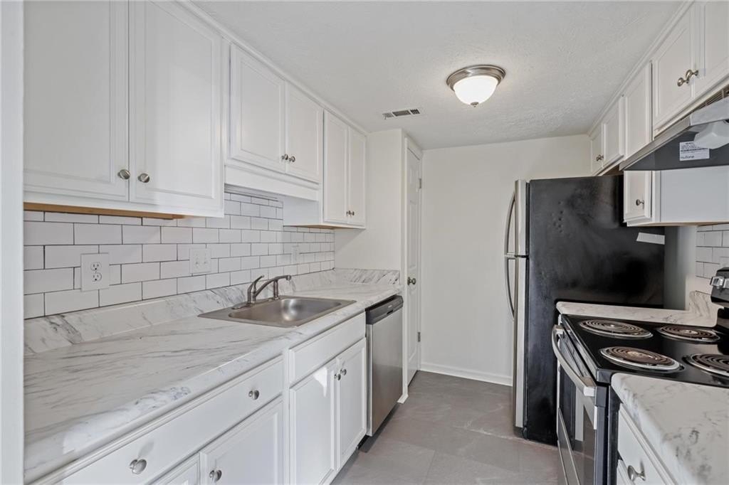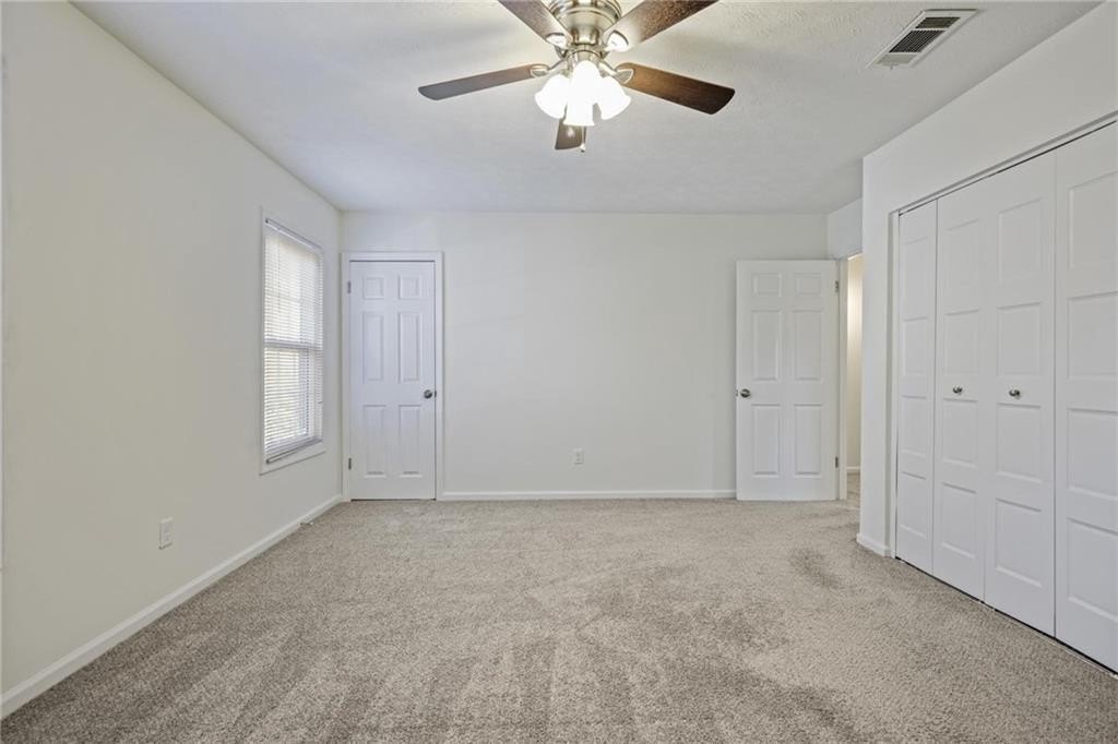 This freshly painted spacious end unit was updated in 2018. The main floor consists of a white galley-style kitchen, living room open to a dining room, half bathroom, and laundry room. Second floor consists of the Primary Bedroom with two closets, guest bedroom, and full bathroom. Outside there is a large, fenced backyard, spacious patio and utility room. There are two dedicated parking spaces in front of the townhouse. Amenities include swimming pool, tennis court and club house. Great Marietta city location - close to area shopping and restaurants! New windows installed in 2014.
