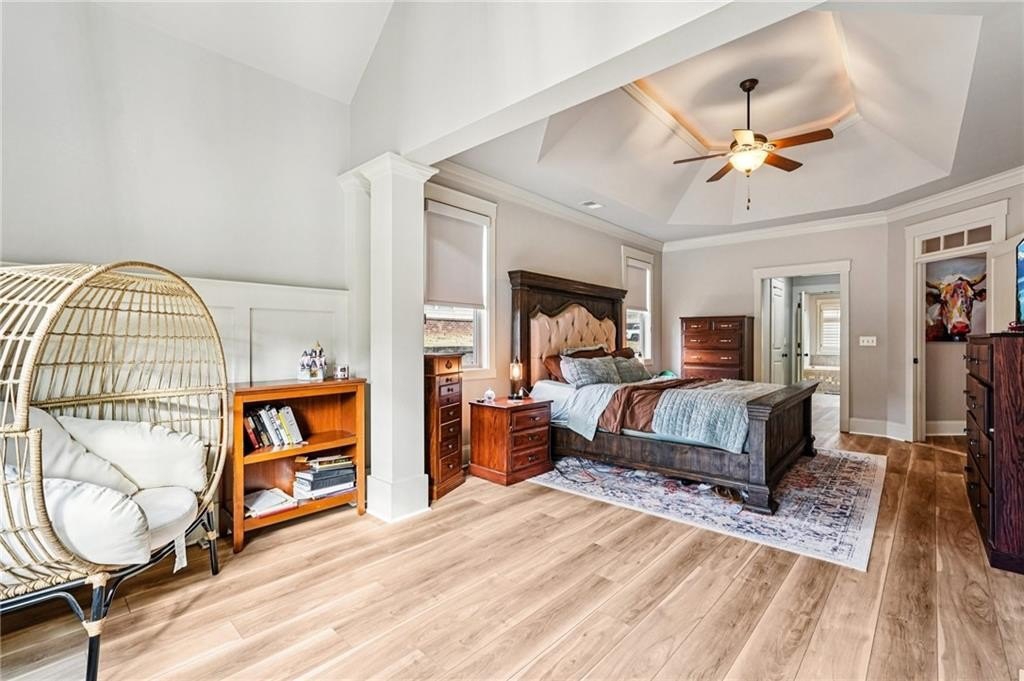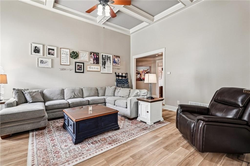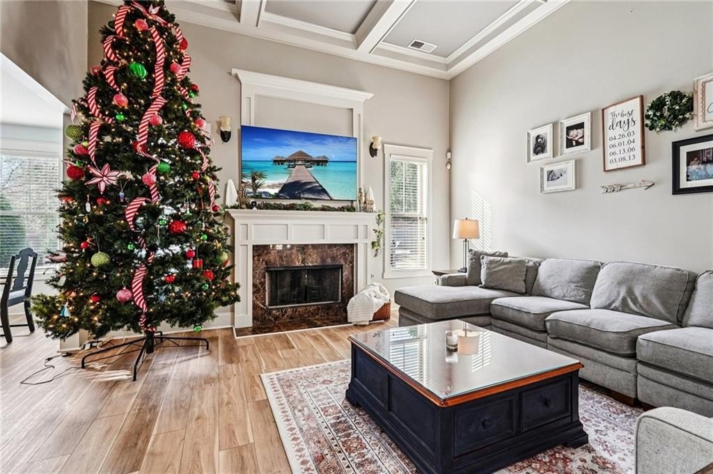 Discover this exceptional two-level residence in Harrison High School District, offering 4 bedrooms, 3 full baths, and a 3-car side-entry garage. The home features a chef’s kitchen with granite countertops, stainless appliances, and double ovens, seamlessly connecting to an oversized Great Room enhanced by coffered ceilings and a wood-burning fireplace. The main-level Primary Suite provides a private sitting room and an updated spa-inspired bath. Upstairs, two generous bedrooms share a Jack-and-Jill bath, complemented by a versatile bonus room or loft.
