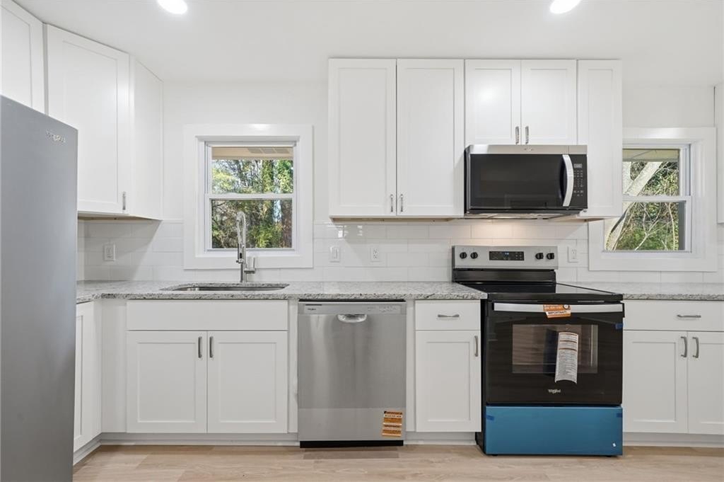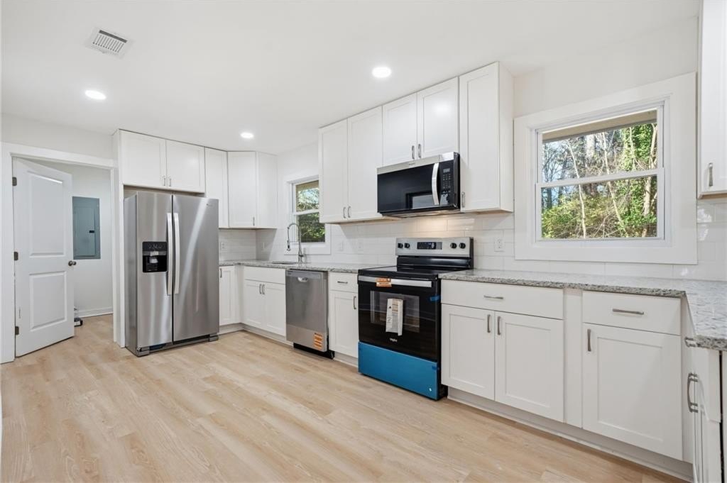 Fully renovated and truly move-in ready, this gorgeous 3 bed, 2 bath step-less ranch offers modern style in an unbeatable location. Less than 10 minutes to East Atlanta Village and under 15 minutes to Mercedes-Benz Stadium and Downtown Atlanta, this home delivers the best of intown living with the privacy of a quiet cul-de-sac. Inside, you’ll find a bright, open layout with all-new flooring, fixtures, and finishes. The kitchen features updated cabinetry and sleek countertops that flow seamlessly into the main living space—perfect for entertaining. The luxurious primary suite includes a beautifully finished master bath with elevated tile and modern features. This home sits on a private lot at the end of a cul-de-sac, offering peace, space, and flexibility—plus no rental restrictions, making it ideal for investors or homeowners who want options. All major systems were replaced in 2025, giving you peace of mind for years to come. With its modern renovation and exceptional proximity to Atlanta’s best dining, entertainment, and travel routes, this home truly has it all.