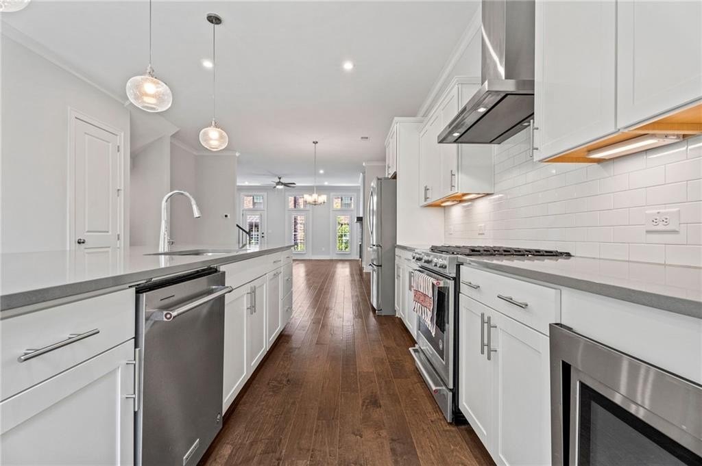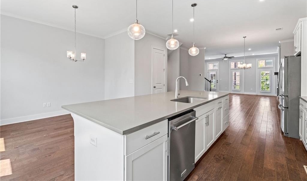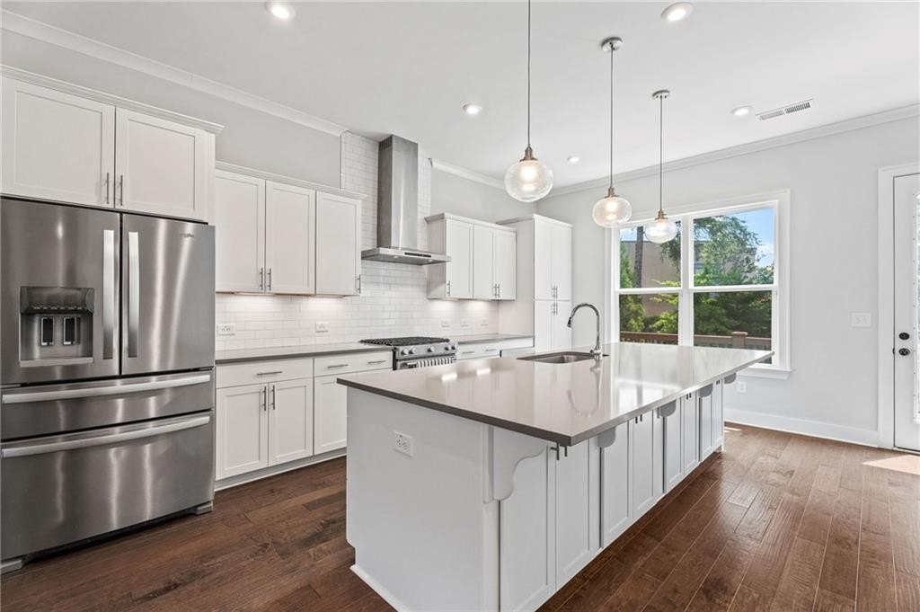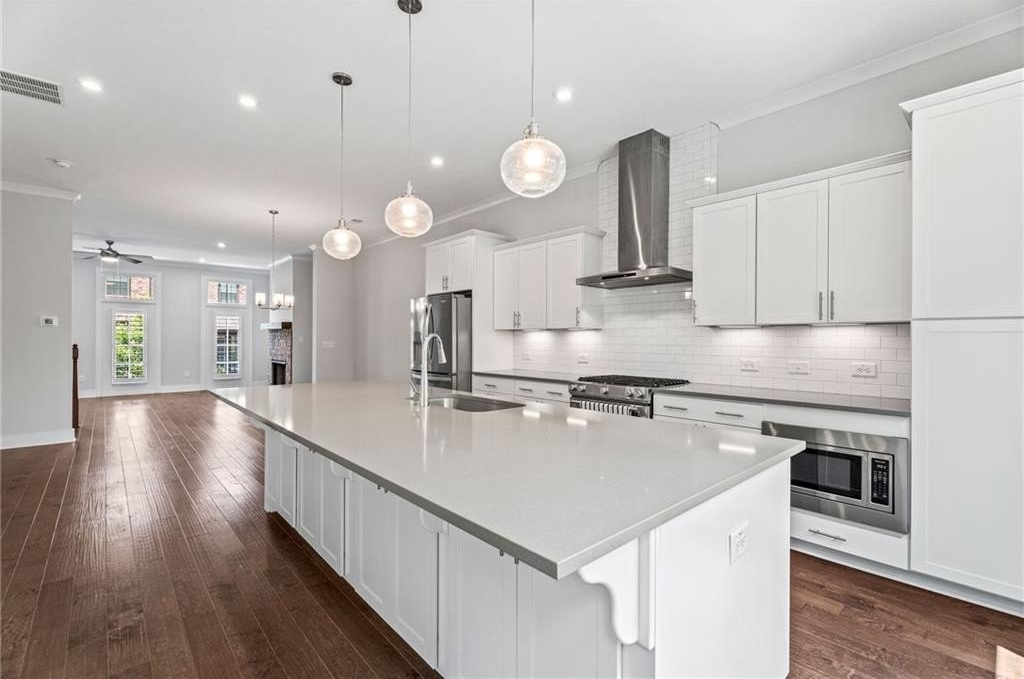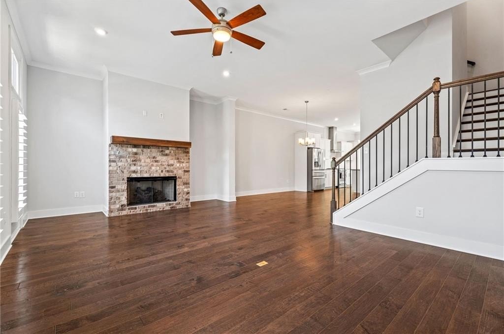 Step into this beautifully appointed, newer-construction townhome that blends refined living with timeless design. Thoughtfully crafted, this home features hardwood floors throughout, an upgraded appliance package, custom closets, plantation shutters, and the convenience of an included refrigerator and washer/dryer, making it truly move-in ready. Enjoy a low-maintenance, lock-and-go lifestyle within an open, sunlit floor plan highlighted by soaring 10' ceilings and seamless flow between the living, kitchen, and dining areas. The main level offers two spacious decks overlooking the courtyard, perfect for morning coffee or breezy afternoons. The inviting gathering room centers around a striking fireplace with clear views into the chef’s kitchen, where abundant cabinetry and an oversized island create the ideal space for cooking and entertaining. A finished terrace level features a private en-suite bedroom, perfect for guests, extended family, or a quiet home office. Every detail has been curated for comfort, functionality, and style. Ideally located just minutes from Whole Foods, premier shopping, acclaimed local dining, and zoned for top-rated Walton High School. Commuters will love the easy access to Atlanta, Sandy Springs, Downtown Roswell, Marietta Square, I-285, I-75, and GA-400, only 20 miles from the heart of the city.
