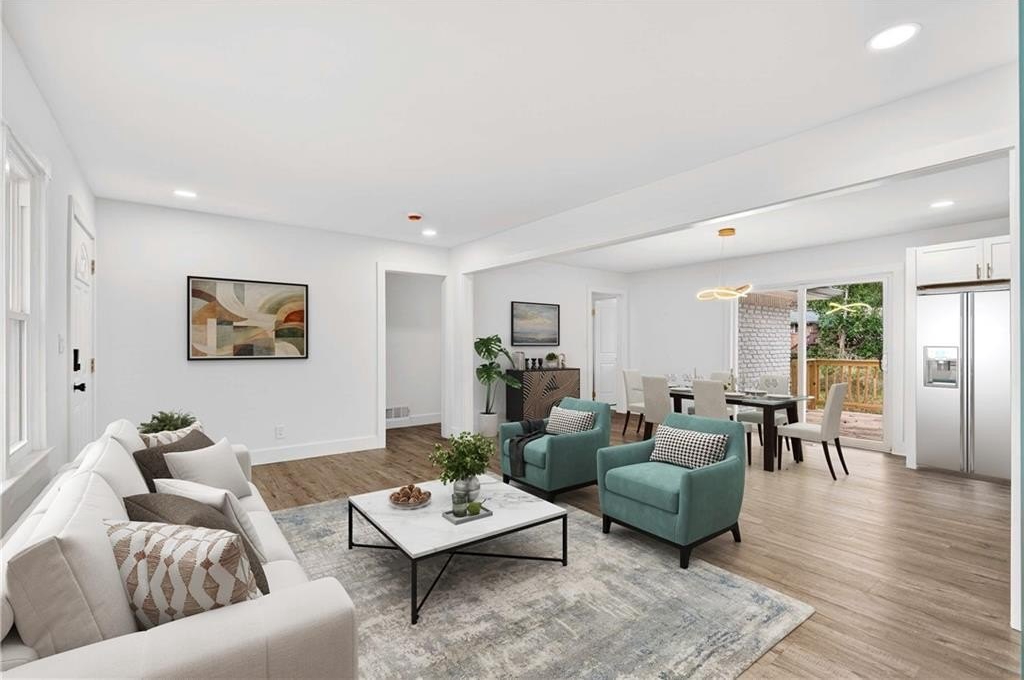 Experience a fully renovated modern home in Decatur featuring brand-new flooring, plumbing, electrical upgrades, double-pane windows, guttersband, and baseboards. Enjoy a brand-new kitchen with updated cabinetry, wiring, appliances, and recessed lighting, plus fully renovated bathrooms with contemporary finishes. Additional upgrades include new insulation in updated walls and crawl-space ducts, along with added recessed lighting throughout. A stylish, turnkey home with high-quality enhancements in every room.