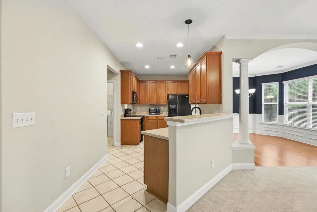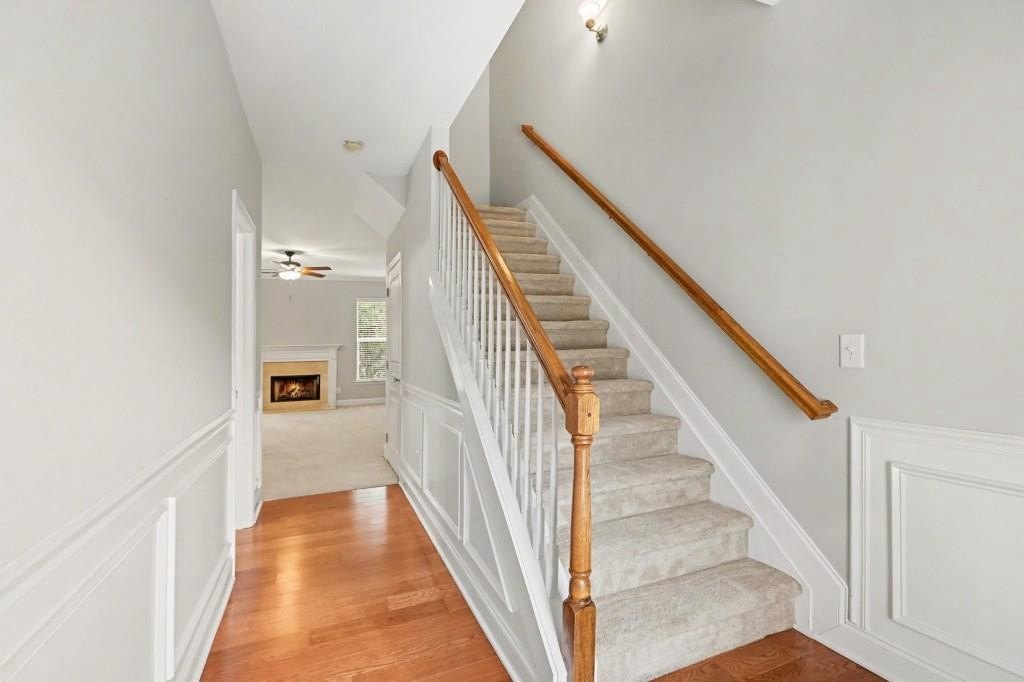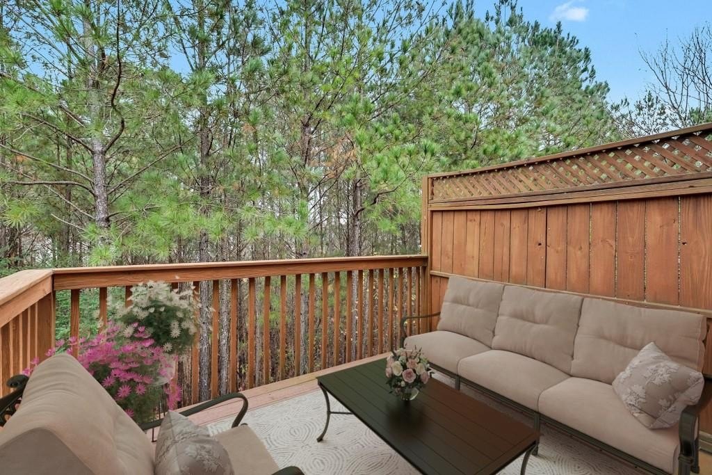 Beautiful End-Unit Townhome in an unbeatable Woodstock location! Just minutes from Downtown Woodstock, the Outlet Shoppes, everyday Shopping, Restaurants, and Costco, with quick access to I-575 and the Peach Pass entrance at Sixes Road. Outdoor enthusiasts will love being close to Blankets Creek and Rope Mill Park, home to some of the area's top-rated Hiking and Biking Trails. Located in a quiet, well-kept community featuring a Pool House, Pool, and Playground, this home offers comfort, convenience, and a large Unfinished Basement just awaiting your final touches. Step inside to a welcoming Foyer Entrance that leads into an Open Main Living Area filled with natural light. The Fireside Family Room flows seamlessly into the Kitchen, complete with a Breakfast Bar and ample Cabinet and Counter Space. A Separate Dining Room with a charming Bay Window and classic Wainscoting is perfect for everyday meals or hosting guests. A Half Bathroom and Laundry Room on the main level add ideal convenience. Upstairs, the oversized Primary Bedroom features a Walk-In Closet and a Private Ensuite Bathroom with Dual Sinks, a Soaking Tub, and a Separate Shower. Two additional Bedrooms share a Full Hall Bathroom, offering great flexibility for guests or family members. The Large Unfinished Basement is a rare find ready to be finished to meet your specific needs or used as incredible Storage Space. Additionally, a New Roof offers peace of mind for years to come. Outside, enjoy a Private Rear Deck and Patio with peaceful wooded views and no homes behind you. With major upgrades already complete and a fantastic location, spacious layout, and endless potential, this townhome truly checks all the boxes!