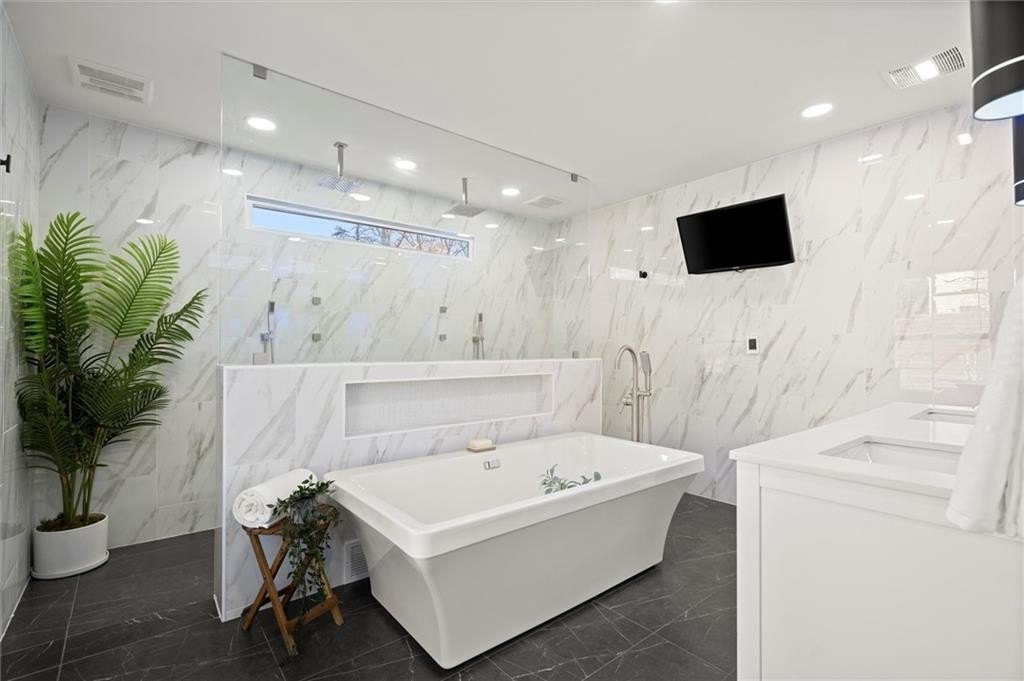 Experience modern luxury and comfort in this meticulously updated home. The gourmet kitchen is a chef's dream, featuring a10+ foot island, double oven, built-in wine cooler, and a hidden pantry. Step into the primary suite, a true retreat offering a spa-like experience with a HUGE walk-in double-sided shower and a large soaking tub, complemented by party LED lights for a customizable ambiance. Throughout the home, enjoy the year-round comfort of heated floors.