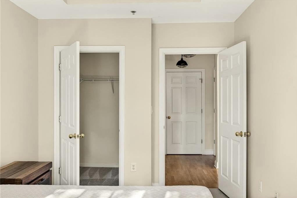 Beautifully updated condo with gorgeous city views where Buckhead meets Midtown. High ceilings and hardwood floors run throughout the formal dining room and fireside living room, which opens to a spacious balcony. The kitchen features painted cabinetry, granite counters, a breakfast area, and great storage. The primary suite includes an adjacent flex space perfect for home office, a large walk-in closet, and a spa bath with double vanities, separate tub, and shower. The second bedroom creates an ideal roommate layout. Large laundry room. Brookwood Place offers exceptional security and amenities including a 24/7 concierge, climate-controlled interior hallways, gated parking, fitness center, clubroom, movie theater, pool, grills, courtyard, and multiple dog runs. Two deeded parking spaces, ample covered guest parking, and HOA dues that include gas, cable, internet, and trash add convenience. All just minutes from Midtown, Buckhead, Piedmont Hospital, MARTA multiple restaurants, bars, entertainment.
