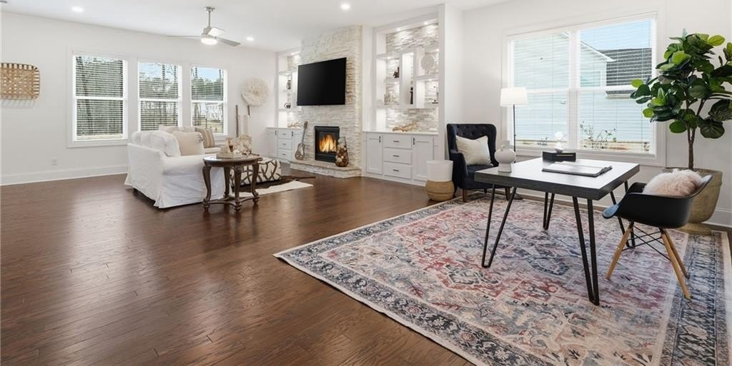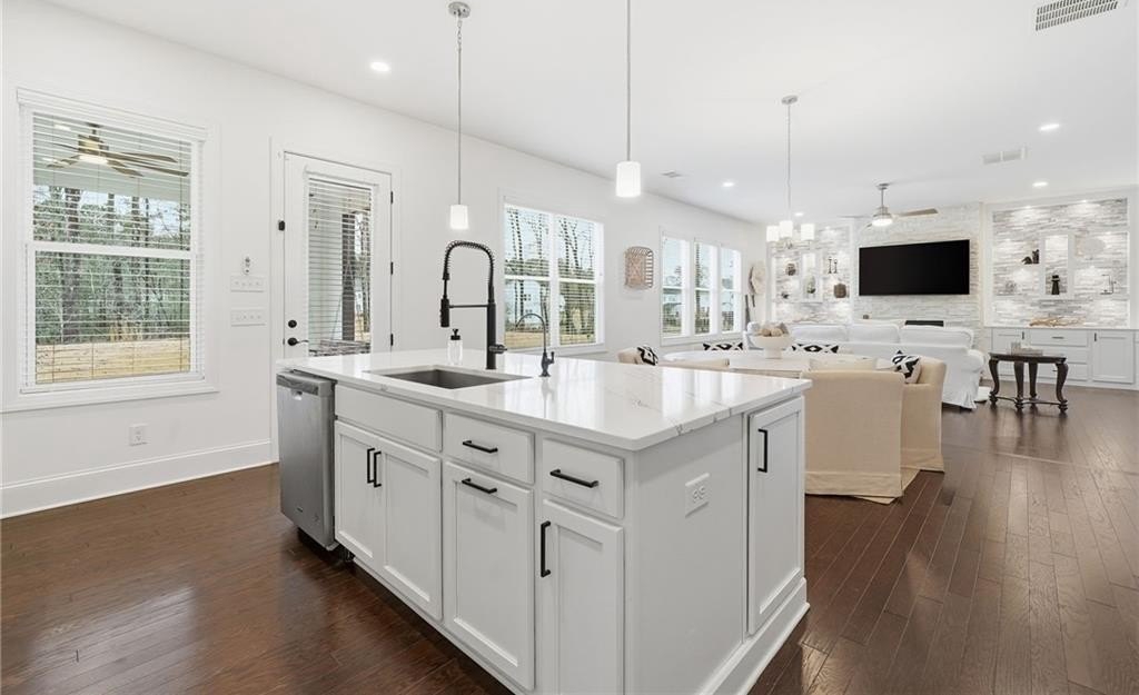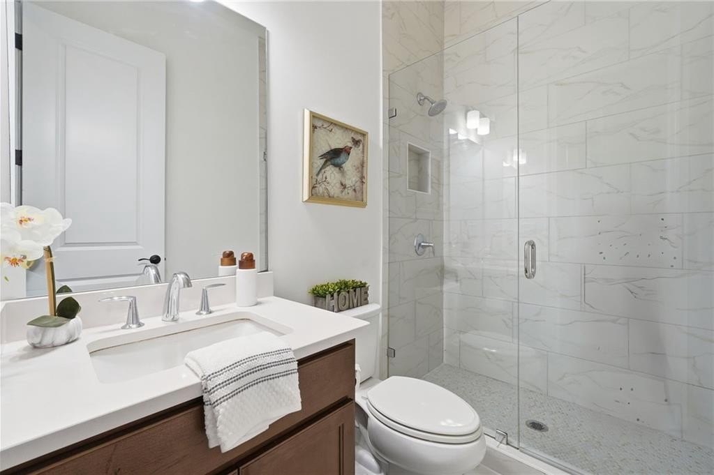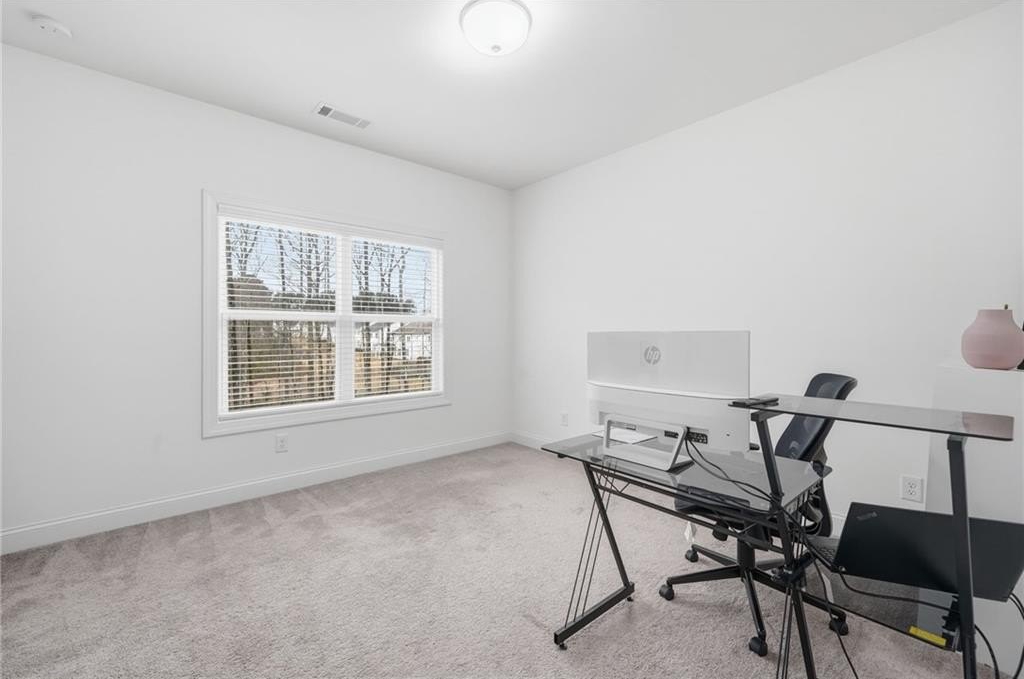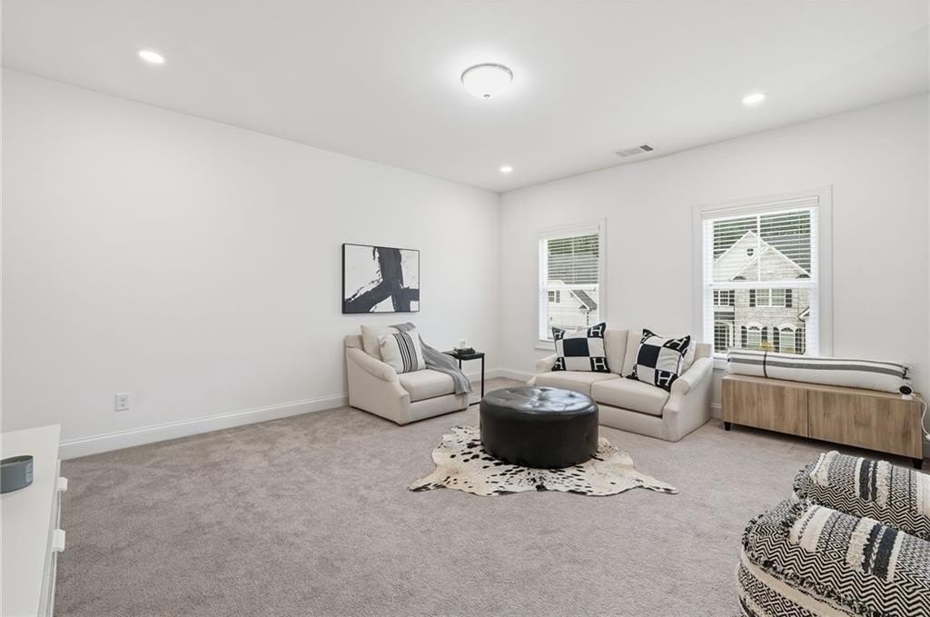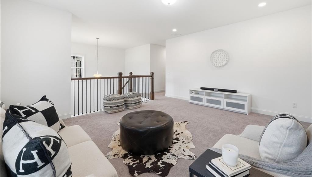 Step into an east-facing home on an oversized lot that feels like brand new, offering thoughtful design, modern convenience, and an inviting atmosphere throughout. From the welcoming covered front porch to the serene covered back patio perfect for morning coffee or evening relaxation, every corner reflects care and quality. The main floor features a versatile guest room for visitors, along with a spacious great room that flows effortlessly into a dining area with enough space for an office, creating an ideal setting for both everyday living and work-from-home comfort. The kitchen is perfect for families and those who love to entertain, showcasing thoughtful upgrades including a breakfast bar, a built-in coffee bar, and a large walk-in pantry for exceptional storage and prep space. Upstairs, a generous family or media room offers flexible living options, while the oversized master suite—brightened by plentiful natural light—creates a peaceful retreat. The master bath feels spa-like with its double vanity and a glass shower enhanced by a built-in bench and shelving. A convenient upper-floor laundry room simplifies daily routines. Throughout the home, numerous upgrades enhance both style and functionality, and modern features such as Ecobee thermostats that can be controlled remotely and a SimpliSafe security system with a camera offer added comfort and peace of mind. This community provides a vibrant lifestyle with access to a pool, tennis court, play area, and clubhouse, giving residents plenty of ways to unwind, stay active, and connect. Just minutes away, Lake Lanier offers weekends filled with boating, fishing, and lakeside relaxation, while the Big Creek Greenway provides scenic trails for walking, biking, and enjoying nature. The Cumming Fairgrounds brings year-round festivals, events, and local fun, adding to the lively surroundings. This home offers not just a beautifully upgraded living space but an exceptional way of life in one of Cumming’s most appealing areas.