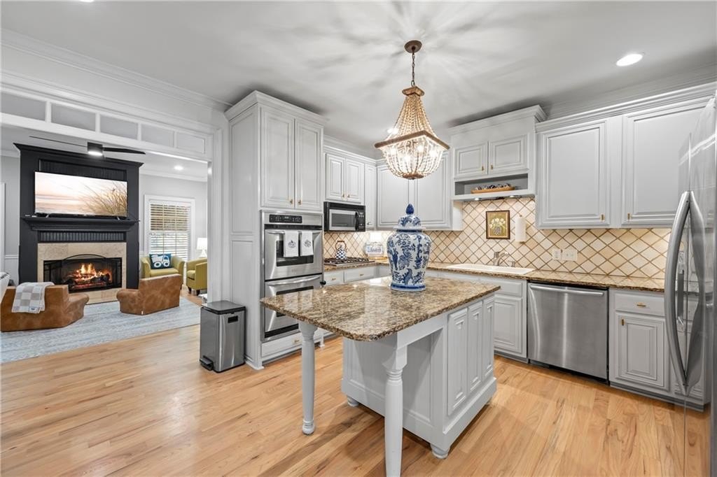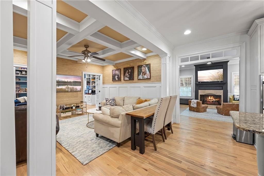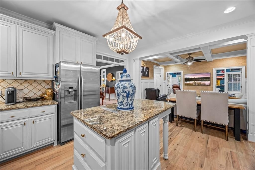 Discover timeless comfort at Chattahoochee Country Club. Located in one of Gainesville's most desirable neighborhoods, this beautifully maintained 4-bedroom, 3.5-bath home combines classic charm with thoughtful updates. From the moment you step inside, soaring beamed ceilings and rich hardwood floors create a warm, inviting atmosphere. The remodeled kitchen features granite countertops, stainless steel appliances, and a welcoming layout that makes cooking and entertaining easy. With two spacious primary suites-one on the main level and another upstairs-you'll enjoy flexible living options perfect for family or guests. Multiple gathering spaces, including two comfortable family rooms, offer plenty of room to relax or host friends. A versatile bonus room offers endless possibilities, serving as a home office, gym, or playroom tailored to your lifestyle. Seasonal glimpses of Lake Lanier and the convenience of being just minutes from Gainesville Square, where dining and shopping await, make this home the perfect blend of serenity, space, and sophistication, ready to welcome you home. Up to 1% of the loan amount in lender credits offered by preferred lender, Breanna Smith, Nexa Mortgage.