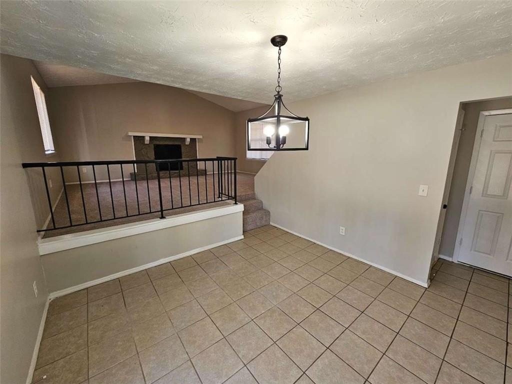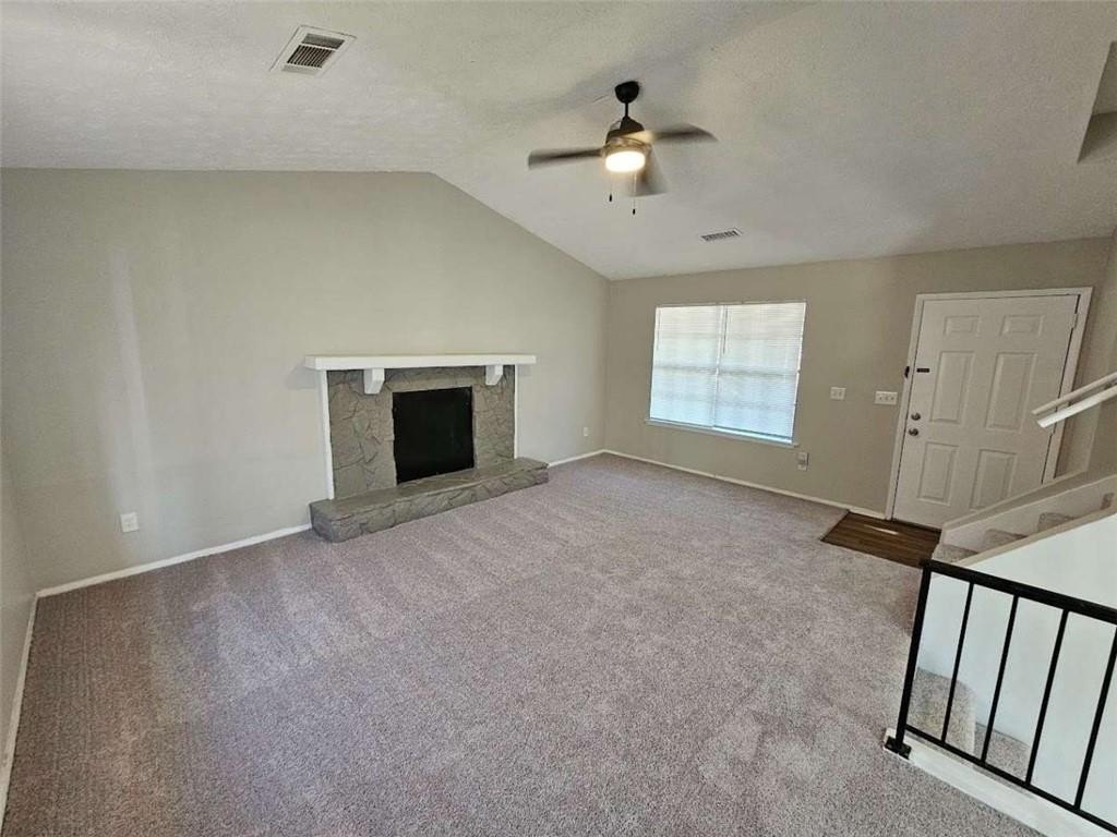 Welcome to this charming 2-story, 4-bedroom, 2-bath home in the peaceful, wooded community of Forest East Sub, a rare blend of rustic character and modern comfort. The exterior showcases a classic stone-and-wood facade, with a welcoming front porch and concrete driveway that lead you into a quiet, leafy neighborhood. Inside, the open-living room impresses with vaulted ceilings, soft carpeting and a cozy stone fireplace, perfect for relaxing evenings. The kitchen offers tile flooring, sleek cabinetry, and black appliances, and flows to a dining area ideal for everyday meals or entertaining. The primary bedroom serves as a serene retreat with its private ensuite bath, while three additional bedrooms provide flexible space for family, guests, or a home office. With 1,313 sq ft of thoughtfully designed living space and a .20-acre lot, this home combines comfort, functionality, and charm in a desirable Stone Mountain setting.