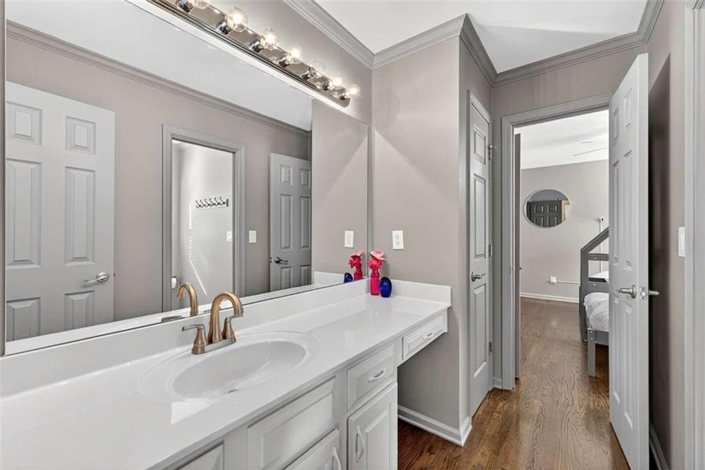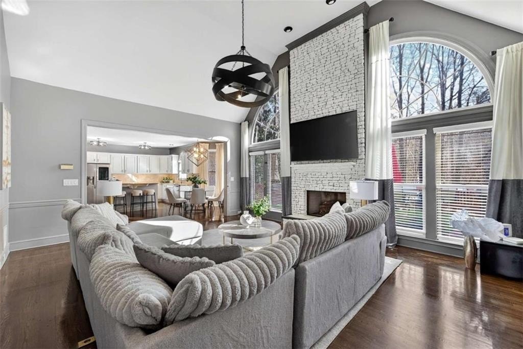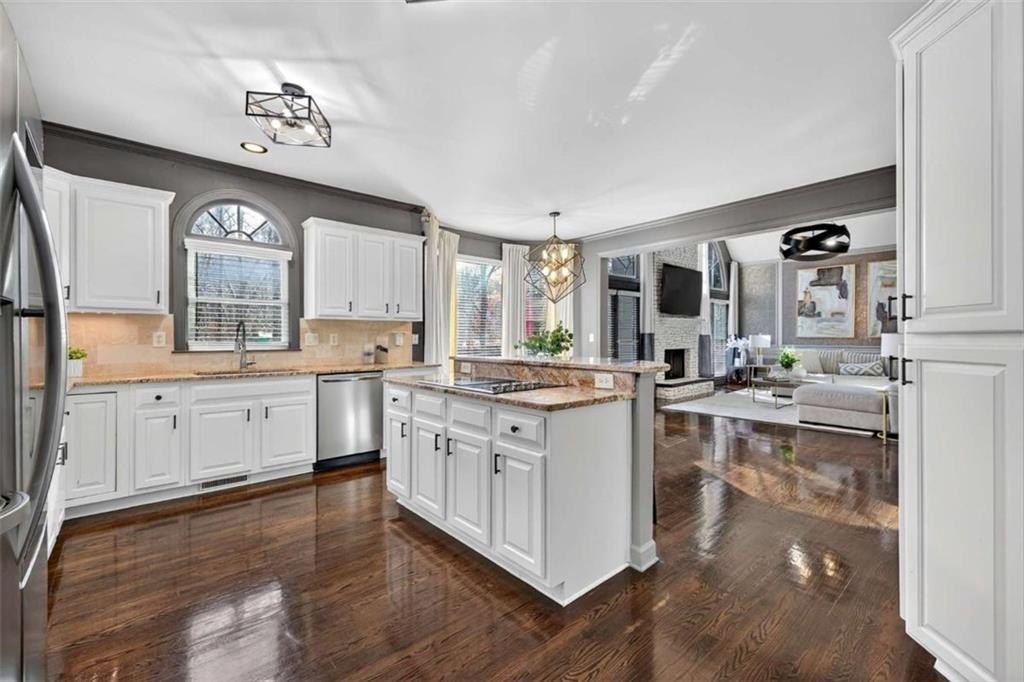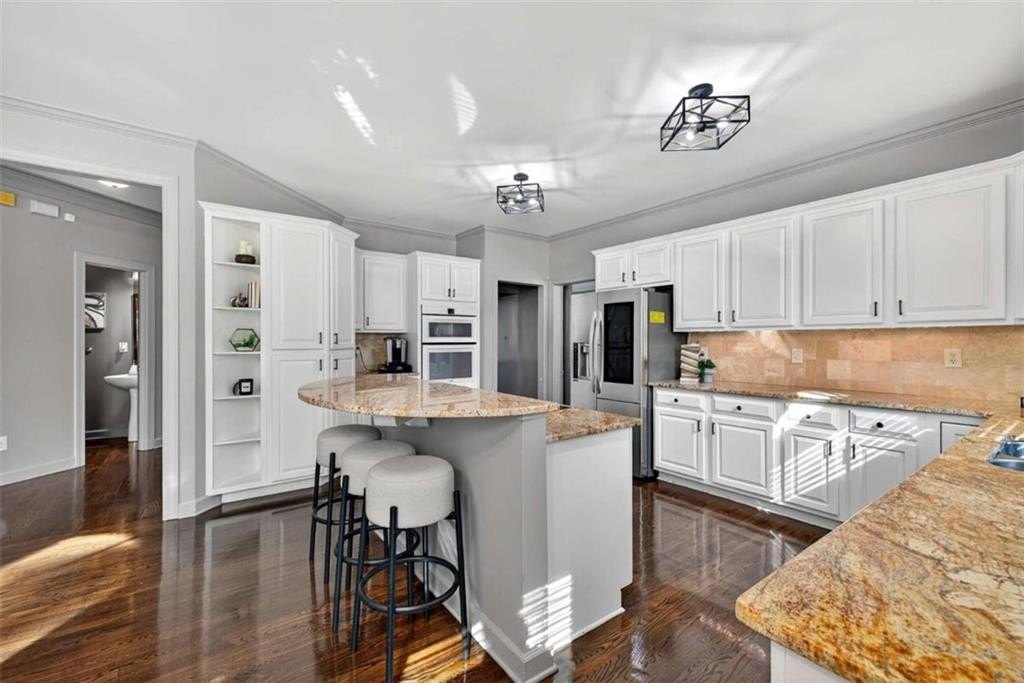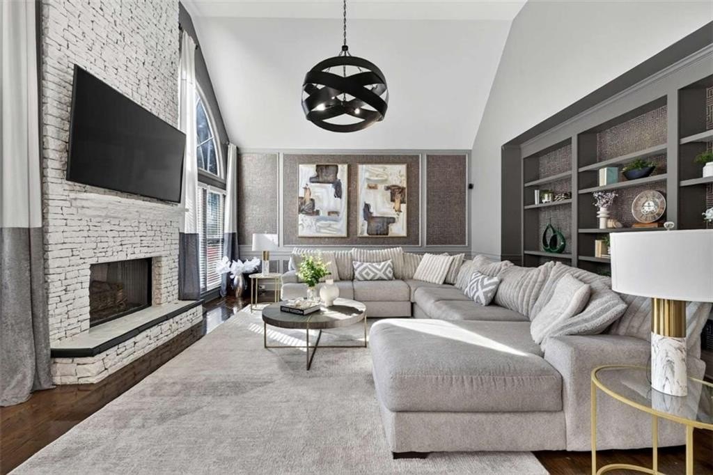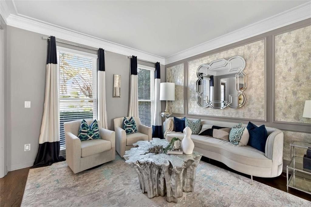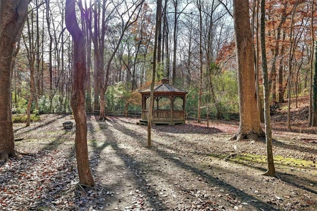 Stunning 5BR/5BA John Wieland executive home in Vinings Estates. This beautifully updated property sits on .9462 acres and features a certified Atlanta Audubon and National Wildlife Association yard with a waterfall, koi pond, natural creek, and gazebo. Exterior upgrades include a freshly painted exterior, brand-new garage doors, and a custom front door. Inside, enjoy a bright open layout with refurbished hardwood floors throughout the main and upper level, new windows and blinds, new crown molding, a custom upgraded stairwell, and built-in bookcases. The cook's kitchen features Typhoon Bordeaux granite, a center island, and opens to the great room with a stacked-stone fireplace. The spacious owner's suite includes a sitting area, three closets, and a luxurious en suite with an additional closet, jacuzzi tub, standalone shower, and dual sinks. The finished terrace level offers a living room, kitchenette/wet bar, and a room ideal for a home movie theater, perfect for an in-law suite, teen suite, or entertainer's paradise. Located in a prestigious community with three resort-style pools, tennis courts, clubhouse, and fitness center. Close to Truist Park, the Silver Comet Trail, shopping, and Atlanta Airport. Private showings by appointment only. PLEASE WEAR SHOE COVERS OR REMOVE YOUR SHOES.