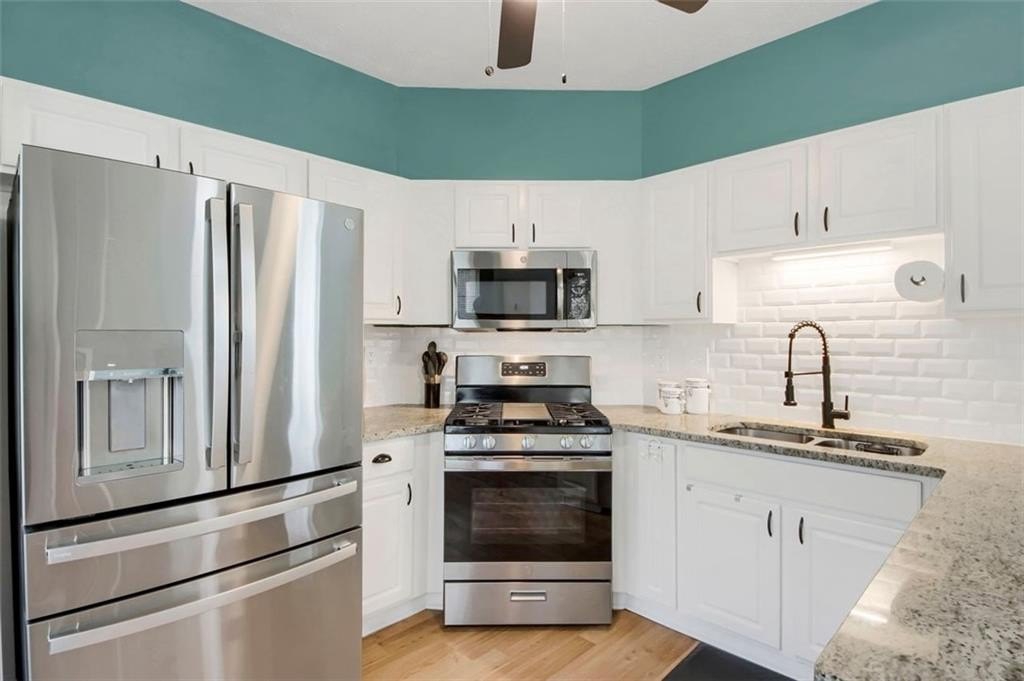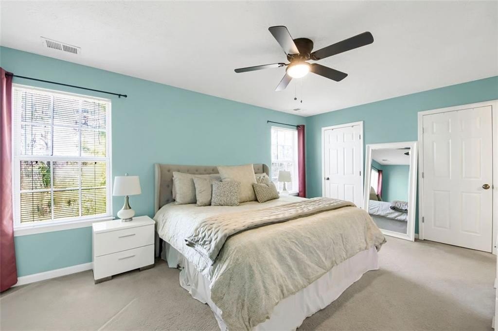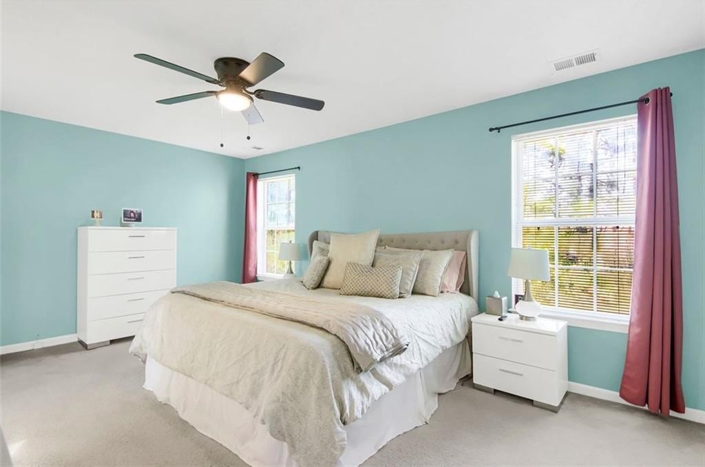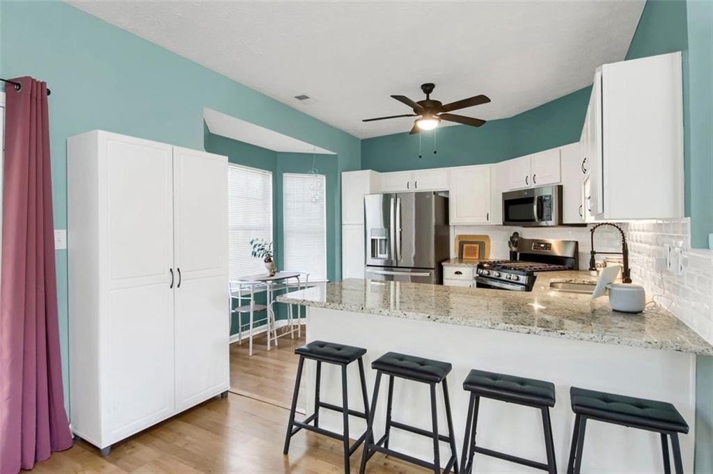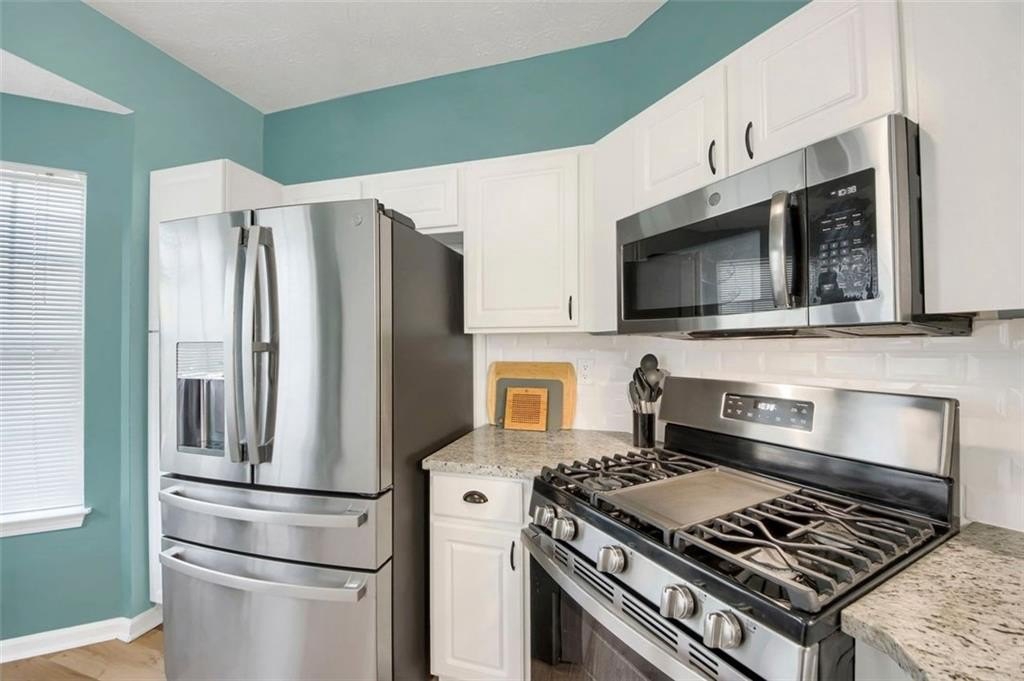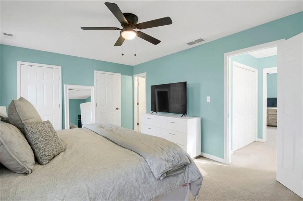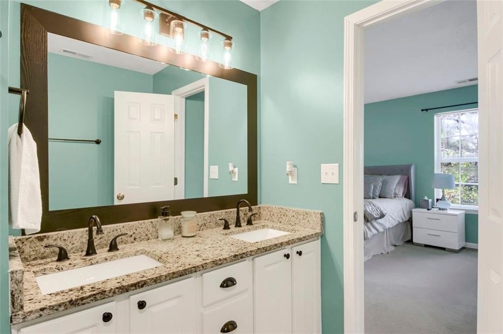 The water heater and HVAC are only 3 years old. Bright and airy, each of the THREE finished levels is filled with natural sunlight. The stylish kitchen features granite countertops, stainless steel appliances, a pantry, and a breakfast bar with seating for four—perfect for casual dining or entertaining. Upstairs, you’ll find the laundry room with extra storage and two oversized bedrooms, each with a private en-suite bathroom and spacious walk-in closets.