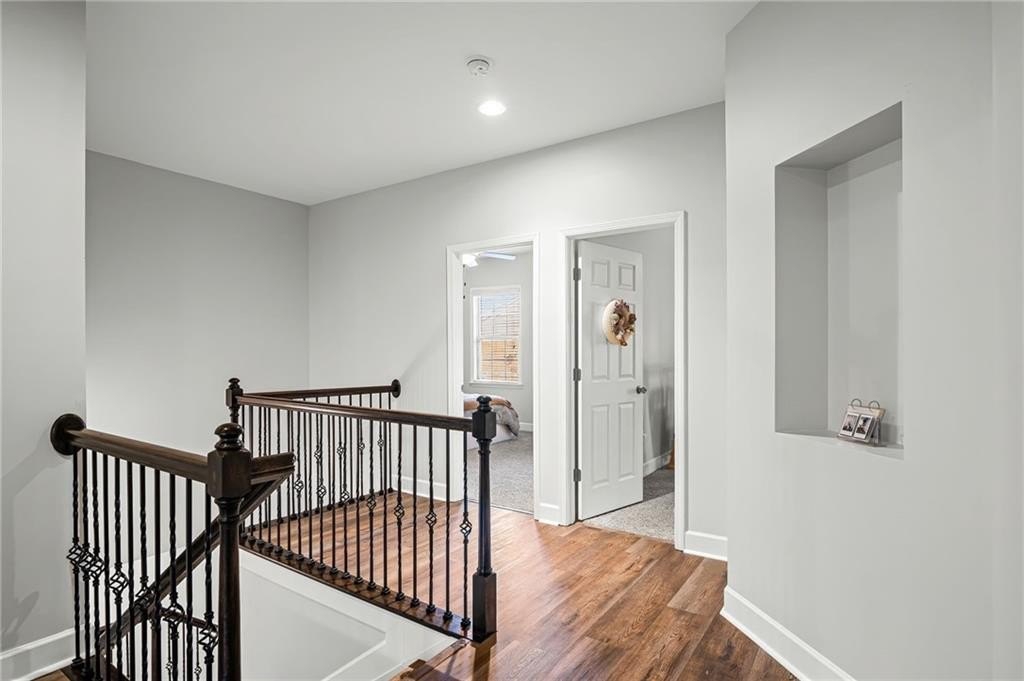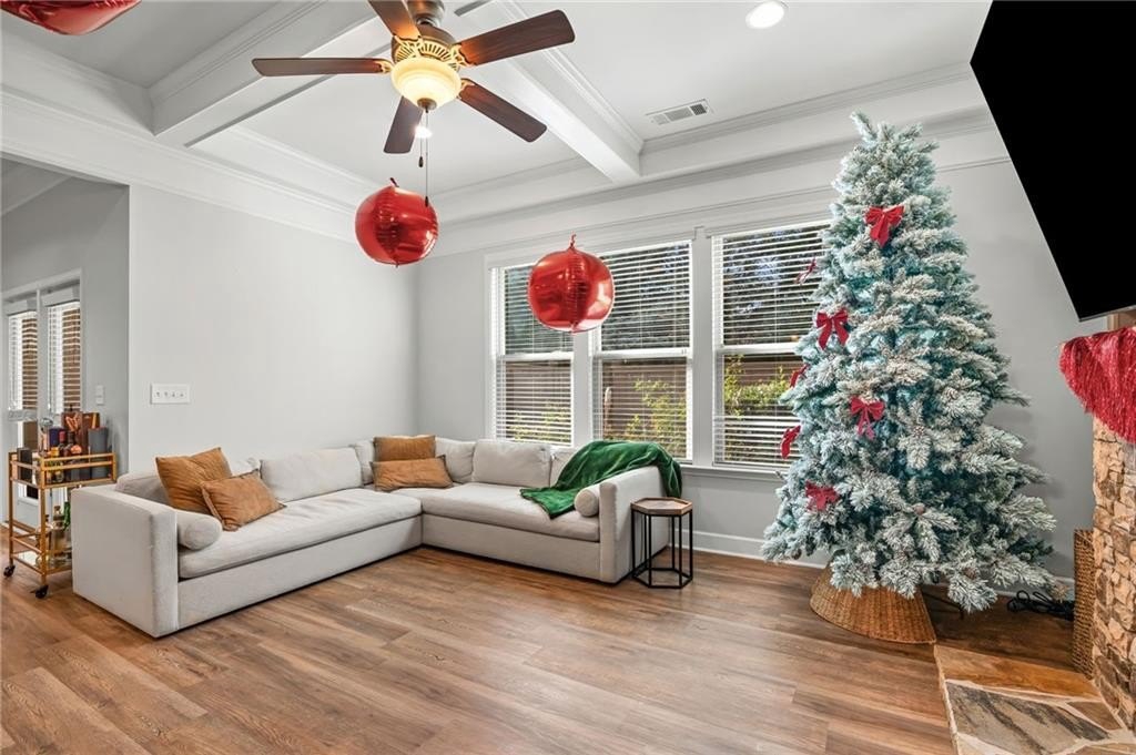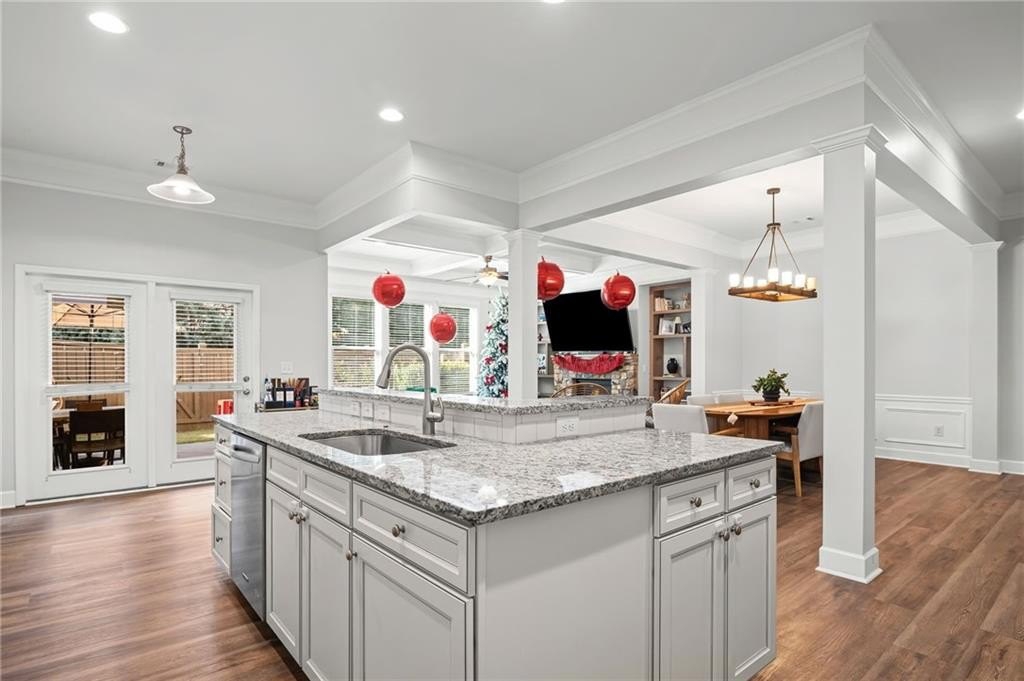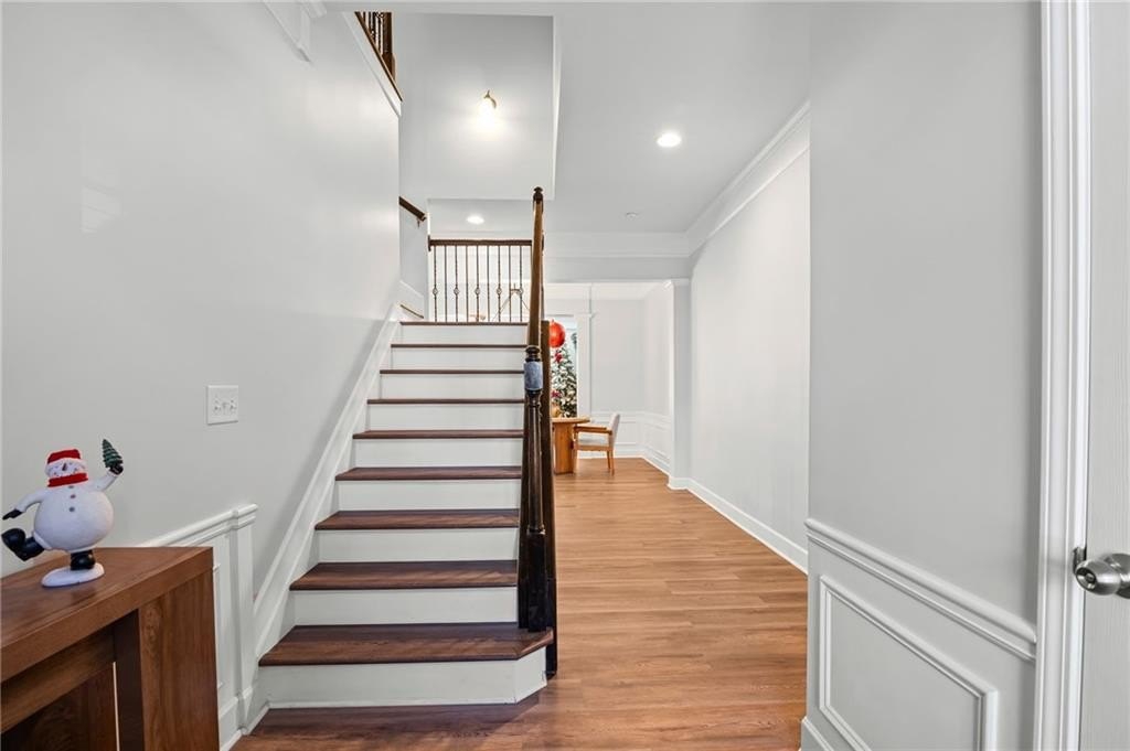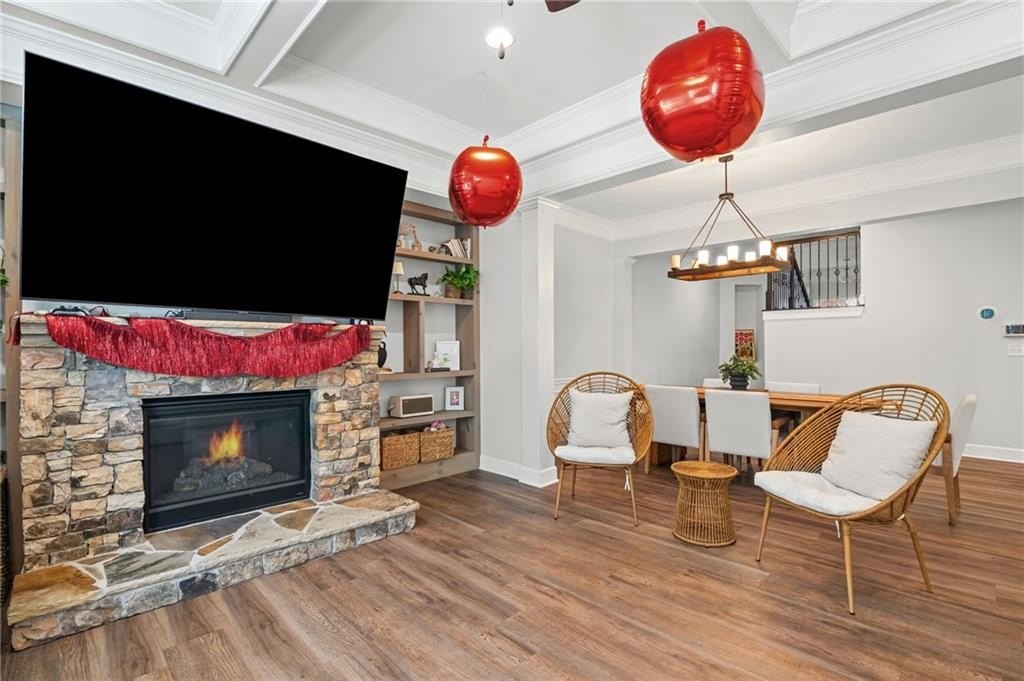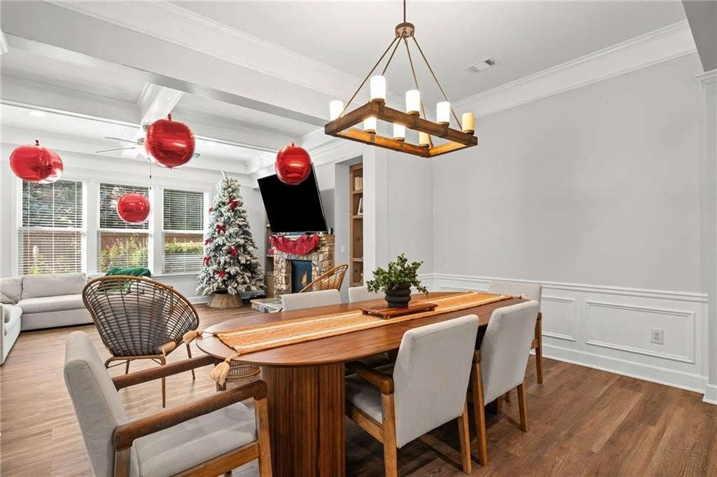A FANTASTIC WAY TO START THE NEW YEAR IN A STUNNING, MOVE-IN-READY TOWNHOME IN A HOT SMYRNA LOCATION! This beautiful home offers so much, and it is the perfect floor plan! Main level offers luxury vinyl flooring, high-end Kitchen-Aid stainless steel appliances, 1/2 bathroom, an open floor plan, 3-inch blinds, lots of crown moulding, a dining room, an eat-in, and a large living area! When you walk in, you will immediately be greeted with a welcoming 2-story foyer and a hall that leads into your open living space! The large dining room is separated and has an updated chandelier, the open kitchen offers granite, tile backsplash, a large stainless sink with disposal, tons of cabinets space, walk in pantry, gas 5 burner stove top, breakfast bar, island and eat in kitchen that leads to your back covered patio perfect for entertaining or a quiet place for your morning coffee! The backyard is fenced in and private. The living area offers lots of natural light and a gorgeous stacked stone fireplace complete with coffered ceilings! Walk upstairs and you will find your oversized master bedroom complete with a separate sitting area and a private balcony! The master suite offers 2 separate vanities, his and hers walk in closets, garden tub and separate shower with tile surround! The other 2 bedrooms are on the opposite side and each offer their own separate full bathroom! The secondary bedrooms are very large and offer walk in closets in each room. This home has lots of storage space and a laundry room with plenty of shelving for your storage needs! Sought after Vinings Crest community with gated entrance! Superior location off Paces Ferry Road with quick access to I-285, I-75, and Atlanta Airport. Just minutes from The Battery, Vinings Jubilee, and major corporate hubs like Home Depot. Lots of dining and shopping nearby! The HOA takes care of the essentials, including water, sewer, trash, exterior maintenance, landscaping, and termite control, ensuring low-maintenance living so you can focus on what matters most!