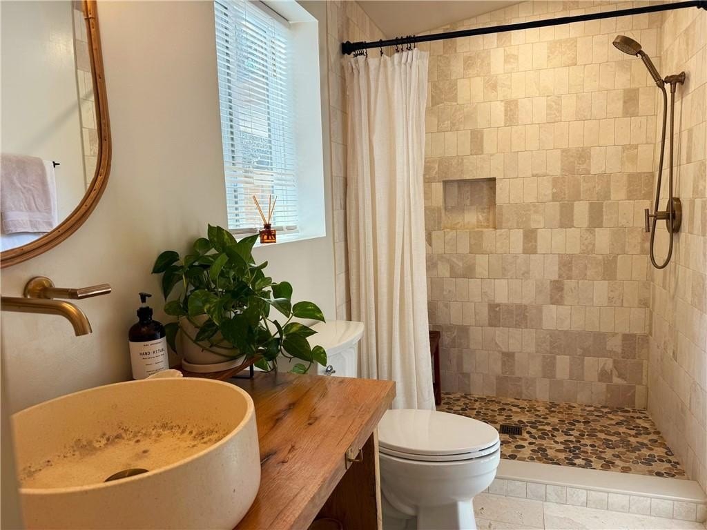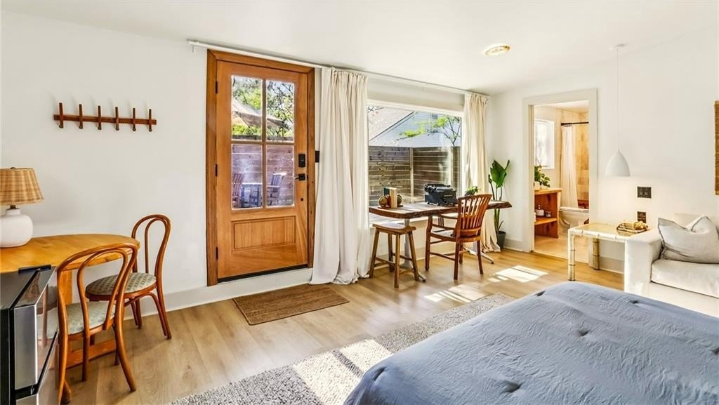 Tucked toward the back of the property, the private primary suite feels like its own hidden sanctuary. With a separate outdoor entrance and a secluded patio, it’s an ideal escape — or an opportunity for rental income. The spacious yard surrounding the home brings endless possibilities: gardening, outdoor dining, bird watching or simply relaxing beneath the trees as the seasons change.