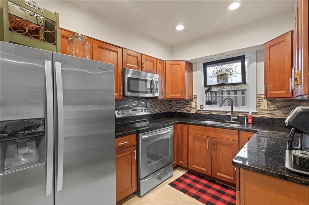 Upstairs includes two bedrooms with updated en-suite baths; the primary suite has a double vanity, marble accents, and walk-in shower. Ample storage throughout.