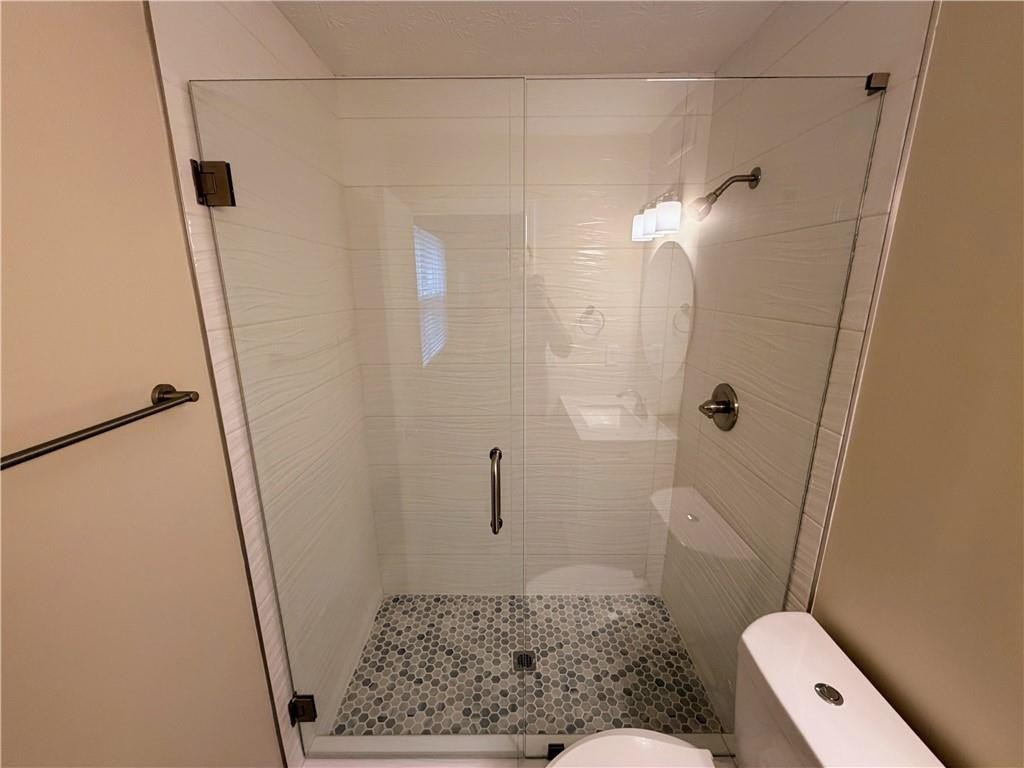 All bathrooms have been completely renovated with modern tile, fixtures, and water-saving toilets. The primary suite includes a walk-in closet and an elegant walk-in shower, providing a true retreat.
