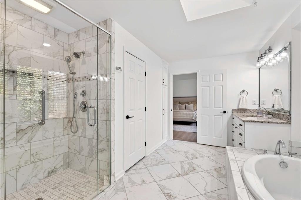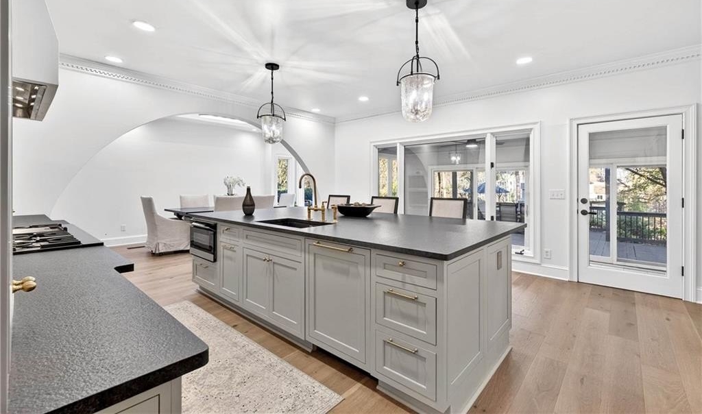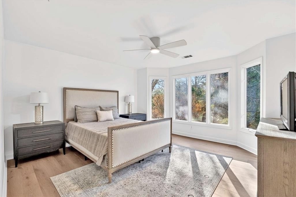 WOW! This fabulous Willow Springs home is the one you’ve been waiting for! 5 beds, 4 baths, cul-de-sac lot, fully renovated, move-in-ready with a swimming pool! Perched on the 8th fairway and green of the Country Club of Roswell golf course, this home boasts fantastic on-trend finishes, gorgeous wide plank wood floors throughout, spacious bedrooms, finished terrace level, and more! The main living level includes a formal living room— perfect for a home office, a formal dining room, convenient butlers pantry, guest bedroom, full guest bathroom, fireside family room with wet bar, large all-season room overlooking the deck and tree-lined backyard, and a spacious, fully updated eat-in kitchen complete with upgraded premium appliances, double oven, striking leather-finish countertops and gorgeous marble backsplash, large island, and adjacent breakfast area! Upstairs, you’ll find continued wood flooring, two sizable guest bedrooms, shared guest bathroom, enormous laundry room, and the beautiful primary bedroom with custom walk-in closet and large spa-like ensuite bath with separate vanities, walk-in shower, and separate soaking tub. The finished walk-out daylight terrace level includes an open multi-purpose space, guest bedroom, full guest bathroom, and loads of unfinished storage space! This home offers plenty of opportunity for outdoor entertaining and enjoyment with a heated PebbleTec swimming pool and hot tub, large deck and arbor perched above the backyard and overlooking the golf course, and a lower deck off of the terrace level with additional yard space to the side of the home. The Country Club of Roswell (membership not included) offers tons of fabulous amenities such as a pool, golf course, tennis courts, workout facilities, bar, wine club/dinners, full dining service, and much more! Very active HOA with loads of family activities, concerts/movies at the park and more throughout the year! Schedule your showing today!