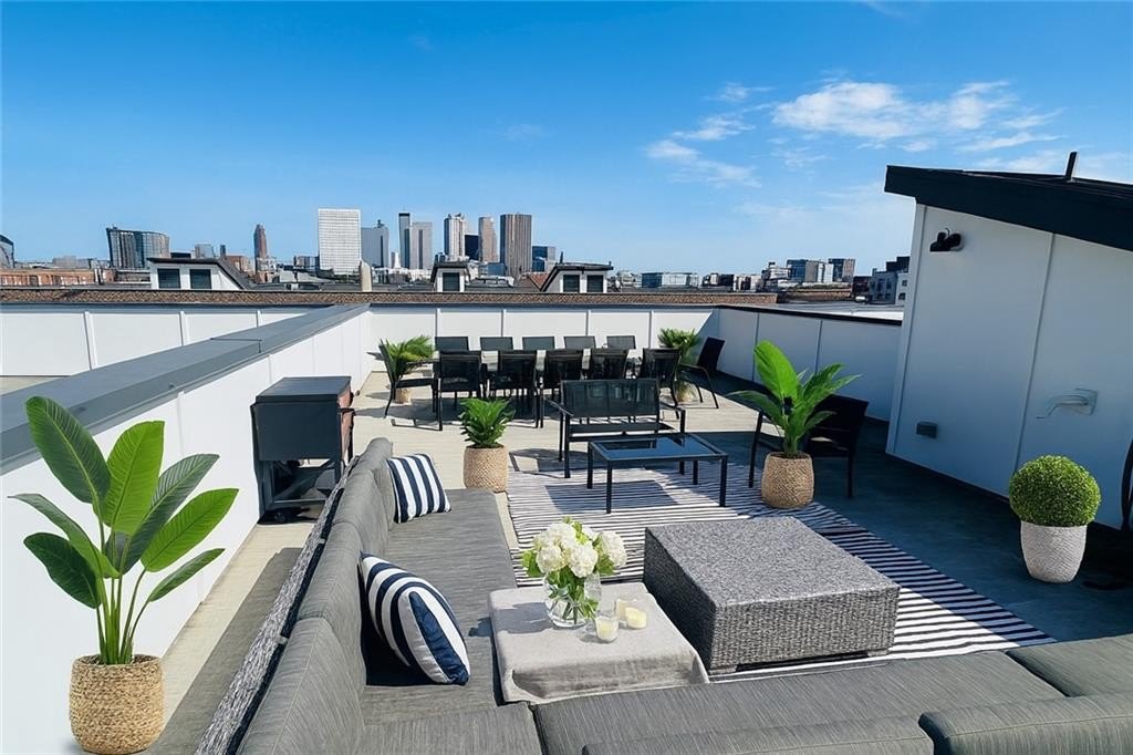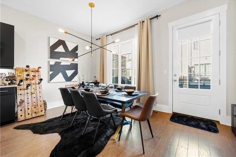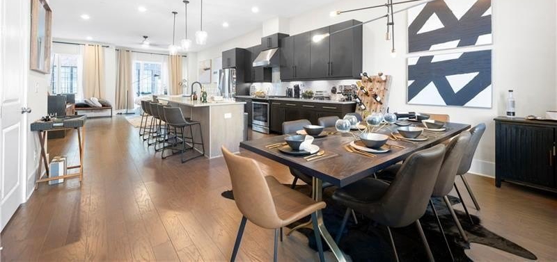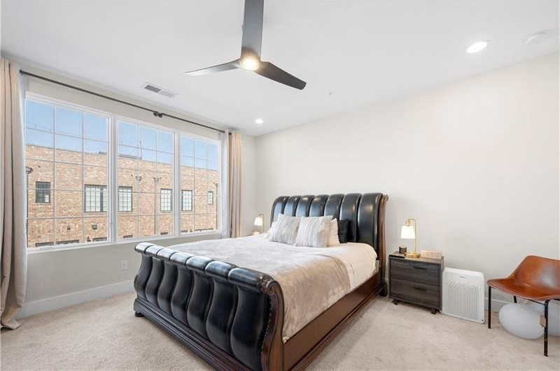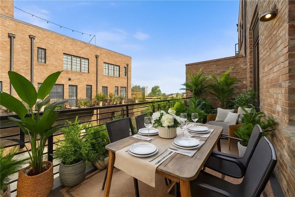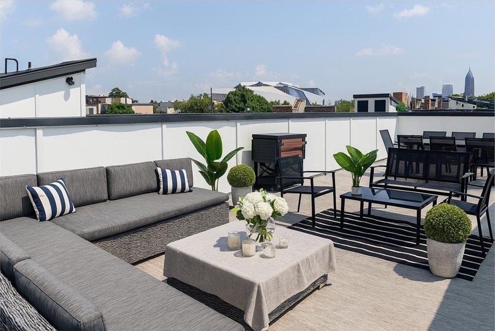 Rare four sided brick townhome tucked away in the heart of the city within a boutique 3.32 acre community featuring only fifty brownstone style homes, each thoughtfully designed with an all brick finish that complements the neighborhood’s timeless character. This beautifully crafted three story residence showcases an expansive rooftop deck with unobstructed Downtown skyline views, perfect for relaxing or hosting. The home offers quiet, private comforts including an oversized two car rear entry garage with its own driveway, abundant guest parking, tall windows and doors throughout, and en suite bedrooms on every level, yet sits just minutes from the vibrant energy of Downtown Atlanta, creating a rare combination of privacy and proximity. The open concept main level flows seamlessly from the spacious living and dining areas into a gourmet kitchen appointed with quartz countertops, gas range and hood, and a walkout terrace that expands the living space and invites fresh air and entertainment. Light pours through the home from every level, leading to a full rooftop terrace that captures sweeping skyline views. The primary suite features a generous walk in closet and an en suite bath with double vanity, large walk in shower, and water closet. Two additional bedrooms feature full en suite baths, and the oversized garage provides additional storage space. Enjoy the best of intown living within walking distance to Castleberry Hill restaurants, Mercedes Benz Stadium, State Farm Arena, the Georgia Aquarium, Centennial Olympic Park, art galleries, shopping, and the city’s most notable attractions. The home is positioned at the forefront of the multibillion dollar Centennial Yards redevelopment, one of the Southeast’s most transformative projects, which is introducing new luxury hotels, residential towers, entertainment venues, restaurants, retail, and a pedestrian friendly district surrounding the stadiums. With several major components already opened and more debuting ahead of the 2026 FIFA World Cup, the surrounding area continues to gain value and momentum. This property also offers the option to be purchased fully furnished, presenting an exceptional opportunity for refined and effortless city living.